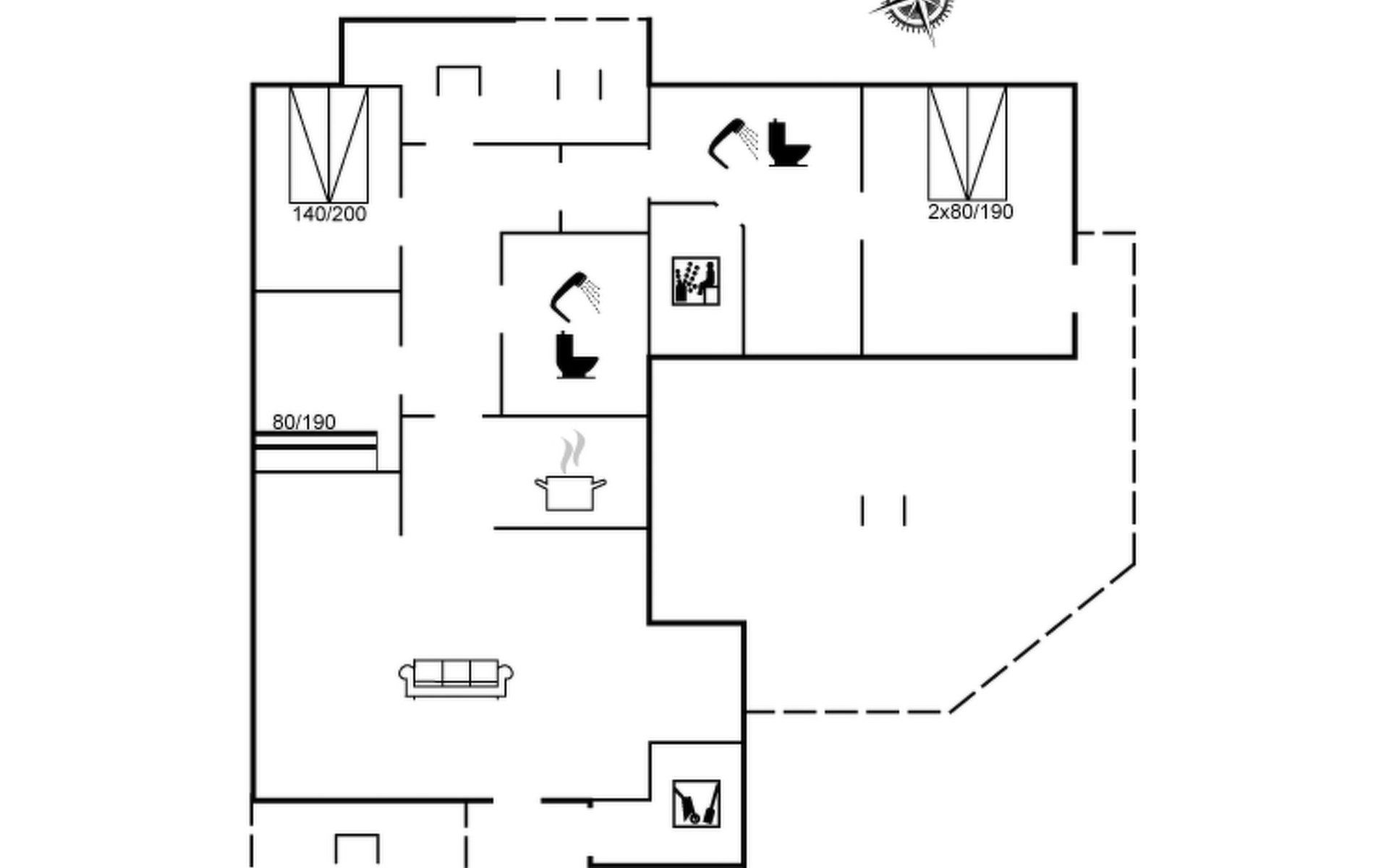 Eengezinswoning, bouwjaar 1984. 150 m van zee. Voor alleengebruik: wild terrein 1.200 m2. Terras (50 m2). In het huis: wasmachine, droger. Parkeerplaats bij het huis. Levensmiddelenwinkel 8 km.