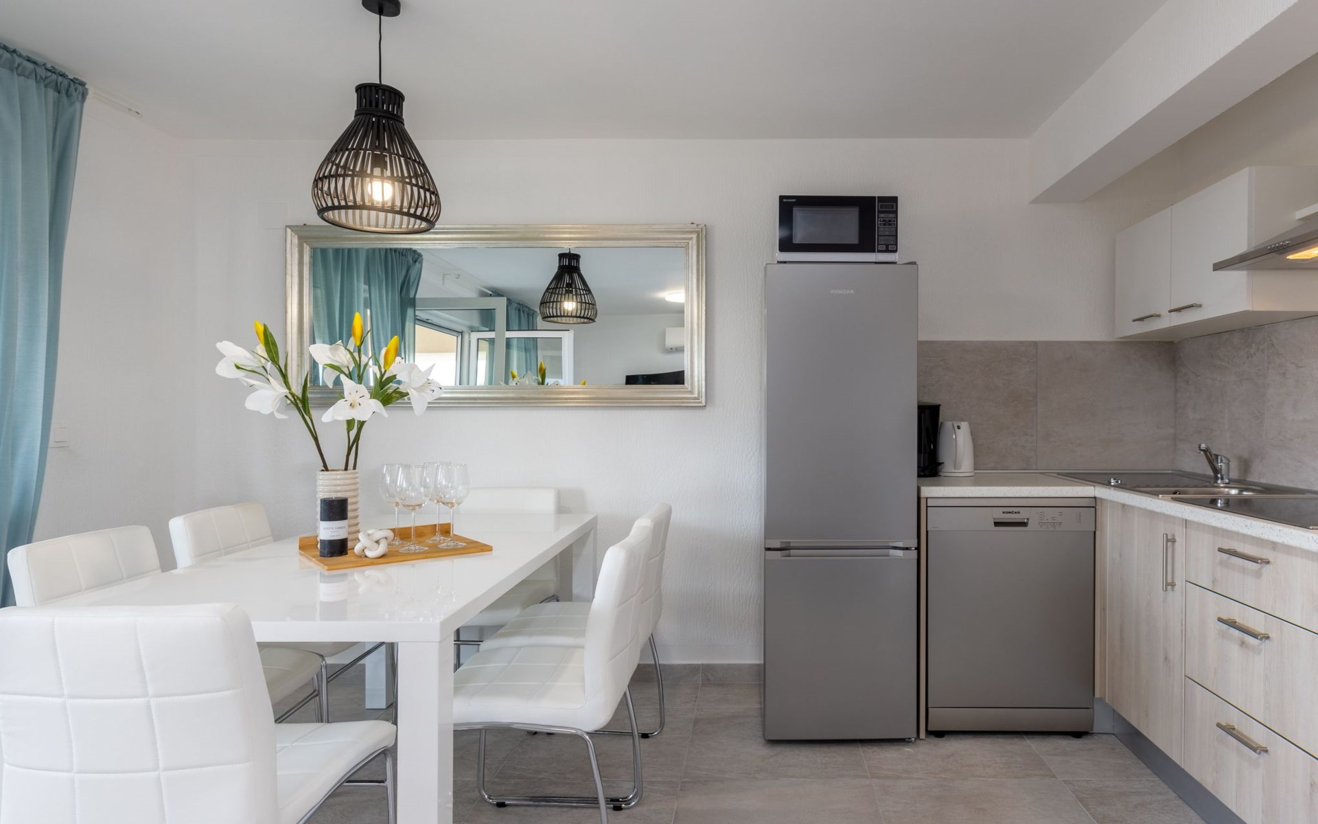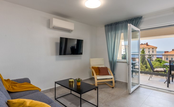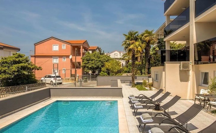 This modern accommodation, part of Royalux villas & apartments, is perfect for lovers of the sea, the sun, the summer evenings, enjoying the sun loungers by the pool, sipping wine in the evenings, and being woken up by the chirping of birds. Pamper yourself in the comfort of our villa, lie in the sun, sip cocktails, swim in the pool, go to the beach, go to the city center, choose a boat trip, and just indulge in the summer pleasures with us...The apartment has 3 bedrooms, one with 2 single beds and the other two with double beds.Two bathrooms with showers, sinks and washing machines. The living room is part of the kitchen, where you will find a comfortable three-seater and a chair to rest, a smart flat screen TV, in the kitchen part a dining table with very comfortable chairs, a small but well-equipped kitchen . From the living room there is an exit to a nice terrace with a table and chairs, which is quite spacious, so you can enjoy your morning breakfast or the evening barbecue on the terrace on the electric grill, which you can also find in the apartment. The view of the sea and the beautiful swimming pool and sunbathing area will leave you speechless. There are barbecue conor with dining area for all villas guests.The apartment is located in a beautiful new villa that offers its guests a beautiful sunbathing area and a swimming pool with sun loungers.Next to the villa, a promenade leads to the sandy beach. It takes 5 minutes to walk and you are on the most beautiful sandy beach in Crikvnica.There you will find countless restaurants, cafes, bakeries, you can practice various water sports.And for evening outings, there are cocktail bars.The villa is located near the city center, with a short walk in a few minutes you are in the center of the city...