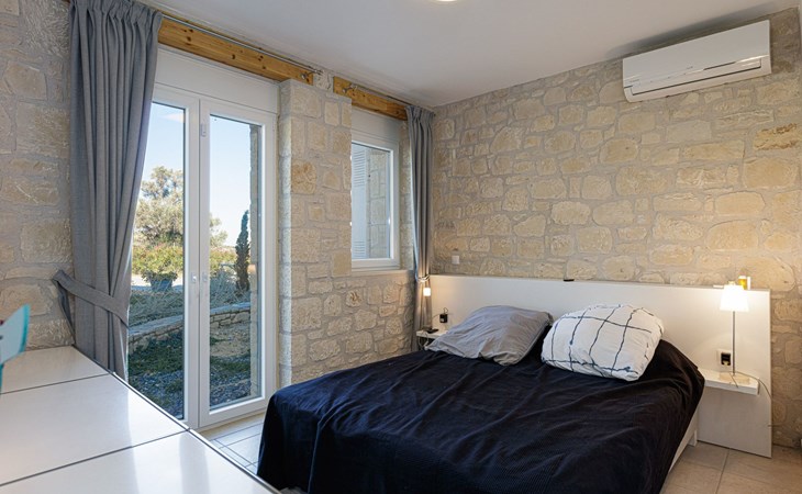 De twee verdiepingen tellende villa heeft een woonoppervlakte van 100 vierkante meter, 3 slaapkamers, twee badkamers en 2 terrassen. Op de onderste verdieping is de volledig uitgeruste keuken, de woonkamer en een slaapkamer, evenals de grotere badkamer met een grote douche. Je vindt er ook de wasmachine, een haardroger en een strijkijzer.