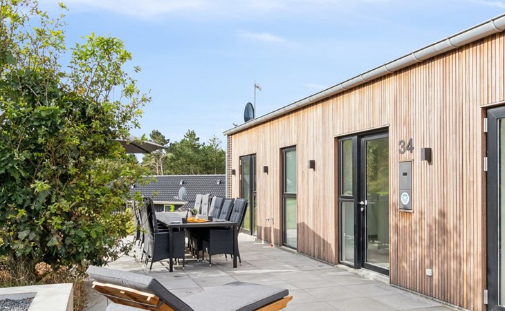 Eengezinswoning, bouwjaar 2024. 1.3 km van zee. Voor alleengebruik: wild terrein 1.271 m2, overdekt zwembad (3 x 5 m, 1.6.5 m2, 140 - 140 cm diepte). Kinderspeelplaats (schommel). In het huis: sauna, wasmachine, droger. Parkeerplaats bij het huis. Oplaadstation. Levensmiddelenwinkel 1 km. De eigenaar accepteert geen jeugdgroepen.
