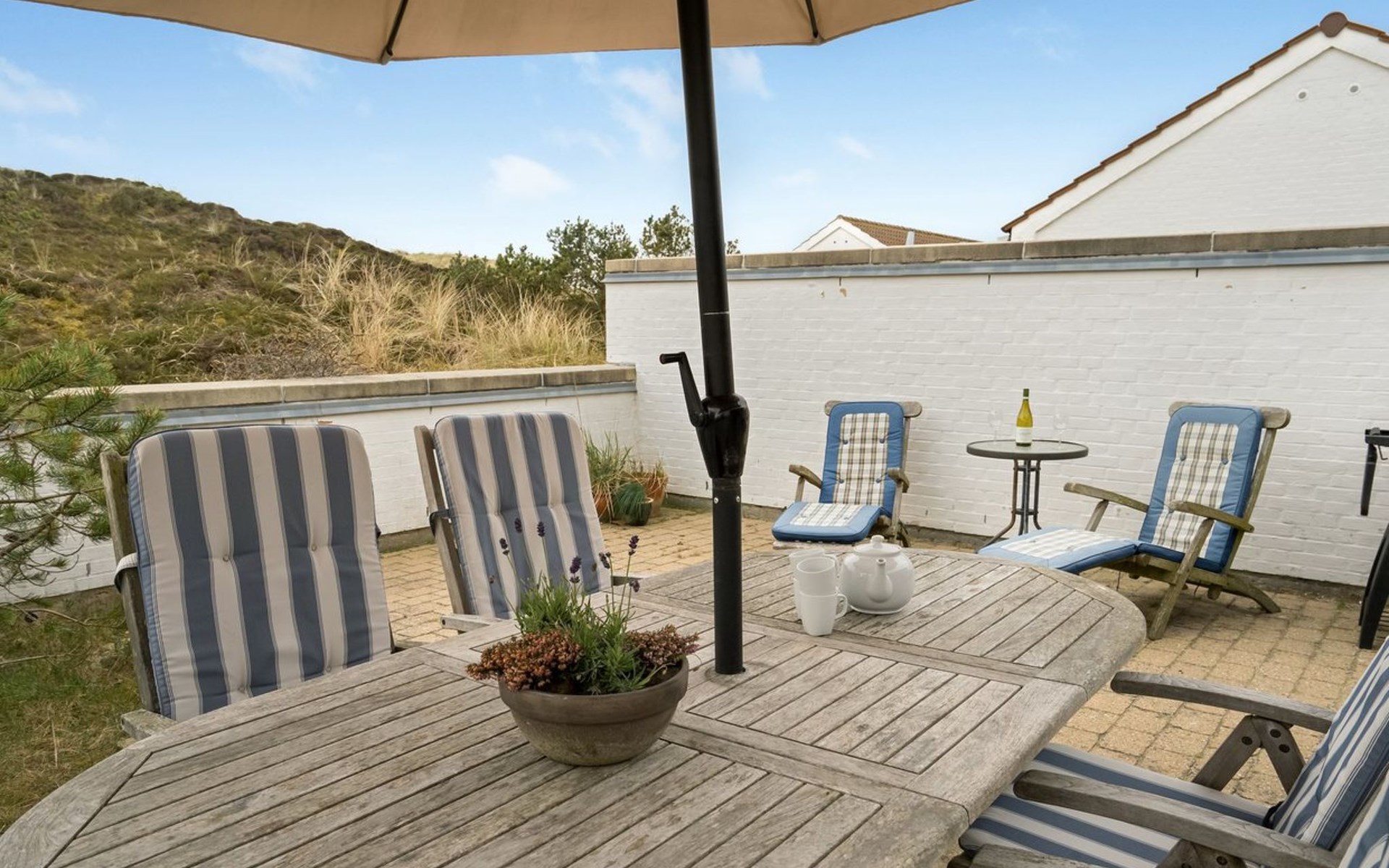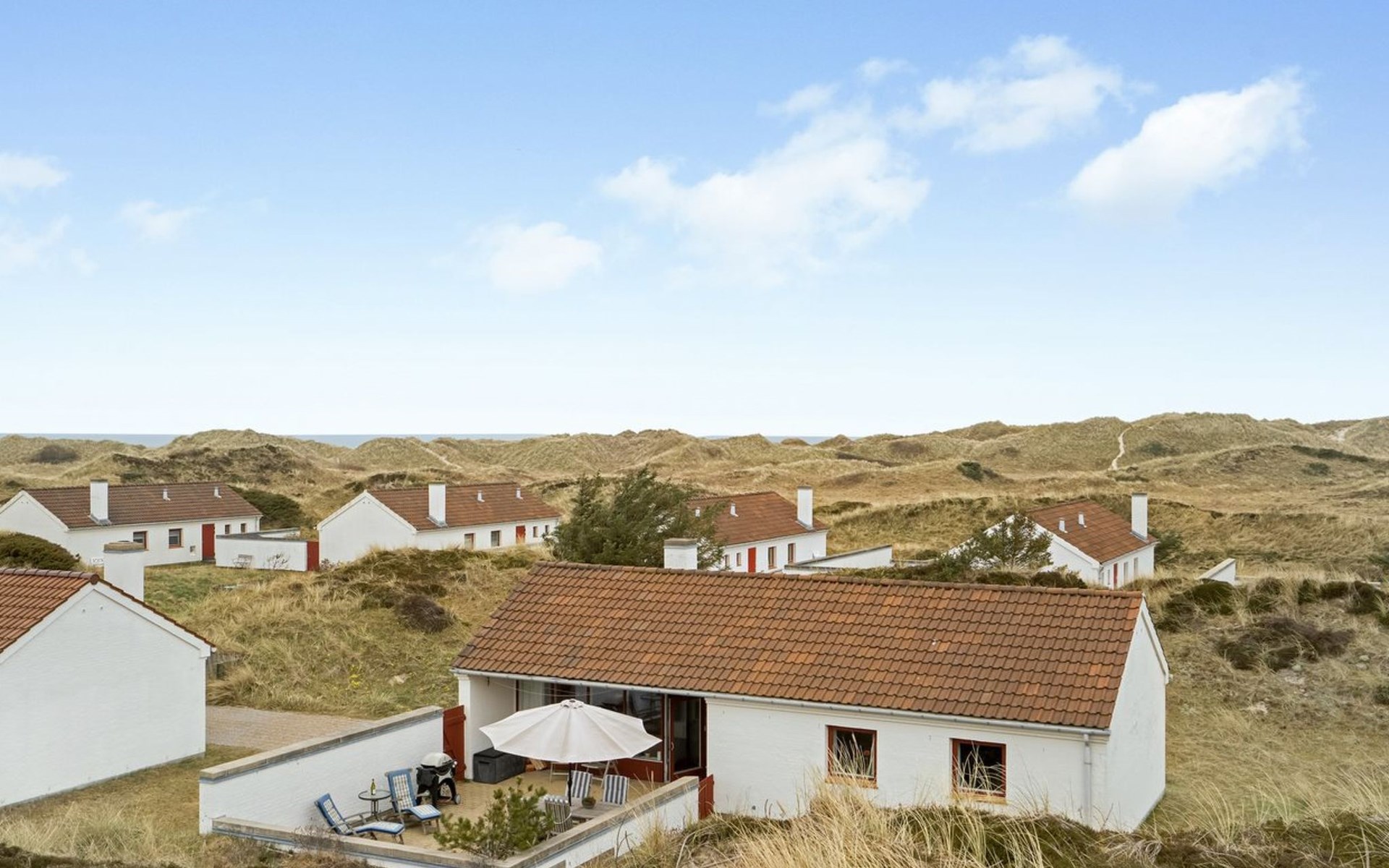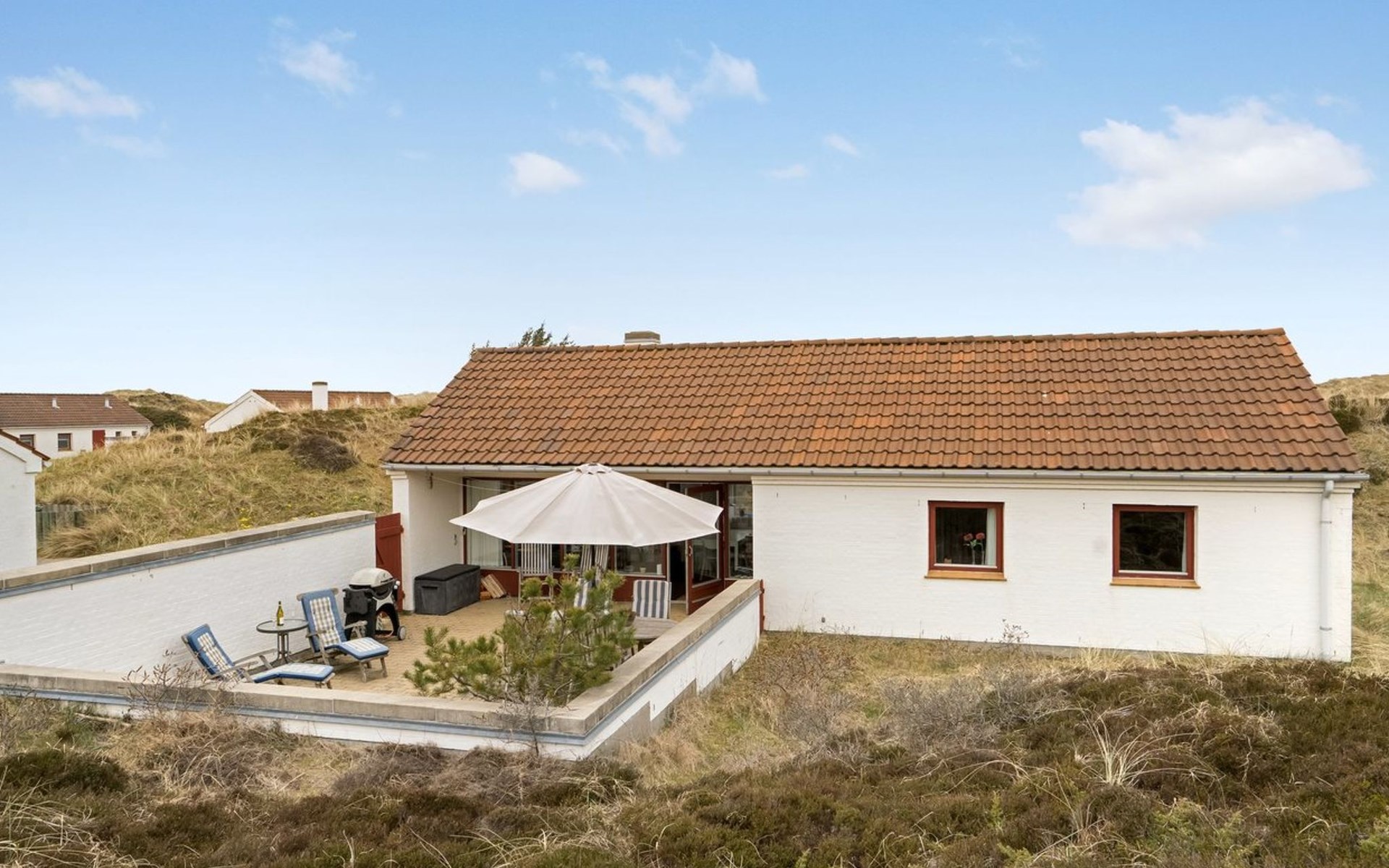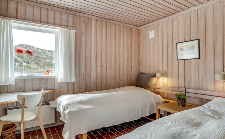 Vakantiedorp, bouwjaar 1979. 400 m van zee. Voor medegebruik: tuin. Voor alleengebruik: wild terrein 130 m2, tuin (omheind). Terras (45 m2). In het huis: wasmachine. Parkeerplaats bij het huis. Levensmiddelenwinkel 7 km. De eigenaar accepteert geen jeugdgroepen.