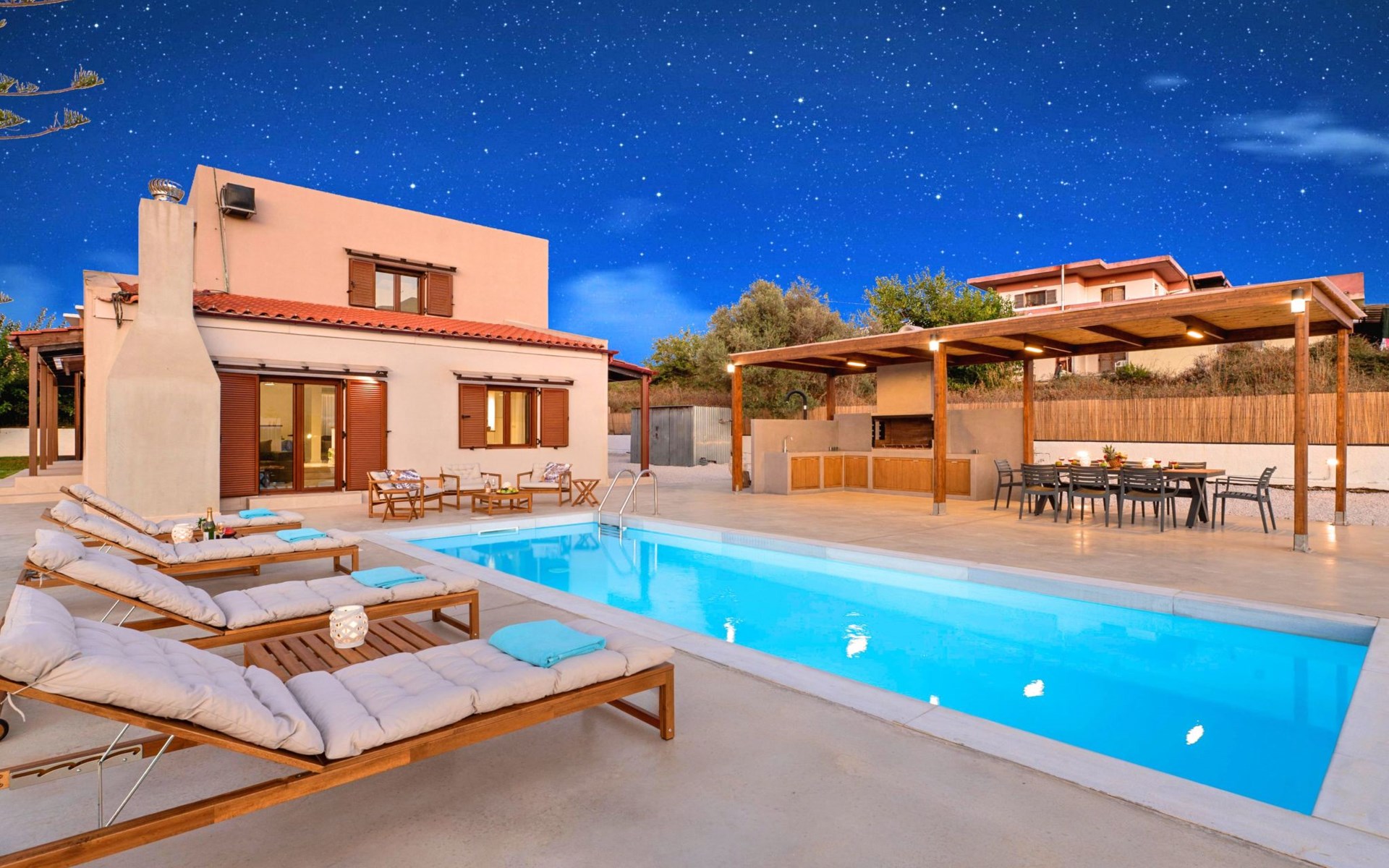 Welcome to this serene holiday house nestled in the picturesque Paralia Kourna, Crete, designed for comfort and relaxation for up to 8 guests. This detached house stands as a perfect retreat for families or a group of friends seeking a peaceful getaway, surrounded by the natural beauty of Crete’s mountains and mere steps from the alluring waters.Inside, the house is fully equipped to cater to all your needs, ensuring a comfortable stay. It features three cozy bedrooms, accommodating 8 guests, and a bathroom with a shower, offering convenience and comfort. The presence of a smart TV ensures entertainment is always at hand, while the air conditioning throughout the house guarantees a cool and pleasant environment, regardless of the outdoor temperatures. Practical amenities such as a washing machine and a clothes dryer, both for sole use, make longer stays worry-free. The kitchen is a host’s dream, fitted with a dishwasher, a capsule/pod coffee machine, and an electric kettle, simplifying meal preparation and enabling you to enjoy leisurely mornings with ease.The exterior of the house is equally inviting, with a terrace that promises relaxation and a garden solely for your use, creating an ideal setting for quiet reflection or joyous gatherings. This outdoor space offers guests a unique opportunity to immerse in tranquility and nature’s beauty.The location of this holiday house is nothing short of spectacular with the beach, sea, and water activities only 600 meters away, promising days filled with sun, sand, and sea. Furthermore, the nearest town center and grocery store are conveniently located within a 500-meter radius, ensuring easy access to local amenities and culture. Whether you're interested in exploring the local culinary scene, shopping or simply soaking in the ambiance of a Greek town, everything you need is just a stone's throw away.This holiday house in Paralia Kourna is a haven of peace and natural beauty, offering a blend of comfort, convenience, and proximity to the sea and local attractions. It’s an ideal spot for those wishing to escape the hustle and bustle of daily life and enjoy a tranquil vacation in one of Crete’s most charming locations. 00003536916