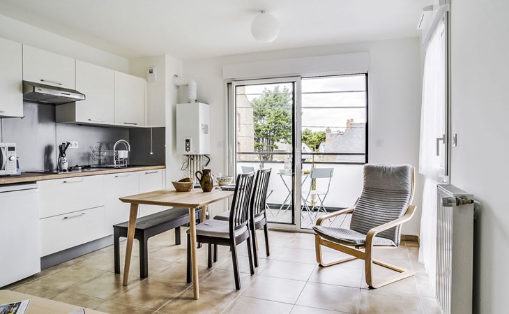 Mooi flatgebouw "Roc Eden", van 3 verdiepingen, bouwjaar 2018. In de wijk Rotheneuf, perfecte locatie: in het centrum en toch rustig gelegen, 300 m van zee. In het complex: lift, bergruimte voor fietsen. Winkel 75 m, levensmiddelenwinkel, restaurant 50 m, bar, bakkerij 100 m, café, bushalte "Rotheneuf" 200 m, station "TGV st Malo" 5.5 km, veerboot 7.5 km, zandstrand "du Val" 300 m, overdekt zwembad 7.5 km, thermaalbad "Thermes marins de St Malo" 4 km. Jachthaven 6.8 km, golfterrein (18 holes) 22 km, zeilschool 400 m, manege 4 km. Attracties in de buurt: Rochers sculptés 450 m, Cancale et ses huitres 9 km, Saint Malo intramuros 6 km, Grand aquarium de Saint Malo 5.8 km, Le Mont Saint Michel 58 km. De sleuteloverdracht vindt plaats bij het agentschap Interhome in Saint Malo, 5 km.