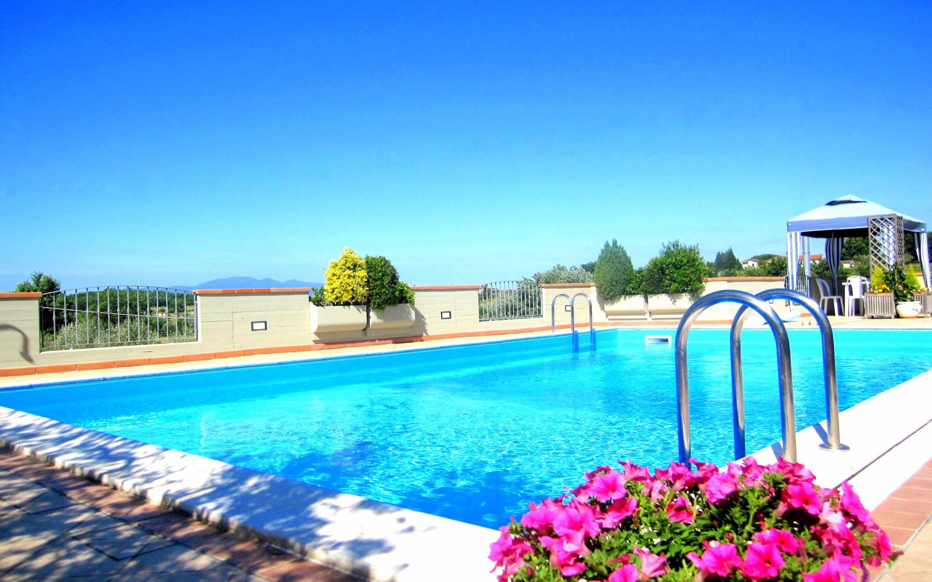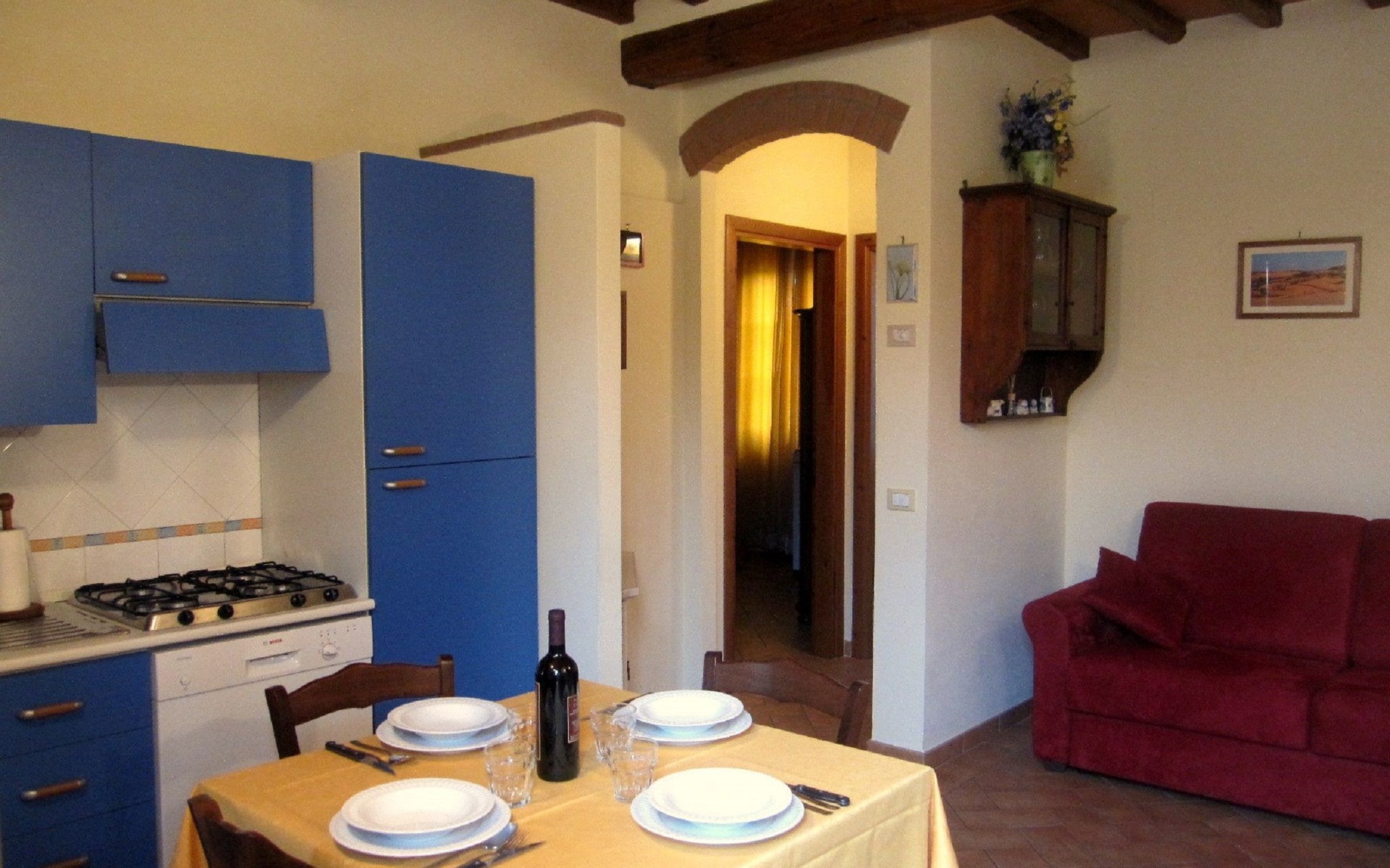 Maximaal 2 huisdieren/honden toegestaan. AGRITURISMO POGGIO ALLA CAVALLA (SQM 280/max. 23 p.m.) - Agritourism comprising 5 independent lodgings with swimming pool and private garden.The holiday farm "Poggio alla Cavalla" is located in the heart of Tuscany, a tourist facility situated in the countryside in the Chianti hills near Florence, between Montecatini Terme and Vinci, the birthplace of Leonardo. The holiday farm is situated in an area lying on the slopes of the Chianti Montalbano hills, a natural terrace overlooking the Valdinievole, with Pescia, the city of flowers, Collodi famous for the Pinocchio park and the Fucecchio Marshes, a nature reserve of great interest.The countryside surrounding the agritourism, very green and undulating thanks to the gentle rolling hills, is mainly cultivated with vines and olive trees, and is characterised by hills that are not very high, with the exception of the Chianti Montalbano hills. The conformation of the land and the vitality of the countryside have led to the emergence, over time, of many small centres rich in: Artisan Shops, Small trades, Typical restaurants, Markets.Thanks to the privileged geographical position, it is possible to make tourist and cultural day trips to the art cities of Tuscany: Florence, Pistoia, Pisa, Siena, S. Gimignano, Volterra , Arezzo, Cortona, Lucca and the sea of VersiliaThe Master House is situated within the property " Agriturismo Poggio alla Cavalla ". The Agriturismo is surrounded by a garden, inside which there is a swimming pool, with a large panoramic terrace and private parking.Nearby ( 1-2 km ) there are: supermarkets and grocery stores, banks, post office, pharmacy, doctors' offices, public assistance, restaurants and pizzerias etc.The farmhouse "Poggio alla Cavalla" is made up of 4 Apartments (40/45 sq m) and the Master House (120 sq m), in total it has 23 beds; all have an independent entrance and private garden.Some lodgings are furnished with typical Tuscan furniture and fittings, others have a modern style inside.The farmhouse is surrounded by a garden, inside which there is a swimming pool, a large panoramic terrace and private parking. The flats Arancio-Azzurro-Giallo-Verde ( about 40/45 sq.m. / 4 beds - 1 double bedroom and 1 double sofa bed ); they are all on the ground floor, have the same requisites and the same price, have independent entrance, independent heating, air conditioning, TV, Internet WiFi everywhere; their interior is composed of:- A comfortable living area with kitchenette (cooker, electric oven, dishwasher, sink, fridge-freezer), dining table and comfortable double sofa bed equipped with linen and blankets..- Double bedroom (possibility of adding a cot) furnished with typical Tuscan or modern furniture and furnishings, supplied with linen and blankets.- Comfortable and functional bathroom equipped with shower cubicle, washbasin, toilet, bidet and hairdryer, supplied with a set of towels for all guests. The Master House (approx. 120 sqm / sleeps 7 - 1 double bedroom plus single bed, 1 double bedroom and 1 double sofa bed)The house is on two floors and has: independent entrance, private garden, independent heating, air conditioning, Internet wifi, 3 TVs; the house is situated inside the property which includes the garden, the swimming pool with a large panoramic terrace, and private parking.The ground floor is an open space composed of:- Large kitchen area with a 5-burner hob, convenient sink, dishwasher, electric oven, coffee machine, 8-drawer freezer column, 320lt refrigerator column, column with electric oven and microwave oven, complete with kitchenware for cooking and all utensils, plate and glass service for 12 people, table and chairs, tablecloth and kitchen linen.- Living area with TV and DVD, internet and comfortable two-seater sofa bed.- Space with washing machine and dryer.On the first floor are:- two large double bedrooms, one with terrace, and both with the possibility of adding a cot; furnished in modern style with 6-door wardrobe, chest of drawers and bedside tables, tv with dvd.- Comfortable and functional bathroom equipped with bathtub and shower, washbasin, toilet, bidet and hairdryer, supplied with a set of towels for all guests. All accommodations also have a clothes rack, ironing board and iron; the farmhouse also has a washing machine and washhouse. Each accommodation also has a private outdoor area equipped for outdoor dining, with table, chairs and gazebo or sunshade, barbecue, and its own parking space in the private courtyard of the farmhouse. The swimming pool for farmhouse guests only (12x6 metres, open from 30.04 to 10.10) is equipped with a gazebo, parasols, sunbeds, deckchairs and shower.EXTERNAL DESCRIPTION : The Poggio alla Cavalla farmhouse is surrounded by a garden, inside which there are the tourist accommodations, the swimming pool with a large panoramic terrace overlooking the surrounding countryside and the private parking for guests.All the accommodations are independent and are located inside the tourist structure, all of them have a private garden with gazebo or sun umbrella and equipped for lunches and dinners in the open air; they are all equipped with table, chairs and barbecue.THE SWIMMING POOL (open from 30 April to 10 October), is reserved only for the guests of the holiday farm; it is built in an open and sunny area; it has a large terrace for sunbathing, equipped with a gazebo, shower, deckchairs, sun loungers, parasols and tables; from its terrace you can enjoy a beautiful view of the surrounding countryside.The car park is private, fenced off and closed by a large automatic gate which is controlled by a remote control given to guests staying at the holiday farm.The owner, Massimo Camelli, and his son, Alessandro, welcome guests to the agriturismo and ensure that they have a pleasant holiday. They also take care of the farm's vineyards and olive groves and the production of wine and oil, according to the method of Organic Farmin