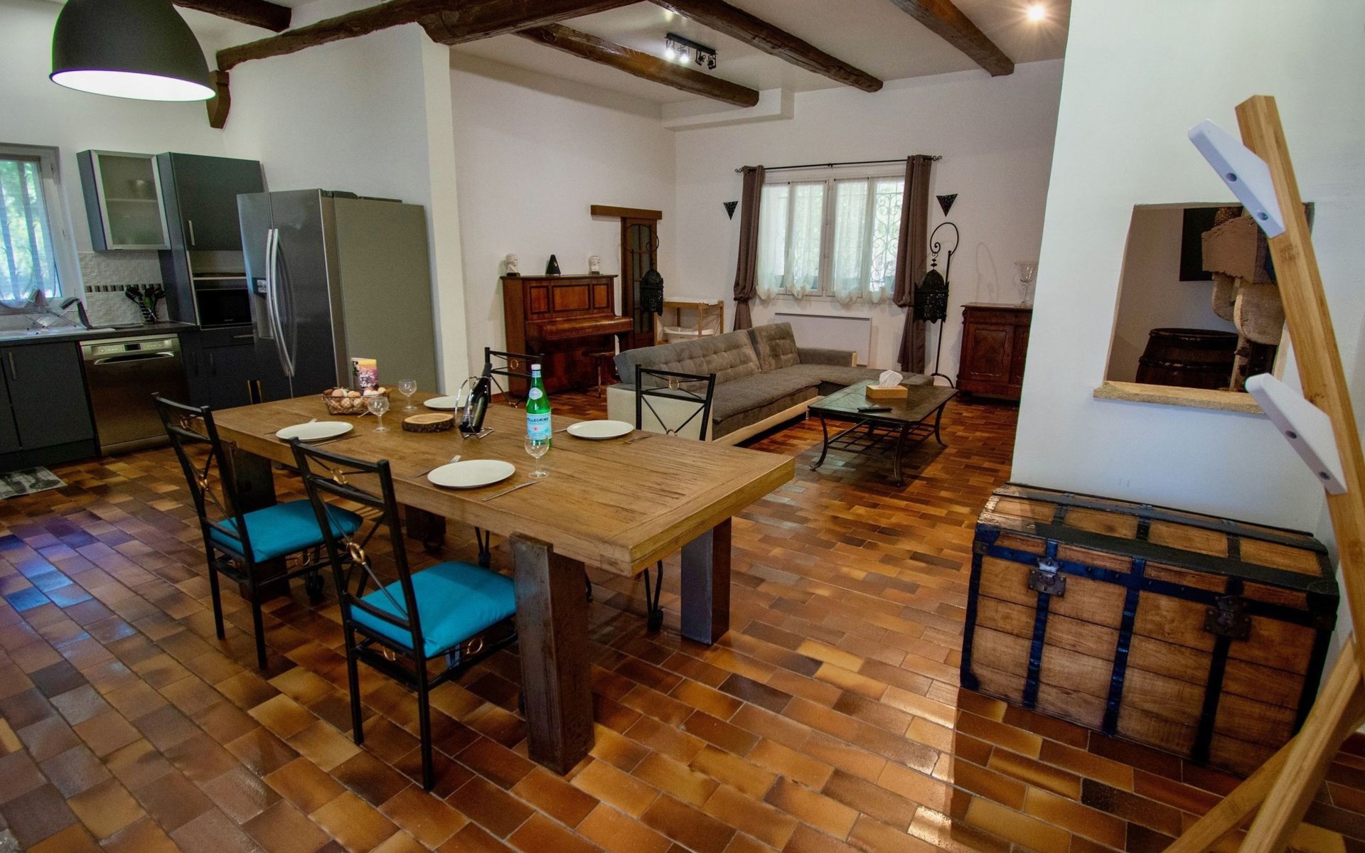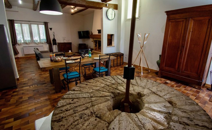 Le Moulin de Tartay is a holiday home dating from 1874.- Classified as a 4-star furnished holiday home since 24 January 2024.Le Moulin de Tartay, built in 1874, is an old flour mill.Its millstone was driven by water from a canal used to irrigate the waters of the Durance.Close to Avignon, the Moulin de Tartay has been converted into gîtes by Sandrine and Ludovicwho bought it in 2016.A 110 m2 house, two 60 m2 gîtes and a 45 m2 gîte are available for guests.available to guests.Renovated with the greatest respect for Provencal traditions, they have added their own personal touch,and added their own personal touch.The place has become a haven of greenery and tranquillity,for those in search of authenticity.Ideal for families (4 to 14 people in several units),But it's also a place where each resident can find his or her own balance.The flats are air-conditioned.Communal areas reserved exclusively for estate guests:heated swimming pool secured by wrought iron gates, brazier, garden furniture,children's play equipment (swing set, trampoline, sandpit), garden basket, table tennis, basketball hoop, football pitch, tennis court, table tennis, table tennis, table tennis, table tennis, table tennis, table tennis, table tennis, table tennis, table tennis, table tennis, table tennis, table tennis, table tennis,basketball hoop, football pitch, boules pitch and beach volleyball court,A carport for two vehicles and free parking on the estate.Bicycles available for touring the region.The house on offer sleeps 4 (with the possibility of an extra bed for a baby) and measures 110 m2.independent and adjoining that of the owner of full foot classified in 4 stars furnished tourismsince 24 January 2024.The accommodation is ideal for families with young children.It has a fully-equipped open-plan kitchen.The dining room is in front of the Moulin with its open kitchen, a large dining table and a library.table for lunch and a librarywith information on local and regional life.The lounge has a sofa and a wood-burning fireplace,a small laundry room with a tumble dryer.There are two bedrooms with new bedding since 2022:a large bedroom with a double bed, a large wardrobe and television,The second bedroom has two separate beds and a large wardrobe.The bathroom has a washbasin and walk-in shower, and a separate toilet.The flat is air-conditioned.Outside, a new private terrace will be operational from March 2024.The house is for 4 people (with the possibility of an extra bed for a baby) and measures 110 m2.independent and adjoining that of the owner of full foot classified in 4 stars furnished tourismsince 24 January 2024.The accommodation is ideal for families with young children.It has a fully-equipped open-plan kitchen.The dining room is in front of the Moulin with its open kitchen, a large dining table and a library.table for lunch and a librarywith information on local and regional life.The lounge has a sofa and a wood-burning fireplace,a small laundry room with a tumble dryer.There are two bedrooms with new bedding since 2022:a large bedroom with a double bed, a large wardrobe and television,The second bedroom has two separate beds and a large wardrobe.The bathroom has a washbasin and walk-in shower, and a separate toilet.The flat is air-conditioned.Outside, a new private terrace will be operational from March 2024.The garden includes garden furniture, an unsupervised heated swimming pool 7 by 3 by 1.50 metres deep (open from April to September) protected by a wrought iron fence and a protective curtain to C.E. standards. (a liability waiver will be requested from each guest for each stay) open from 8 a.m. to 8 p.m. for safety reasons, a swing in the form of a gantry under the responsibility of the parents (open from April to October), a trampoline limited to one person and weighing less than 90kg (open from April to October), a garden gondola limited to 90kg with its cushions.The garden is shared only with tenants of the Moulin de Tartay estate.The 12,000 m2 grounds are enclosed and secure.The property is monitored by outdoor cameras.A car recharging point is available (extra charge).All accommodation is non-smoking.Pets are not allowed.There is a dog on site, as well as hens, roosters and geese.No parties or receptions on the estate.No noise after 10 p.m.We speak English and German ...If you have any questions, please use our "Messenger" service.Welcome to our adventure!The garden is shared only with the tenants of the Domaine du Moulin de Tartay.2 private terraces for this accommodation with barbecue, table and chairs, garden furniture and private fridge.1 covered terrace. A football, beach volleyball and petanque pitch is also available. A table tennis table and basketball hoop for amateur players. A carport. A car charging station is available (for a fee). A SPA with a JACUZZI, (additional service) available from October to the end of March, on reservation and private, payment on the spot, forbidden to children under 10 years old.A warm welcome awaits you,Sandrine and LudovicMoulin de Tartay en Avignon. 840071900818F