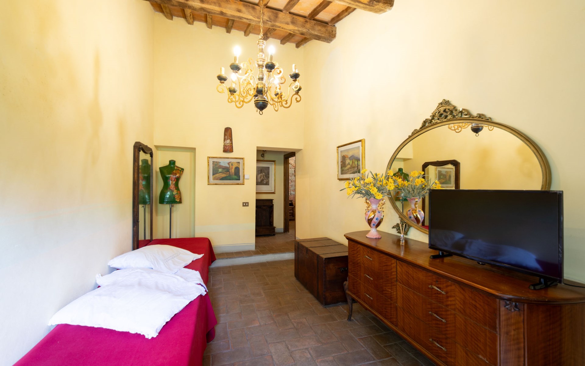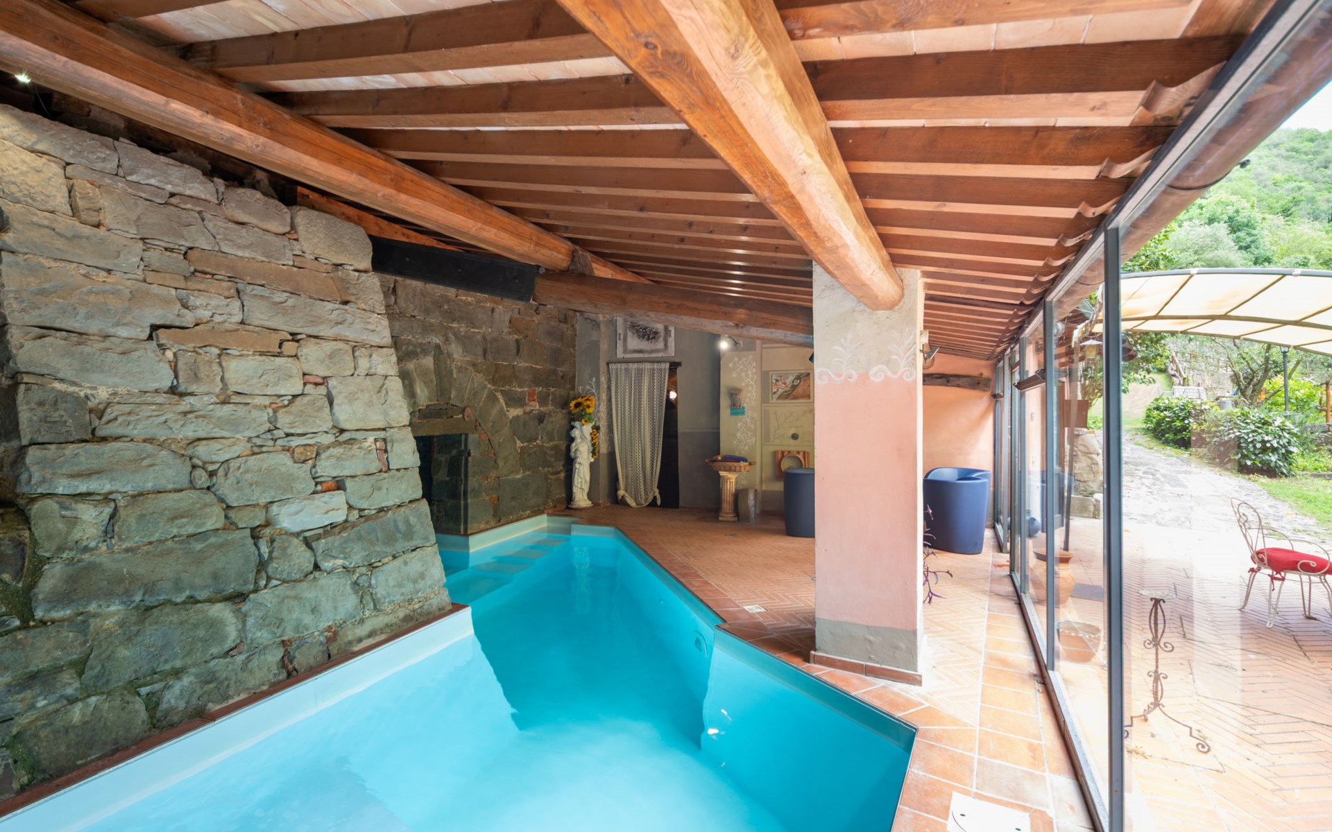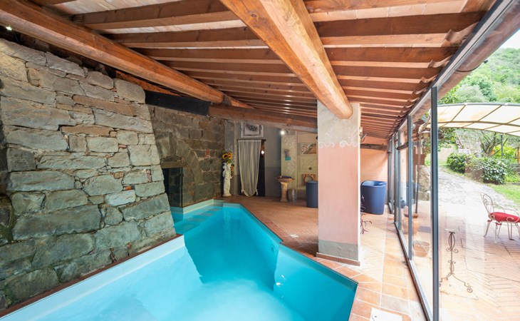 Deze oude molen uit de XVIe eeuw werd volledig gerenoveerd, met uitzicht op een waterval en een beekje. Vanaf het verwarmd en overdekt zwembad van 30 m2 (gehele jaar open) heeft men zicht op het oude molenrad. Men kan er zelfs in koudere periodes zwemmen. Via een wandeling van 1 km door het bos komt u in Loro Ciuffenna. Ideaal voor wandel-/ tracking-/ en mountainbiketochten. Op aanvraag kan men boogschiet- en relaxatielessen volgen. De mate van rust is afhankelijk van het geluid van de waterval. Molen "Il Mulinaccio". 3 appartementen in de woning. 1 km van het centrum van Loro Ciuffenna, 28 km van het centrum van Arezzo, 30 km van het centrum van Siena. Voor medegebruik: terrein (omheind), tuin, overdekt zwembad verwarmd (50 - 135 cm diepte, seizoensgebonden beschikbaarheid: 01.Jan. - 31.Dec.) met trap. Onregelmatig zwembad. Tuinmeubelen, barbecue. In het huis: Internet (WiFi), centrale verwarming, wasmachine (voor medegebruik), Verwarming ter plaatse te betalen, verwarming alleen beschikbaar van 01.Nov. - 15.Apr.. Wissel van linnengoed 1 maal per week. Schoonmaak op verzoek (extra). Kok op verzoek (extra). Parkeerplaats bij het huis. Levensmiddelenwinkel 1.5 km, restaurant 2 km, bushalte 2.5 km, treinstation "Montevarchi" 12 km. Tennis 12 km. Attracties in de buurt: Castelfranco di Sopra 19 km, Reggello 24 km, Arezzo 31 km, Abbazia di Vallombrosa 35 km, Bibbiena, Greve in Chianti 41 km, Monte San Savino 50 km.