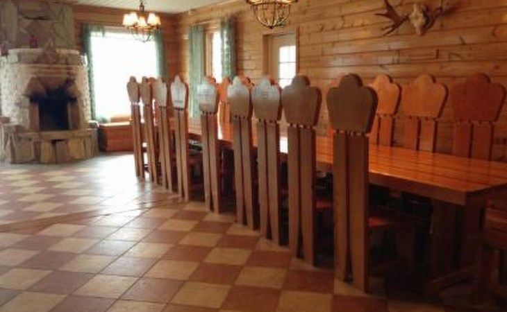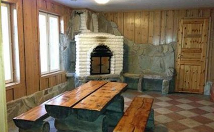 The spacious manor house, built in 2004 to replace the former forest cabin. Separate 20 m² kitchen, hall, 9 bedrooms, each with 1-3 beds and private toilet, living room and terraces.
