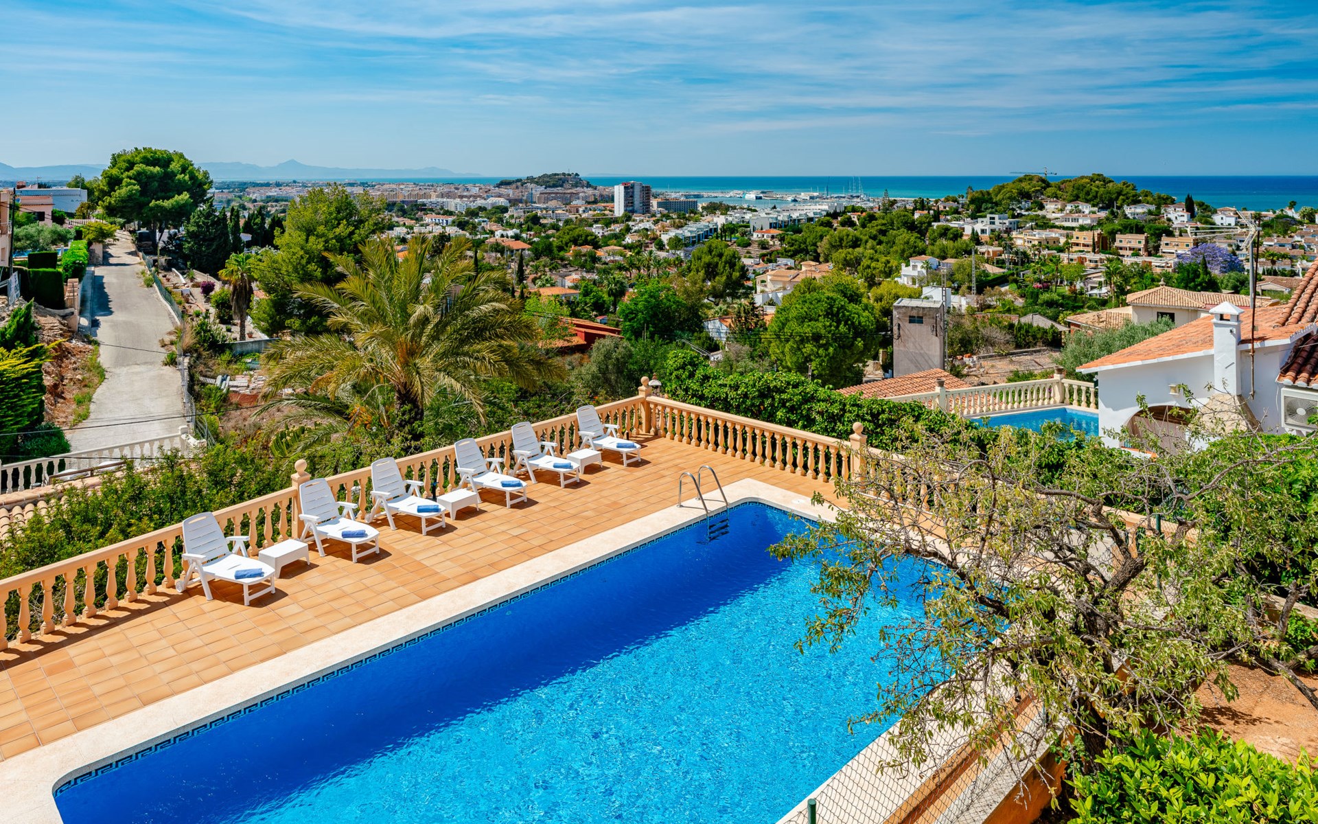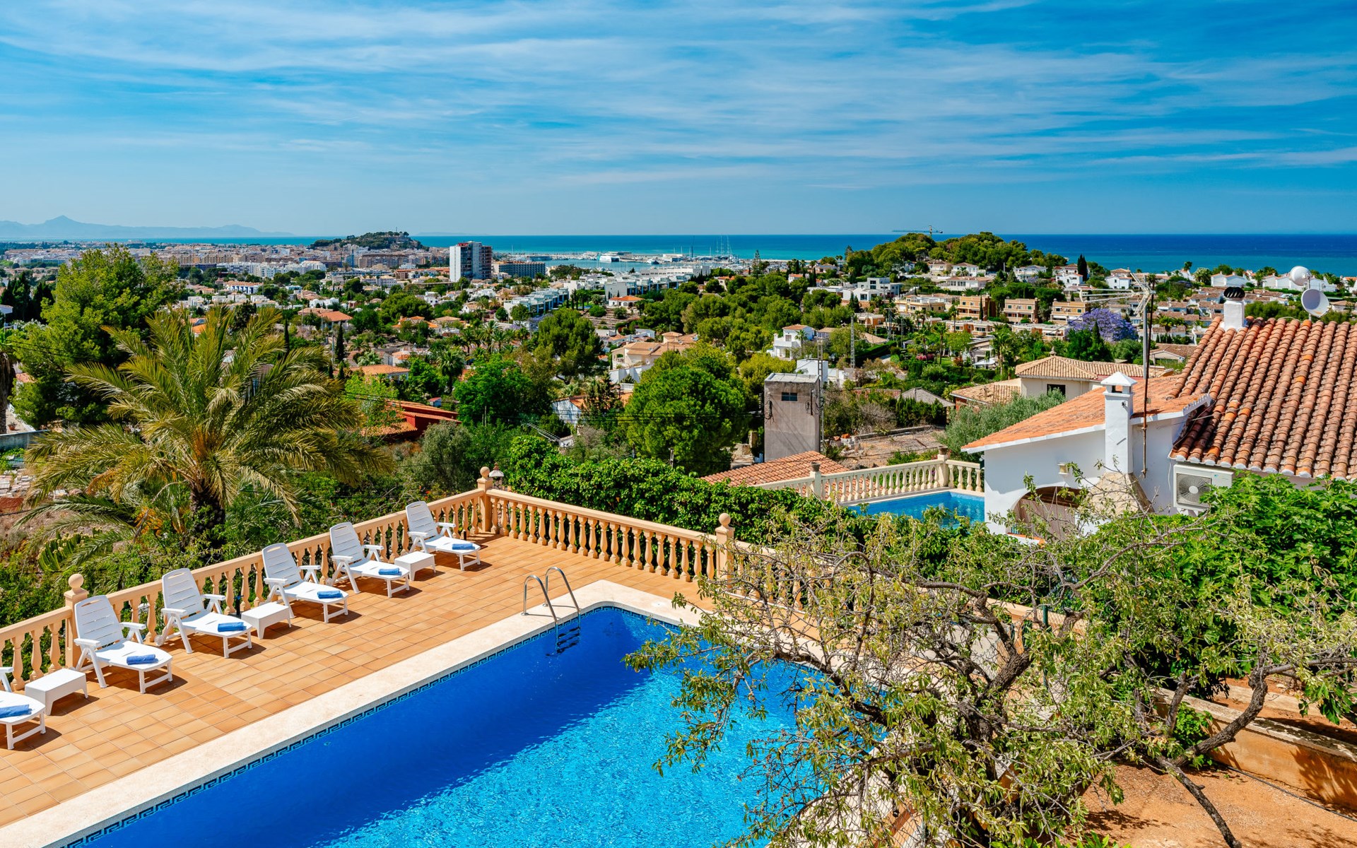 Groot, mooi huis "Villa Tana", gerenoveerd in 2024. In de plaats, 2.5 km van het centrum van Denia, rustige, zonnige ligging, 1.2 km van zee, 1.2 km van het strand. Voor alleengebruik: groot tuin, boomgaard, openluchtzwembad hoekig (10 x 5 m, 40 - 230 cm diepte, seizoensgebonden beschikbaarheid: 01.Jan. - 31.Dec.) met trap. Buitendouche, prieel, tuinmeubelen, barbecue, parkeerplaats (voor 3 auto's) op het terrein. Winkel 2 km, supermarkt 2.8 km, restaurant 1 km, bushalte 2.5 km, station 2.7 km, veerboot 5 km, zandstrand "Marineta Cassiana" 1.2 km. Jachthaven 1.6 km, surfschool 1.4 km, tennis 2.3 km. De eigenaar accepteert geen jeugdgroepen.