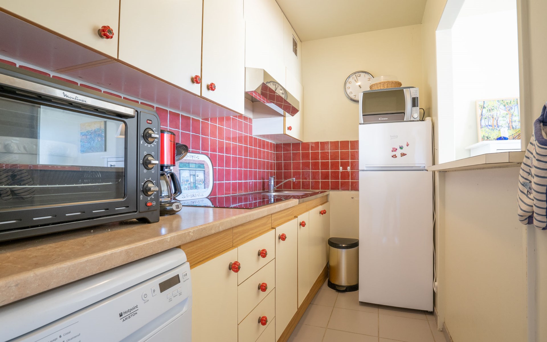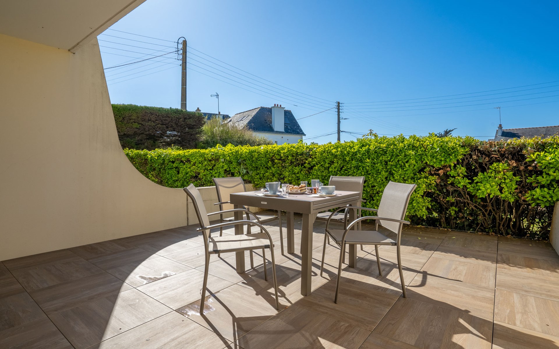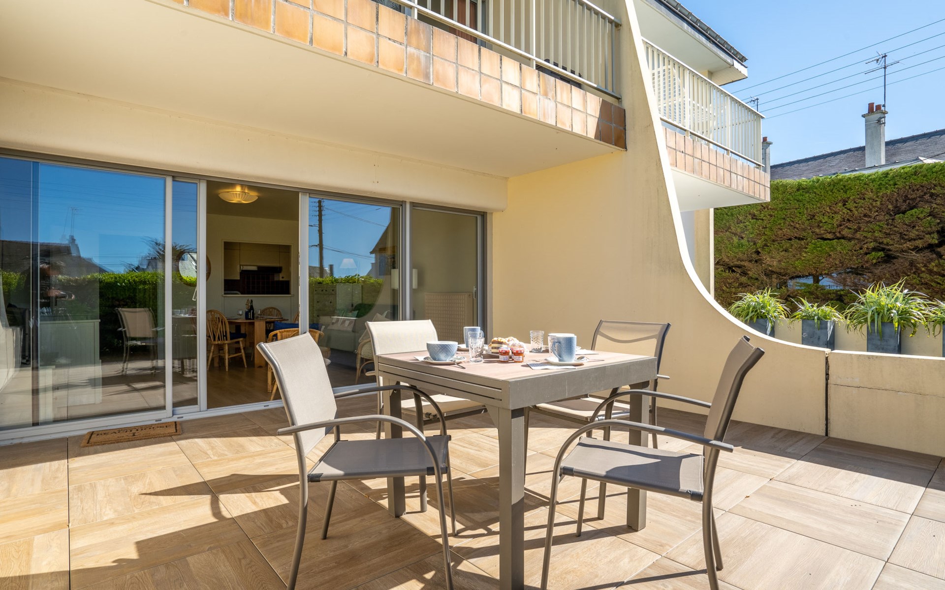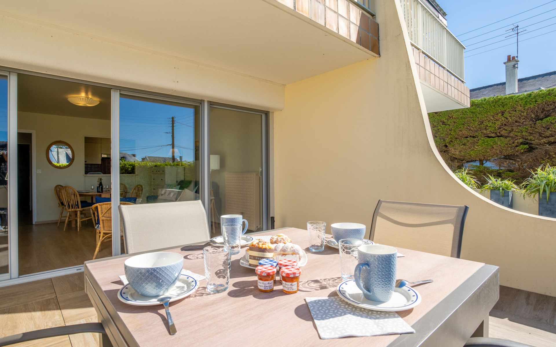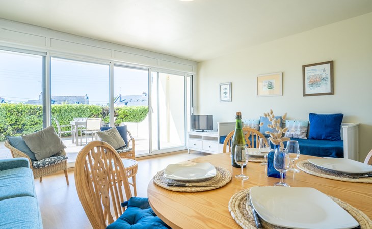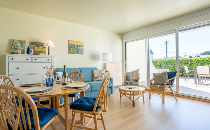 Residentie "Les Albatros", van 2 verdiepingen. In de plaats, 500 m van het centrum, 170 m van zee, 170 m van het strand. In het complex: bergruimte voor fietsen. Parkeerplaats nr. 8. Winkel 500 m, levensmiddelenwinkel, restaurant, bar, zandstrand "La Grande Plage" 170 m. Jachthaven 900 m, golfterrein (18 holes) 23 km, zeilschool 2.2 km. Attracties in de buurt: Casino 650 m, Thalasso 1.8 km, Alignements de Carnac 20 km, La Trinité sur Mer 29 km, Auray 29 km, Vannes 46 km. De sleuteloverdracht vindt plaats bij het agentschap Interhome in Quiberon, 1 km.