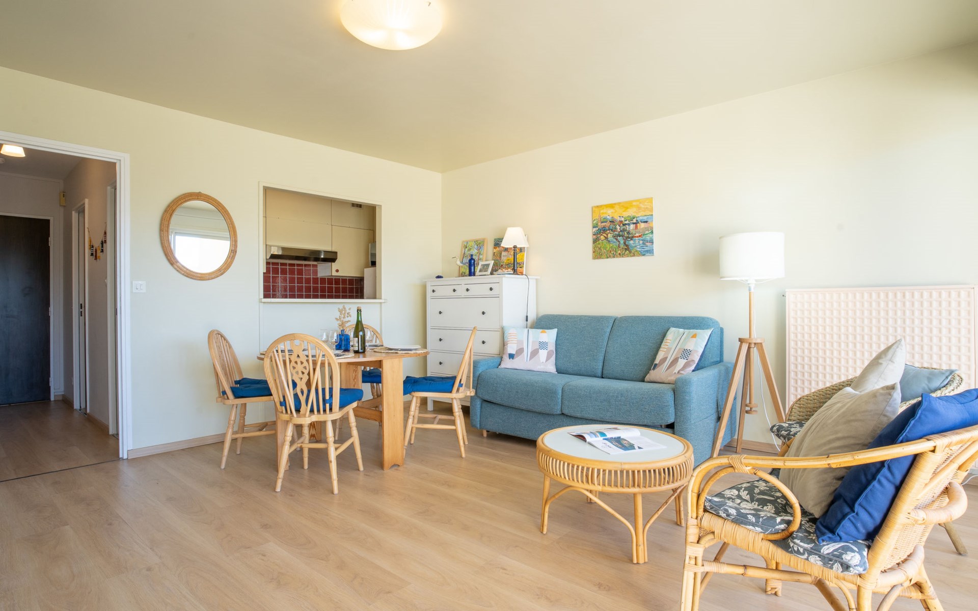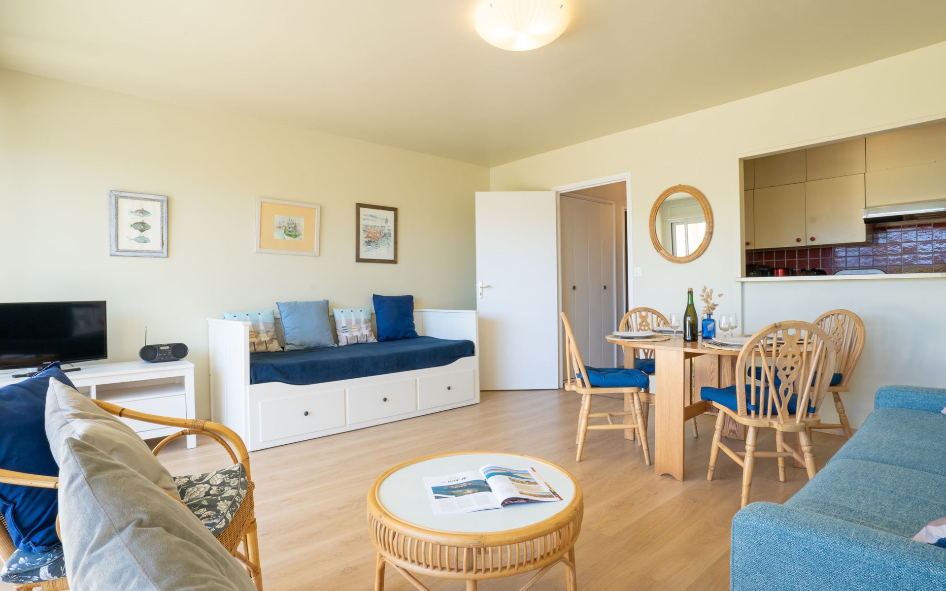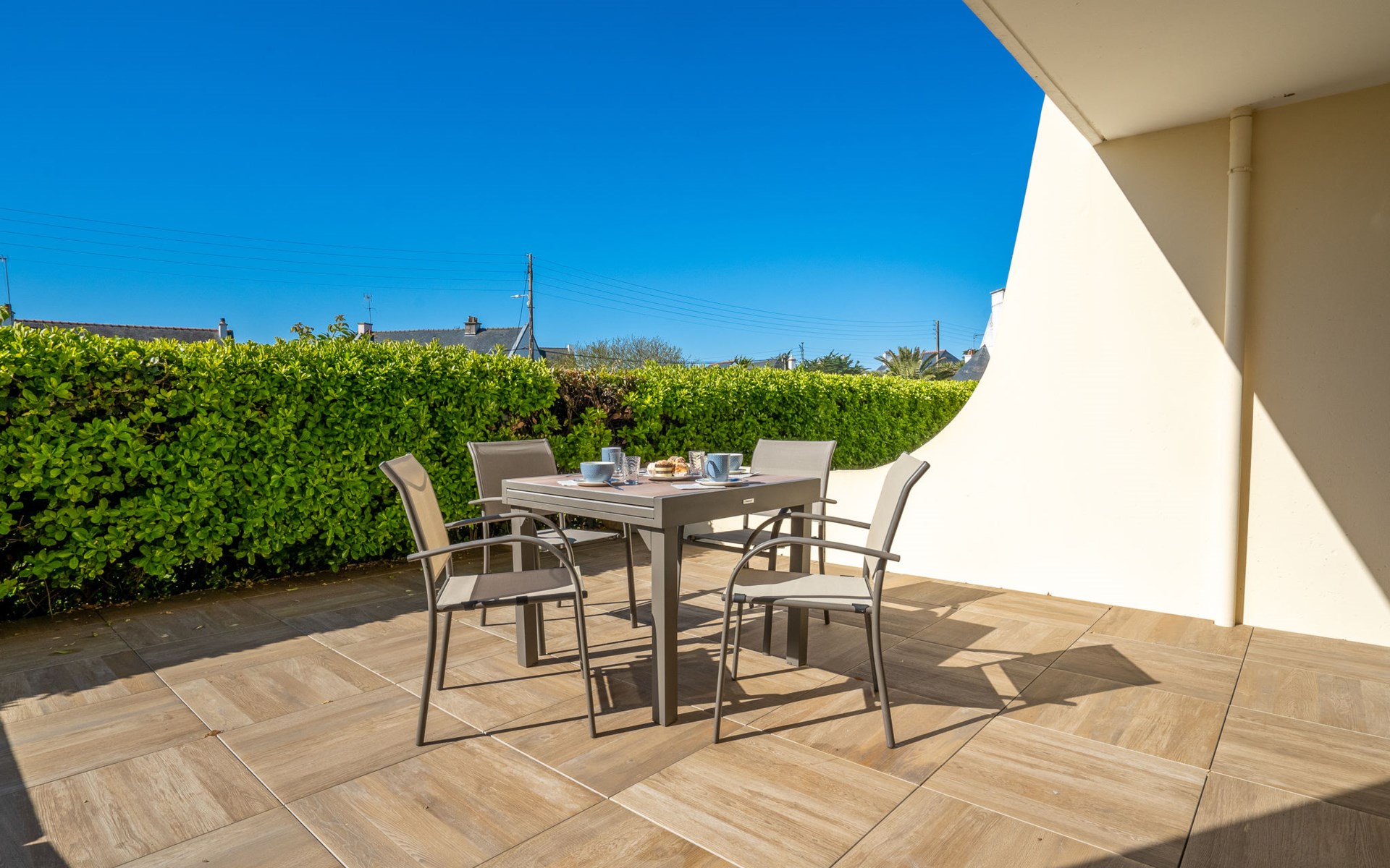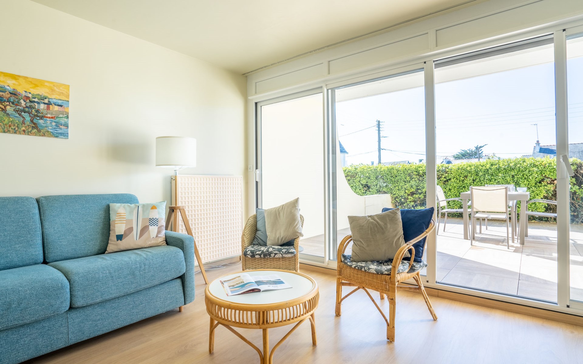 Residentie "Les Albatros", van 2 verdiepingen. In de plaats, 500 m van het centrum, 170 m van zee, 170 m van het strand. In het complex: bergruimte voor fietsen. Parkeerplaats nr. 8. Winkel 500 m, levensmiddelenwinkel, restaurant, bar, zandstrand "La Grande Plage" 170 m. Jachthaven 900 m, golfterrein (18 holes) 23 km, zeilschool 2.2 km. Attracties in de buurt: Casino 650 m, Thalasso 1.8 km, Alignements de Carnac 20 km, La Trinité sur Mer 29 km, Auray 29 km, Vannes 46 km. De sleuteloverdracht vindt plaats bij het agentschap Interhome in Quiberon, 1 km.