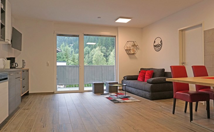 See 15 km van Ischgl: Groot, moderne flatgebouw, bouwjaar 2021. In de wijk Gries, rustige, verhoogde ligging, 600 m van het meer, 900 m van het skigebied, aan een doodlopende weg. In het complex: lift, centrale verwarming. Toegangsweg tot aan het huis. Parkeerplaats nr. 14 bij het huis. Supermarkt 700 m, restaurant 100 m, bushalte "regional" 700 m, treinstation "Landeck" 10 km, meer (zwemmen) 600 m. Tennis 600 m, ski faciliteiten, skibushalte 200 m, rodelbaan 900 m, langlaufloipe 15 km. Gratis skibus. Gratis skibus naar het skigebied See.