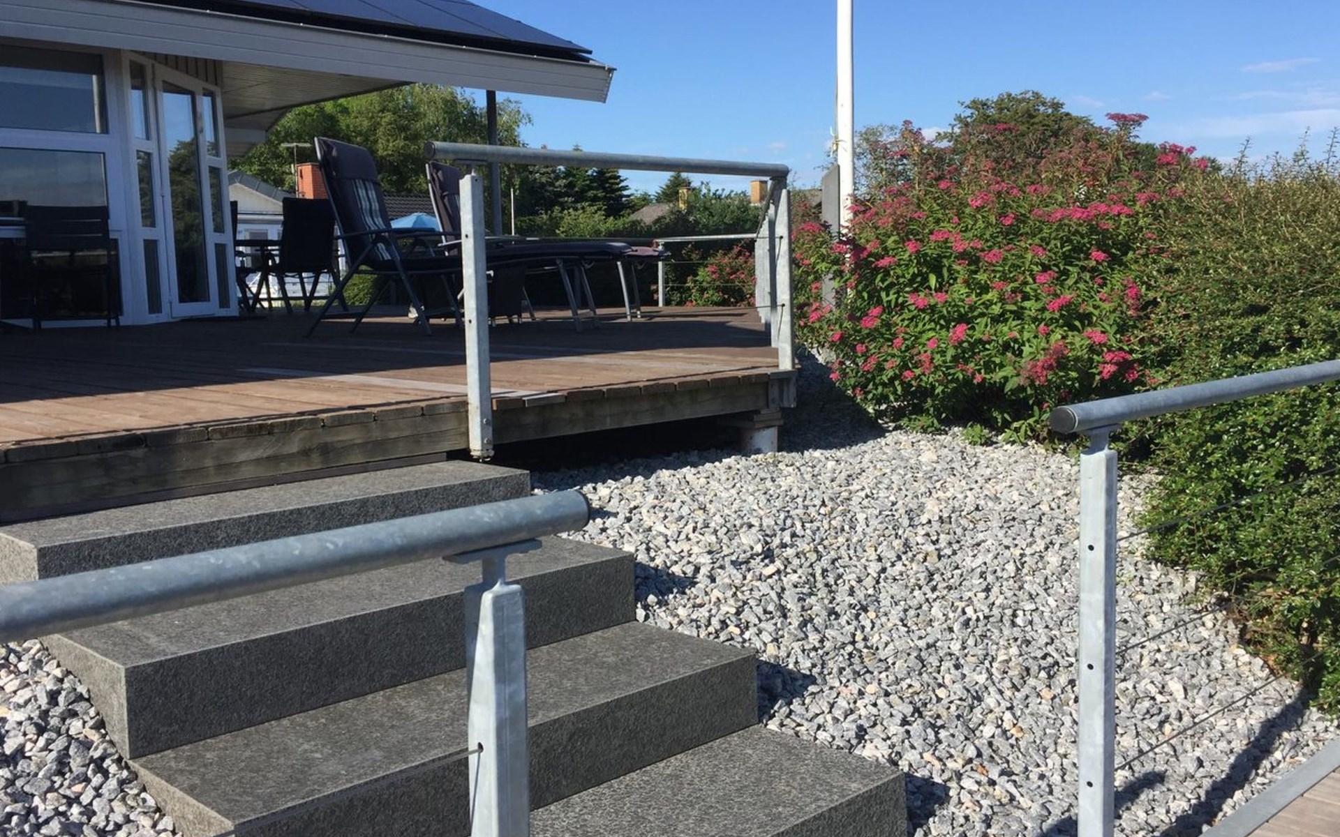 Eengezinswoning, bouwjaar 1994. 150 m van zee. Voor alleengebruik: terrein 462 m2, verzorgde tuin. Terras (47 m2). In het huis: sauna, wasmachine. Parkeerplaats bij het huis. Levensmiddelenwinkel 200 m. De eigenaar accepteert geen jeugdgroepen.