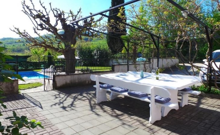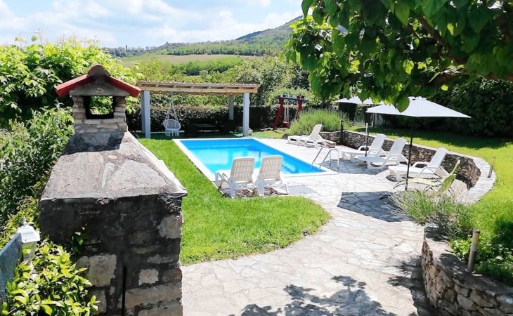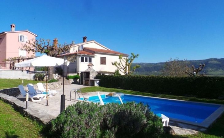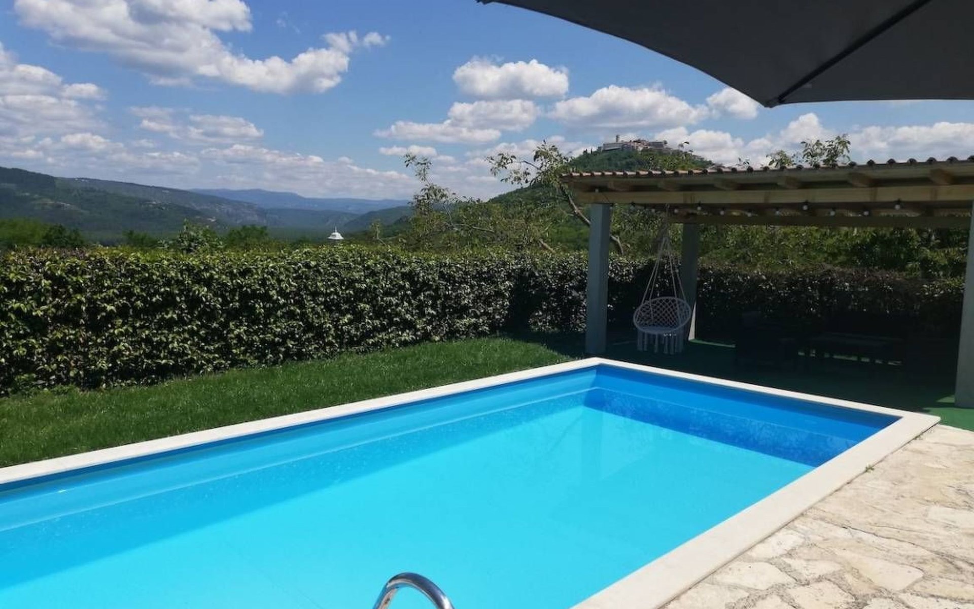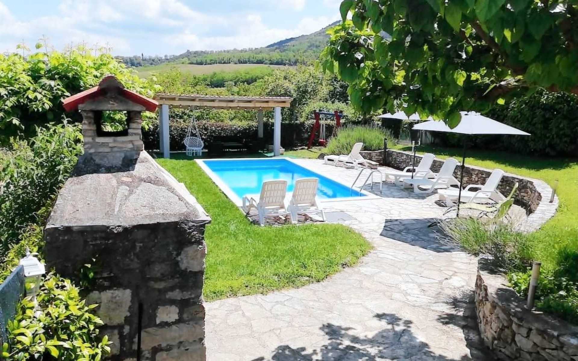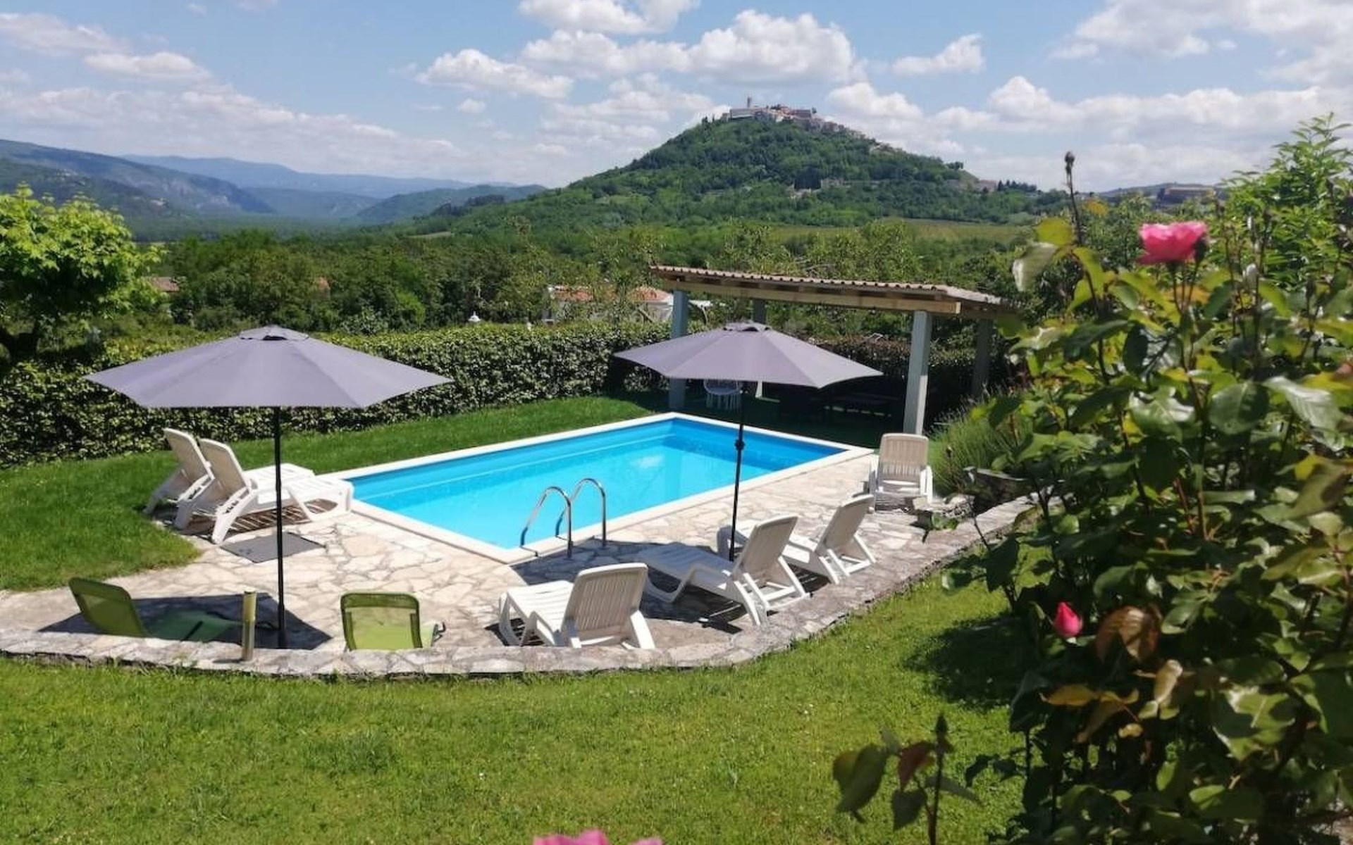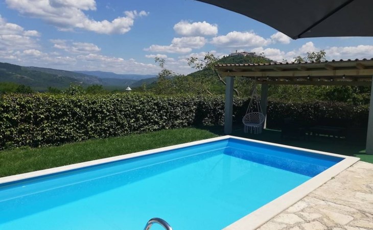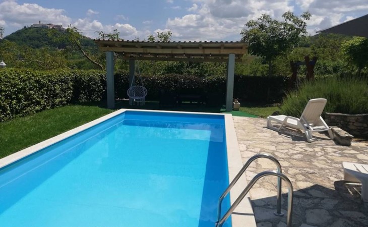 Discover the enchantment of Istria from this picturesque holiday house, nestled at the base of Motovun and embraced by lush vineyards that offer a stunning view of the town. This serene retreat, ideal for a group of eight, promises an unforgettable stay with its blend of comfort and scenic beauty, just 2.5 km away from the historical town of Motovun.Inside, the house boasts four well-appointed bedrooms, each with its own private bathroom, ensuring privacy and convenience for all guests. The presence of air conditioning throughout the house guarantees a comfortable environment, regardless of the weather outside. Additionally, the house is equipped with a washing machine, coffee machine, and an espresso pot, catering to all your needs for a pleasant stay.The exterior features are as impressive as the interior, with a spacious terrace at the front of the house, perfect for al fresco dining or simply enjoying the tranquil surroundings. The highlight of the outdoor space is undoubtedly the 24 m2 swimming pool, inviting guests to cool off on hot summer days. A balcony provides an elevated view of the scenic landscape, and the garden, for the sole use of guests, is ideal for those bringing pets along, with allowance for up to two.The house’s surroundings offer a multitude of activities for nature lovers and those seeking an active holiday. From exploring the vineyards to visiting the town of Motovun, guests will find plenty to do in this idyllic setting. The location also serves as an excellent base for discovering the rest of Istria, with its mountains, seas, lakes, and valleys, providing diverse options for day trips and outdoor adventures.This holiday house in Istria is not just a place to stay but a gateway to experiencing the rich culture and natural beauty of the region. With the added bonus of a 10% discount voucher at a local restaurant and wine shop courtesy of your hosts, the Valenta family, your stay promises to be as rewarding as it is relaxing.