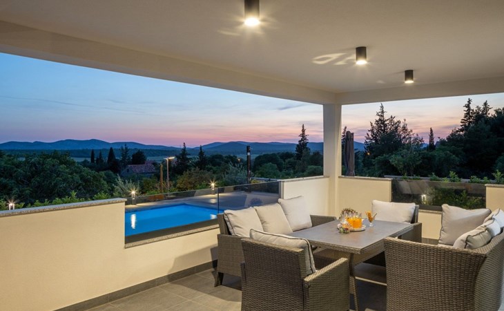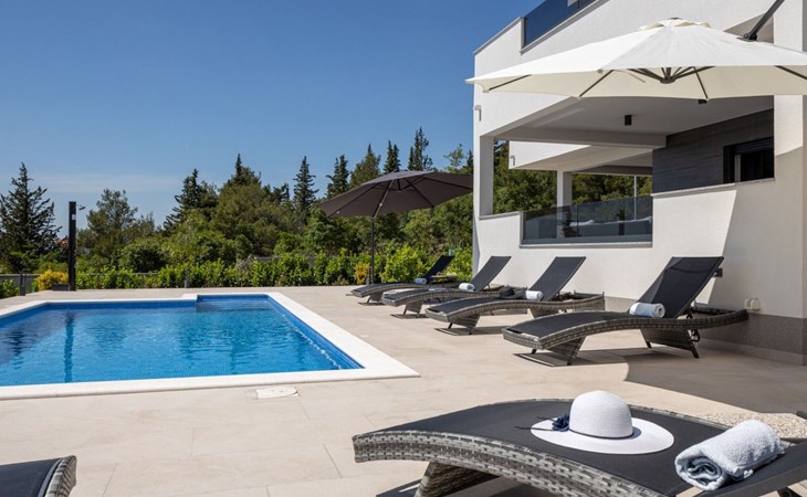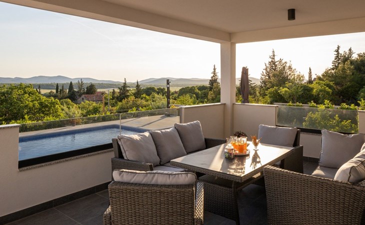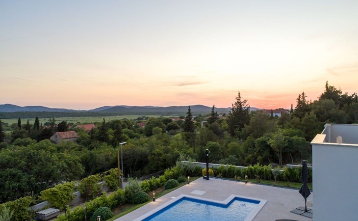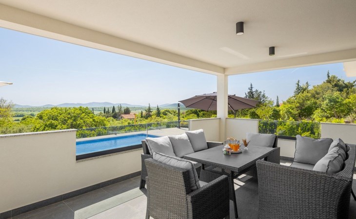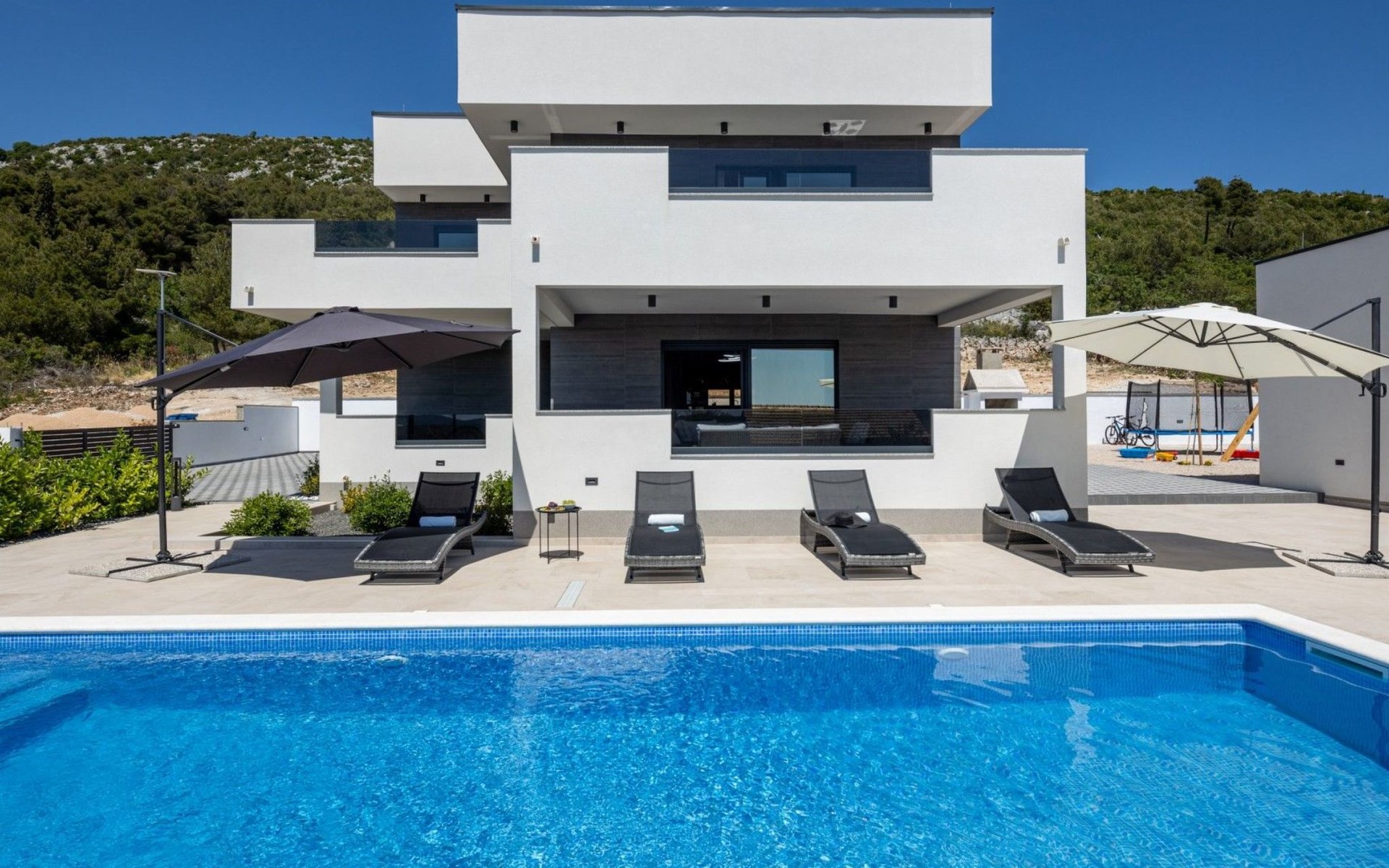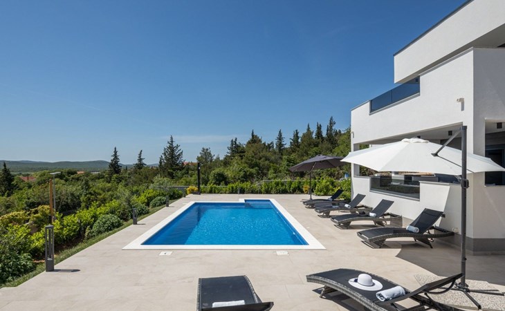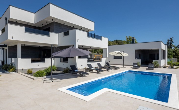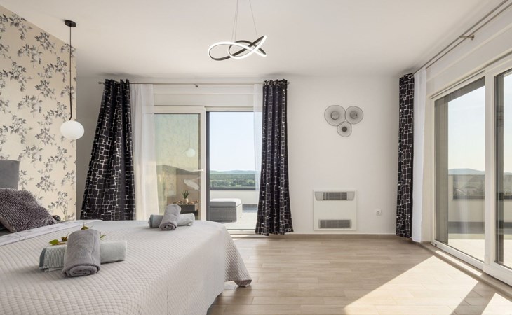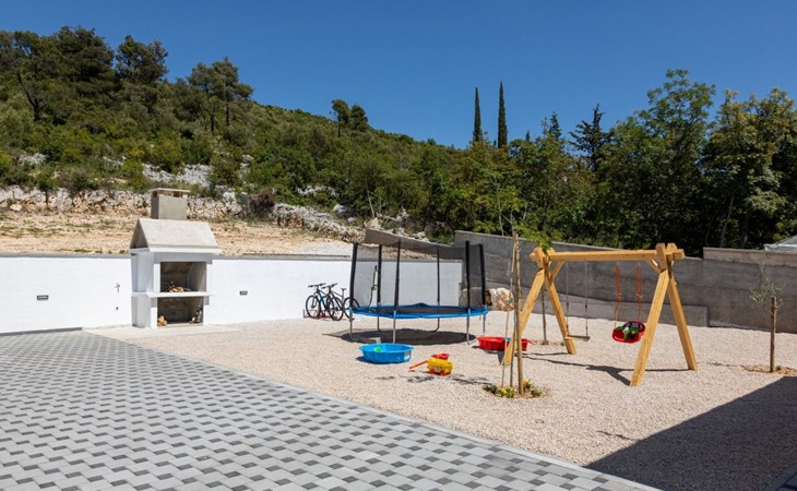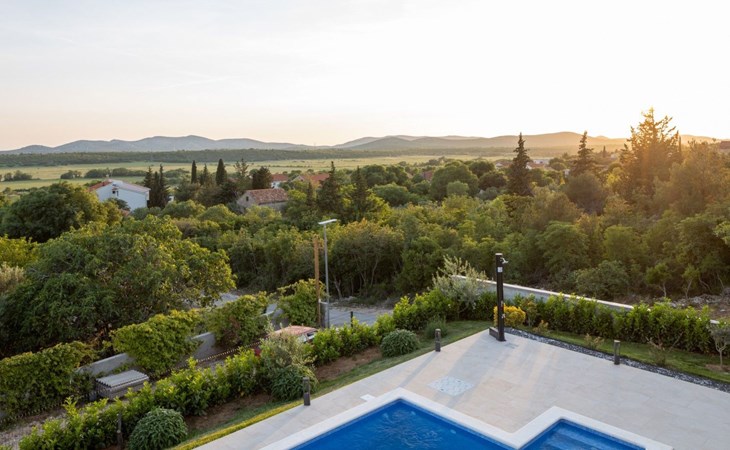 Welcome to Villa Bura, a tranquil retreat nestled in Stankovci, Dalmatia, offering an unmatched blend of comfort and serenity for up to 8 guests, plus accommodation for 2 additional children. Surrounded by the pristine nature of the continental part of Vodice, this detached house serves as the perfect getaway for large groups seeking to immerse themselves in tranquility while enjoying modern conveniences.The interior of Villa Bura is thoughtfully designed to cater to your every need. Equipped with air conditioning and underfloor heating throughout, the villa ensures your comfort regardless of the season. Each of the four spacious bedrooms promises restful nights, complemented by three well-appointed bathrooms, enhancing your stay with privacy and convenience. The villa's state-of-the-art kitchen, complete with a dishwasher, coffee machine, and electric kettle, makes meal preparation a breeze. Additionally, a washing machine and clothes dryer are exclusively available for guests' use, ensuring all the comforts of home.The villa's exterior is equally impressive, boasting a private pool for your exclusive enjoyment. The terrace and garden invite guests to relax and unwind, whether it's lounging on the sunbeds by the pool, seeking shade under the garden furniture, or watching children delight in the playground with a trampoline. The property's seamless integration with nature offers a peaceful backdrop for outdoor activities and relaxation.Beyond the confines of Villa Bura, the enchanting landscape of Dalmatia beckons. Just a stone's throw away, the convenience of a grocery store within 500m ensures easy access to essentials. Venture further to explore the natural wonders of NP Krka and the Nature Park Vrana Lake, or take advantage of the available bikes to discover the local terrain. The area is also ideal for hiking enthusiasts, offering numerous trails that reveal the region's natural beauty.Villa Bura is more than just a holiday house; it's a sanctuary where nature meets comfort, designed for those who seek both adventure and relaxation. Whether you're looking to explore the great outdoors or simply escape the hustle and bustle of daily life, this villa offers the perfect blend of convenience, comfort, and natural beauty. Make Villa Bura your choice for an unforgettable retreat in the heart of Dalmatia.