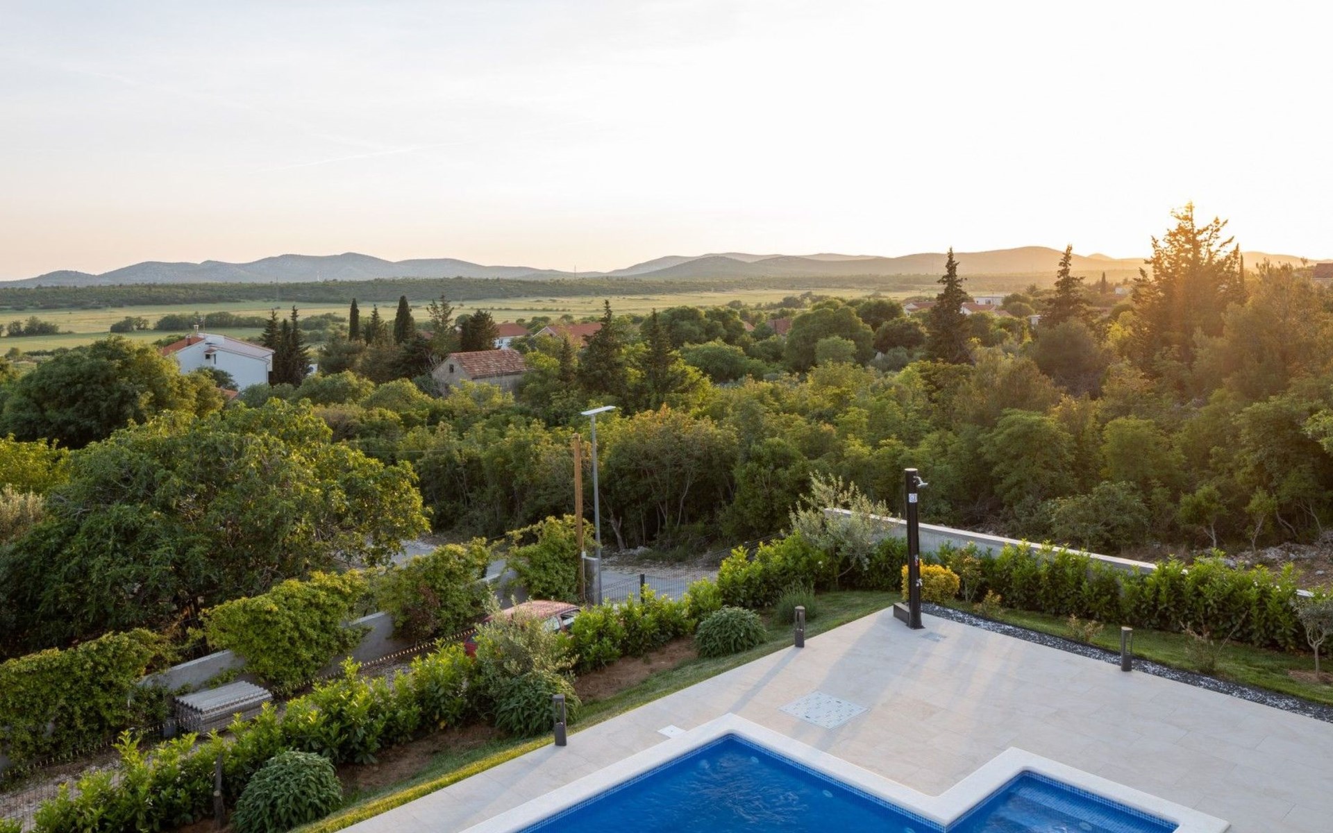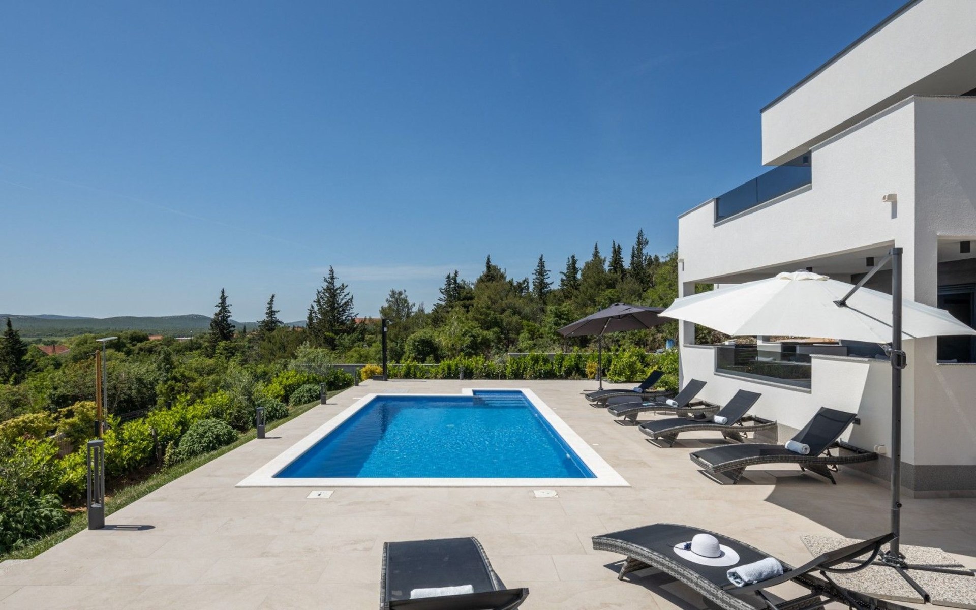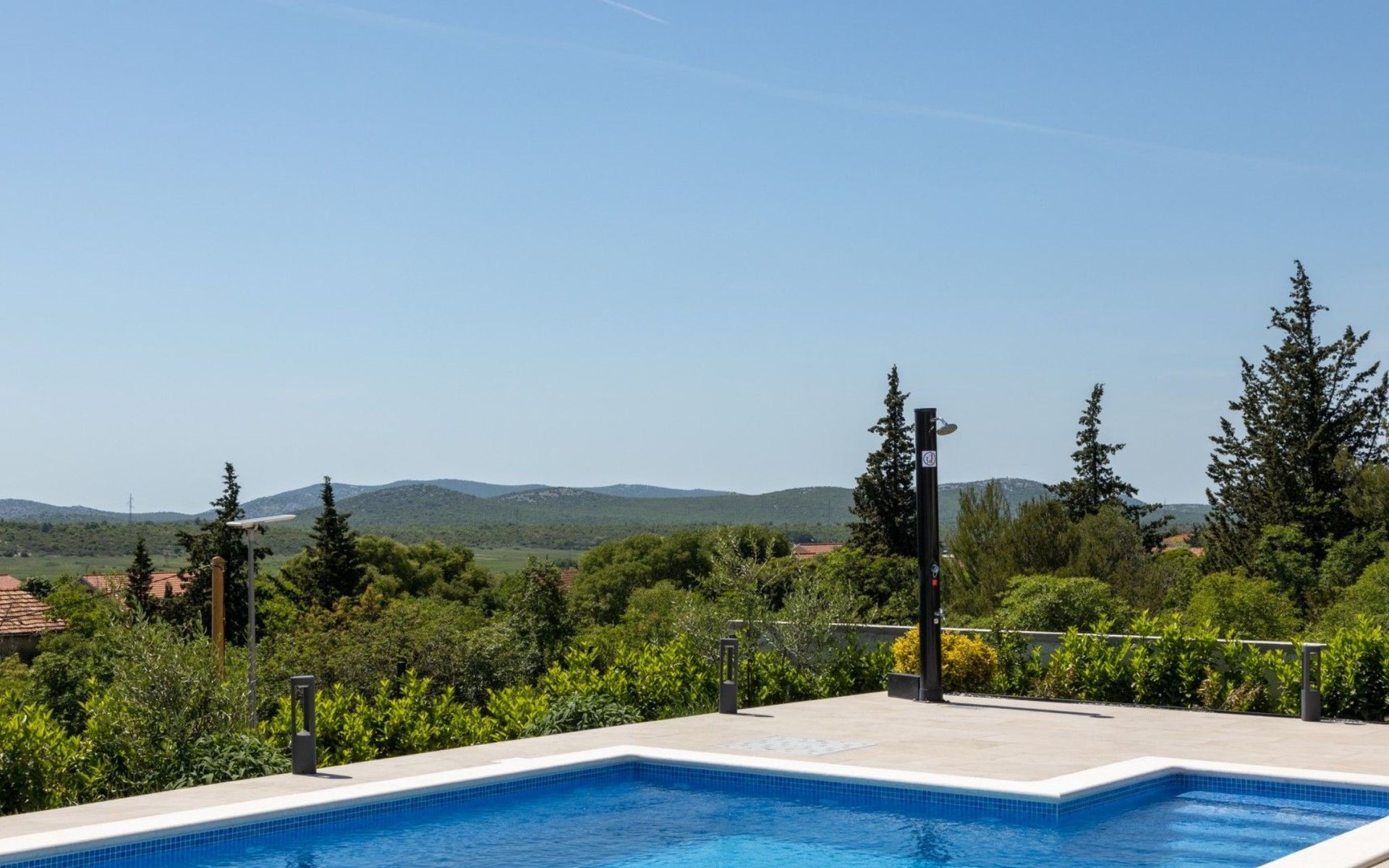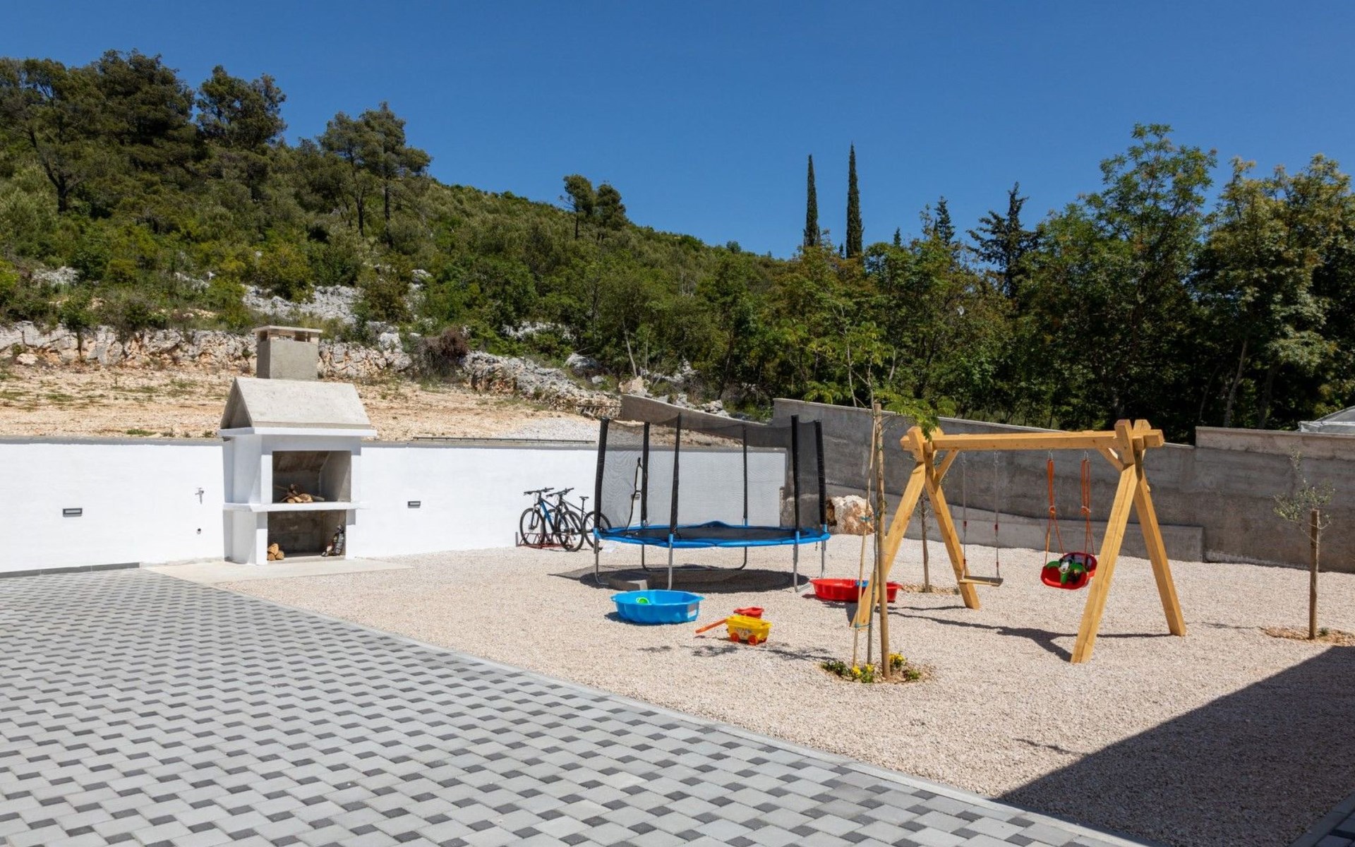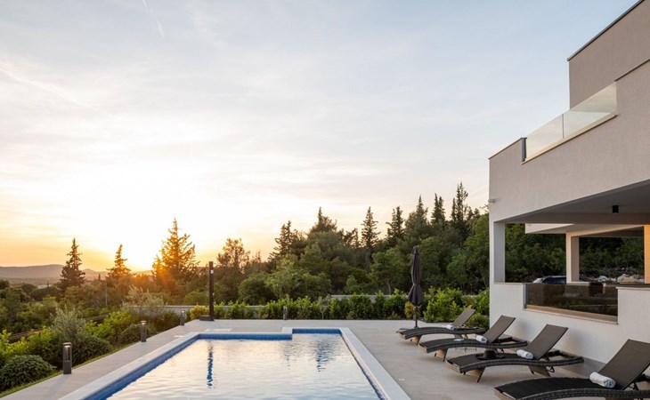 Welcome to Villa Bura, a tranquil retreat nestled in Stankovci, Dalmatia, offering an unmatched blend of comfort and serenity for up to 8 guests, plus accommodation for 2 additional children. Surrounded by the pristine nature of the continental part of Vodice, this detached house serves as the perfect getaway for large groups seeking to immerse themselves in tranquility while enjoying modern conveniences.The interior of Villa Bura is thoughtfully designed to cater to your every need. Equipped with air conditioning and underfloor heating throughout, the villa ensures your comfort regardless of the season. Each of the four spacious bedrooms promises restful nights, complemented by three well-appointed bathrooms, enhancing your stay with privacy and convenience. The villa's state-of-the-art kitchen, complete with a dishwasher, coffee machine, and electric kettle, makes meal preparation a breeze. Additionally, a washing machine and clothes dryer are exclusively available for guests' use, ensuring all the comforts of home.The villa's exterior is equally impressive, boasting a private pool for your exclusive enjoyment. The terrace and garden invite guests to relax and unwind, whether it's lounging on the sunbeds by the pool, seeking shade under the garden furniture, or watching children delight in the playground with a trampoline. The property's seamless integration with nature offers a peaceful backdrop for outdoor activities and relaxation.Beyond the confines of Villa Bura, the enchanting landscape of Dalmatia beckons. Just a stone's throw away, the convenience of a grocery store within 500m ensures easy access to essentials. Venture further to explore the natural wonders of NP Krka and the Nature Park Vrana Lake, or take advantage of the available bikes to discover the local terrain. The area is also ideal for hiking enthusiasts, offering numerous trails that reveal the region's natural beauty.Villa Bura is more than just a holiday house; it's a sanctuary where nature meets comfort, designed for those who seek both adventure and relaxation. Whether you're looking to explore the great outdoors or simply escape the hustle and bustle of daily life, this villa offers the perfect blend of convenience, comfort, and natural beauty. Make Villa Bura your choice for an unforgettable retreat in the heart of Dalmatia.