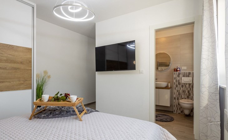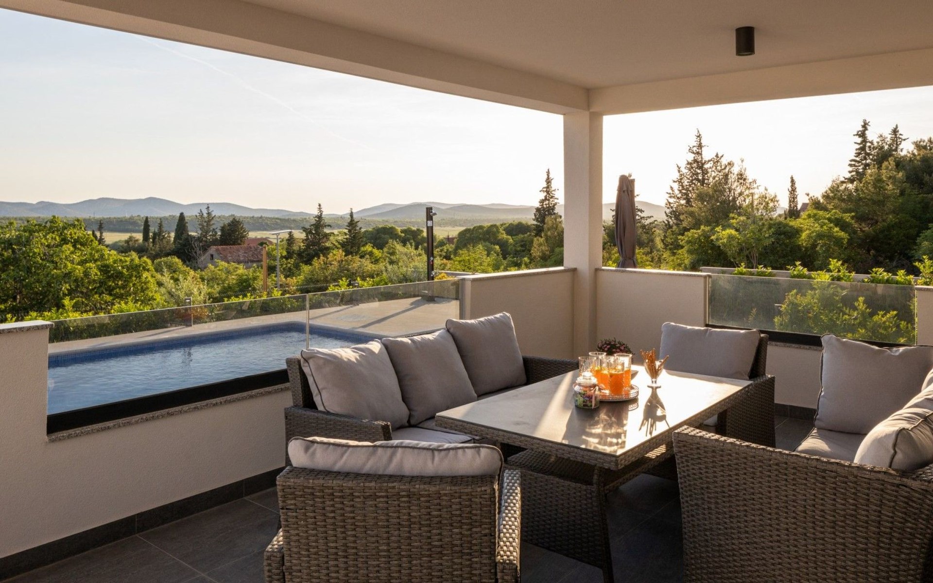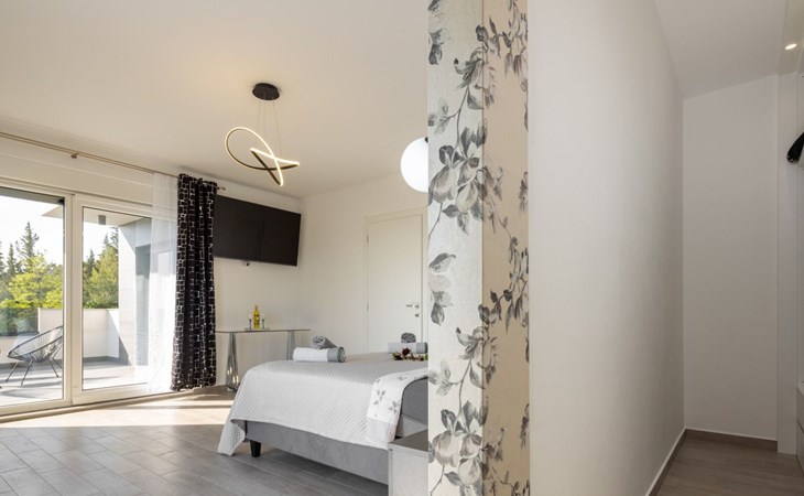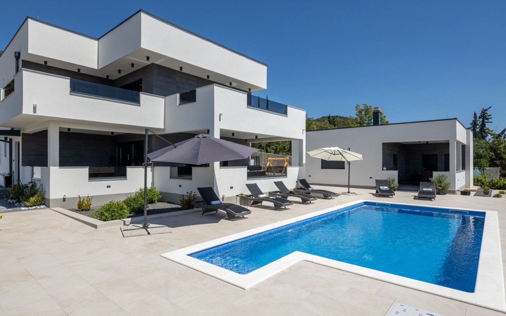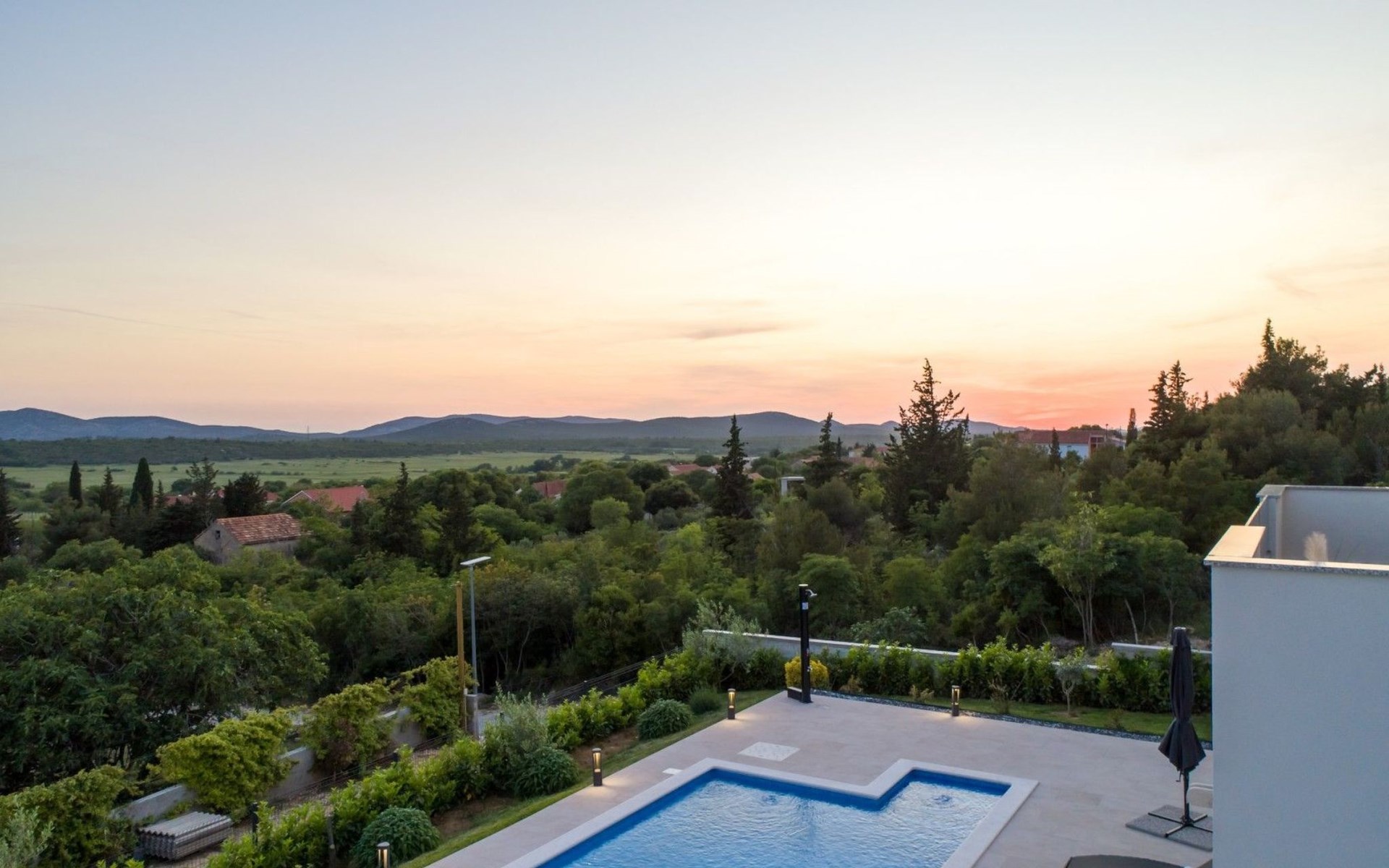 Welcome to Villa Bura, a tranquil retreat nestled in Stankovci, Dalmatia, offering an unmatched blend of comfort and serenity for up to 8 guests, plus accommodation for 2 additional children. Surrounded by the pristine nature of the continental part of Vodice, this detached house serves as the perfect getaway for large groups seeking to immerse themselves in tranquility while enjoying modern conveniences.The interior of Villa Bura is thoughtfully designed to cater to your every need. Equipped with air conditioning and underfloor heating throughout, the villa ensures your comfort regardless of the season. Each of the four spacious bedrooms promises restful nights, complemented by three well-appointed bathrooms, enhancing your stay with privacy and convenience. The villa's state-of-the-art kitchen, complete with a dishwasher, coffee machine, and electric kettle, makes meal preparation a breeze. Additionally, a washing machine and clothes dryer are exclusively available for guests' use, ensuring all the comforts of home.The villa's exterior is equally impressive, boasting a private pool for your exclusive enjoyment. The terrace and garden invite guests to relax and unwind, whether it's lounging on the sunbeds by the pool, seeking shade under the garden furniture, or watching children delight in the playground with a trampoline. The property's seamless integration with nature offers a peaceful backdrop for outdoor activities and relaxation.Beyond the confines of Villa Bura, the enchanting landscape of Dalmatia beckons. Just a stone's throw away, the convenience of a grocery store within 500m ensures easy access to essentials. Venture further to explore the natural wonders of NP Krka and the Nature Park Vrana Lake, or take advantage of the available bikes to discover the local terrain. The area is also ideal for hiking enthusiasts, offering numerous trails that reveal the region's natural beauty.Villa Bura is more than just a holiday house; it's a sanctuary where nature meets comfort, designed for those who seek both adventure and relaxation. Whether you're looking to explore the great outdoors or simply escape the hustle and bustle of daily life, this villa offers the perfect blend of convenience, comfort, and natural beauty. Make Villa Bura your choice for an unforgettable retreat in the heart of Dalmatia.