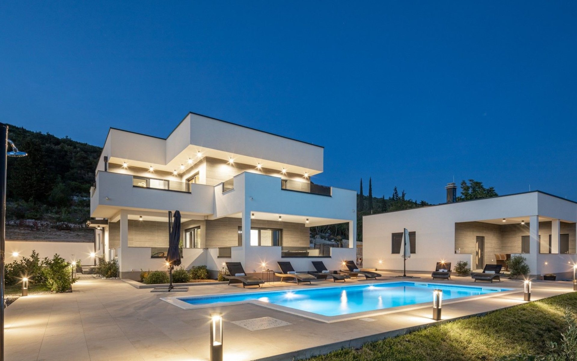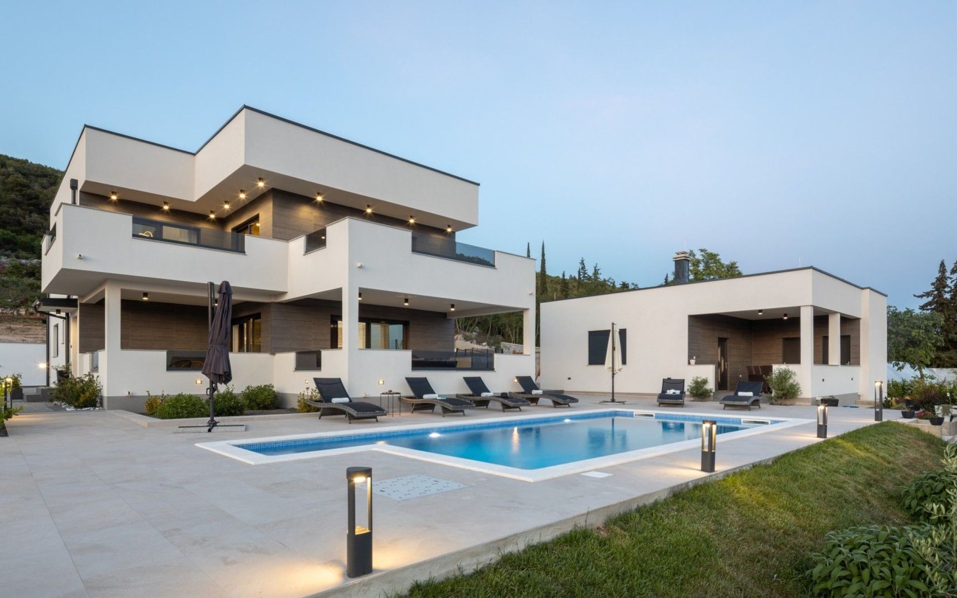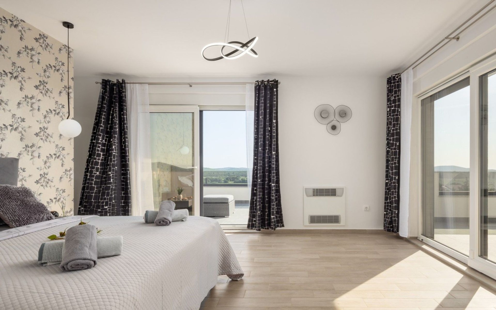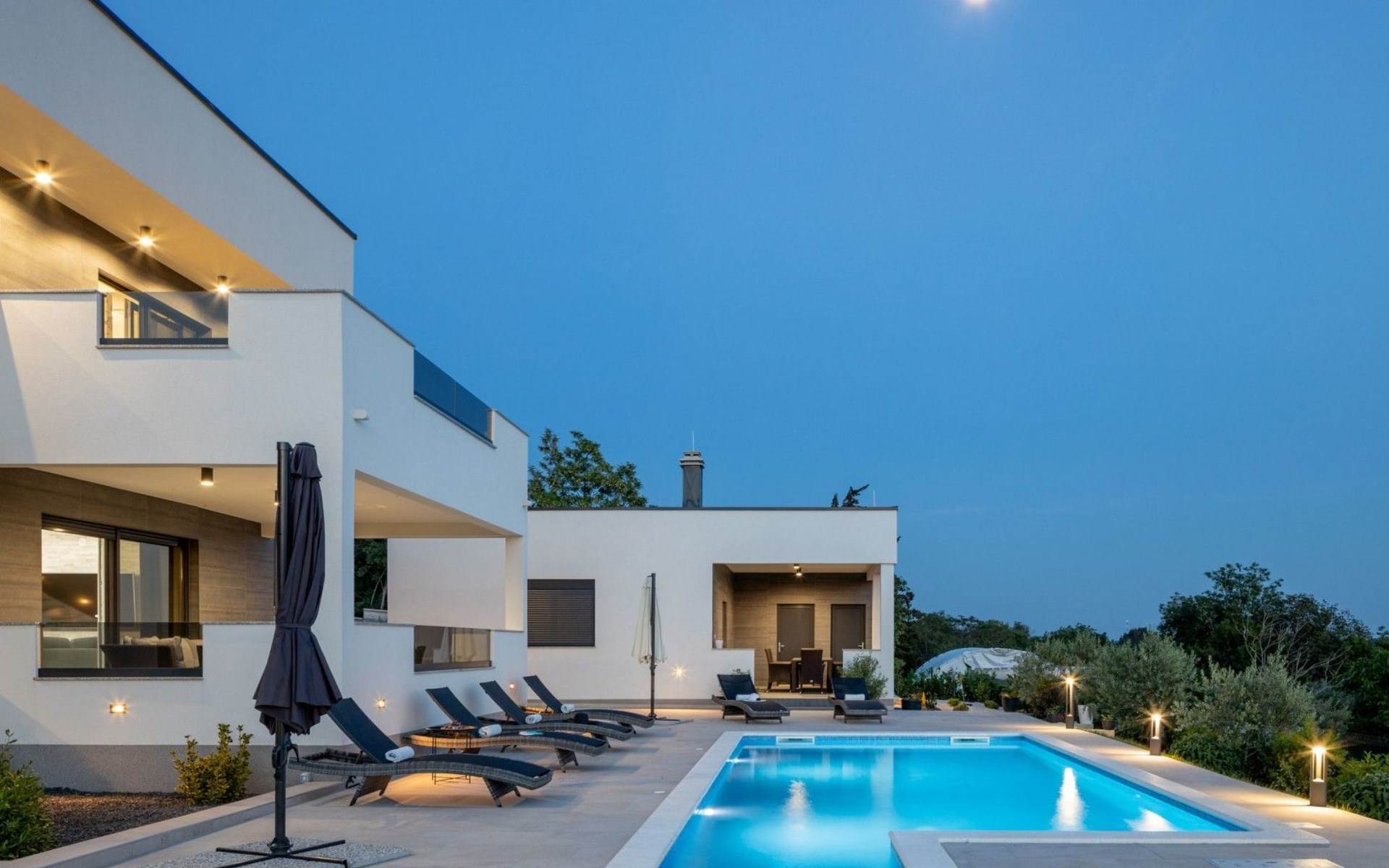 Welcome to Villa Bura, a tranquil retreat nestled in Stankovci, Dalmatia, offering an unmatched blend of comfort and serenity for up to 8 guests, plus accommodation for 2 additional children. Surrounded by the pristine nature of the continental part of Vodice, this detached house serves as the perfect getaway for large groups seeking to immerse themselves in tranquility while enjoying modern conveniences.The interior of Villa Bura is thoughtfully designed to cater to your every need. Equipped with air conditioning and underfloor heating throughout, the villa ensures your comfort regardless of the season. Each of the four spacious bedrooms promises restful nights, complemented by three well-appointed bathrooms, enhancing your stay with privacy and convenience. The villa's state-of-the-art kitchen, complete with a dishwasher, coffee machine, and electric kettle, makes meal preparation a breeze. Additionally, a washing machine and clothes dryer are exclusively available for guests' use, ensuring all the comforts of home.The villa's exterior is equally impressive, boasting a private pool for your exclusive enjoyment. The terrace and garden invite guests to relax and unwind, whether it's lounging on the sunbeds by the pool, seeking shade under the garden furniture, or watching children delight in the playground with a trampoline. The property's seamless integration with nature offers a peaceful backdrop for outdoor activities and relaxation.Beyond the confines of Villa Bura, the enchanting landscape of Dalmatia beckons. Just a stone's throw away, the convenience of a grocery store within 500m ensures easy access to essentials. Venture further to explore the natural wonders of NP Krka and the Nature Park Vrana Lake, or take advantage of the available bikes to discover the local terrain. The area is also ideal for hiking enthusiasts, offering numerous trails that reveal the region's natural beauty.Villa Bura is more than just a holiday house; it's a sanctuary where nature meets comfort, designed for those who seek both adventure and relaxation. Whether you're looking to explore the great outdoors or simply escape the hustle and bustle of daily life, this villa offers the perfect blend of convenience, comfort, and natural beauty. Make Villa Bura your choice for an unforgettable retreat in the heart of Dalmatia.