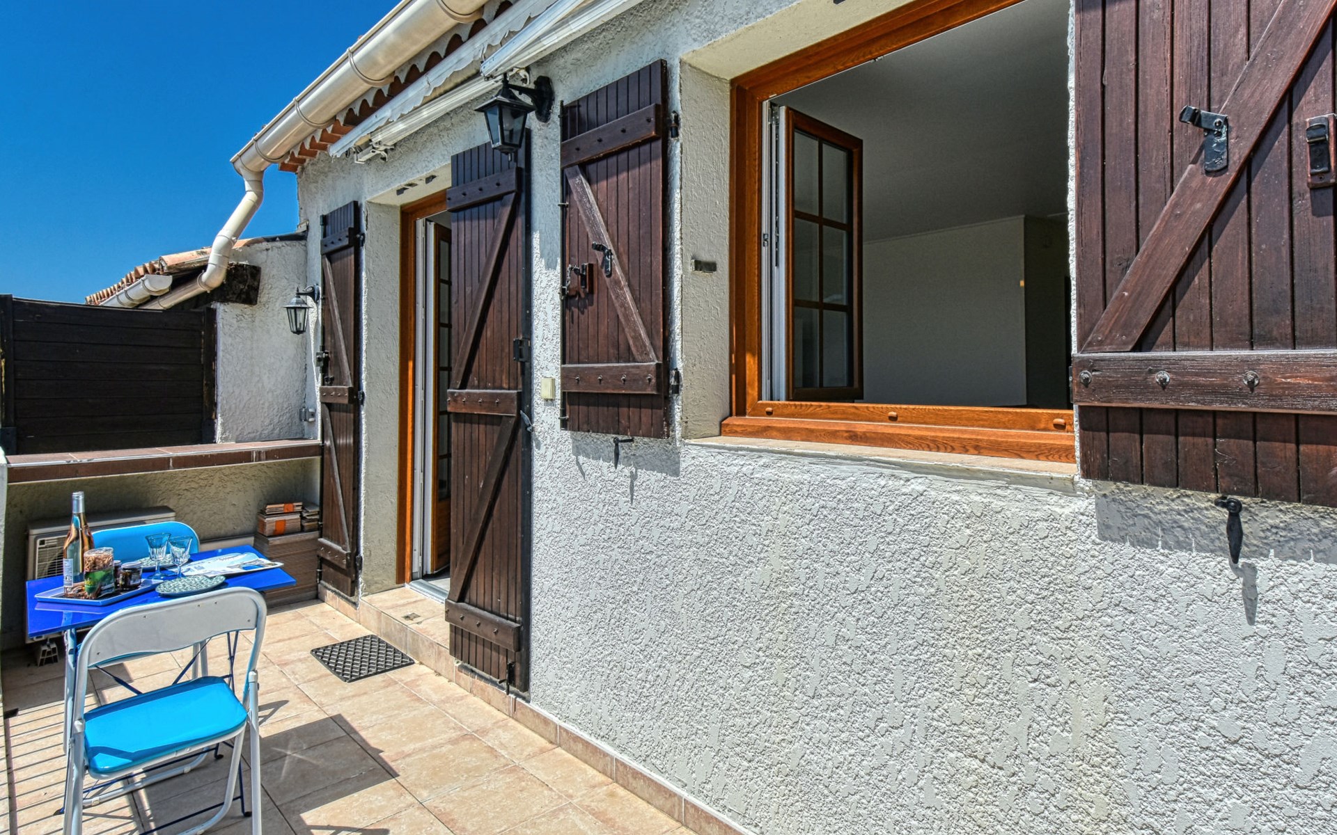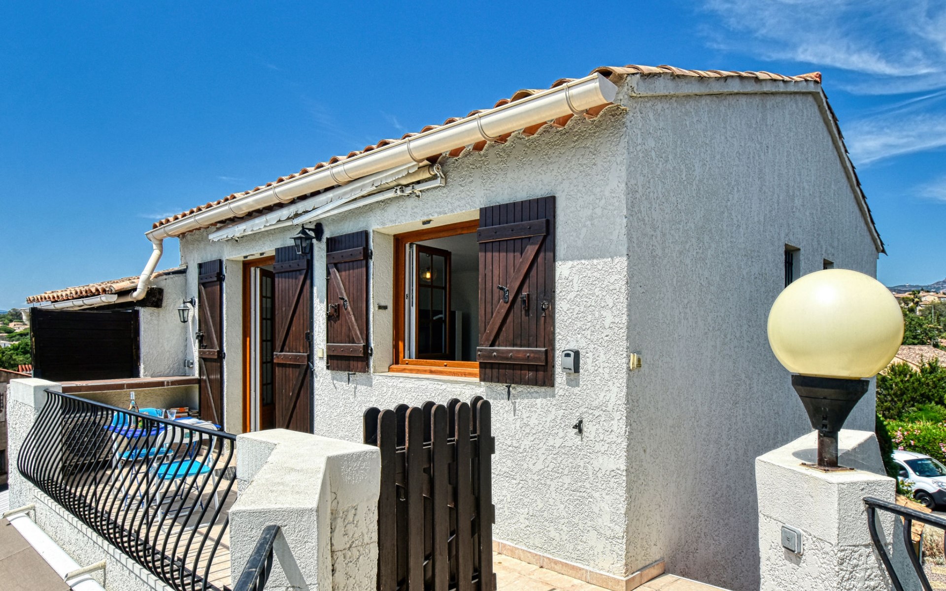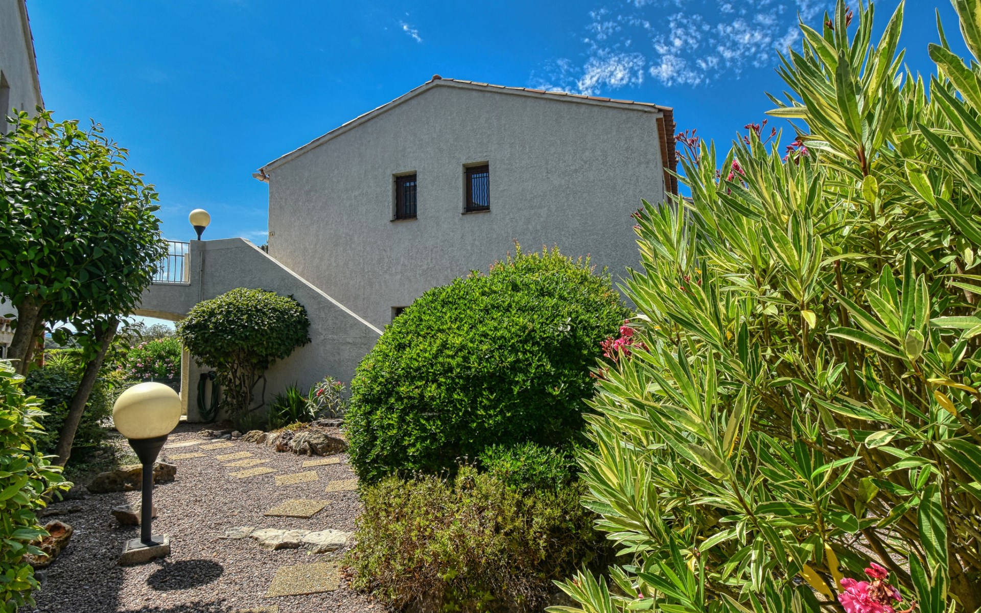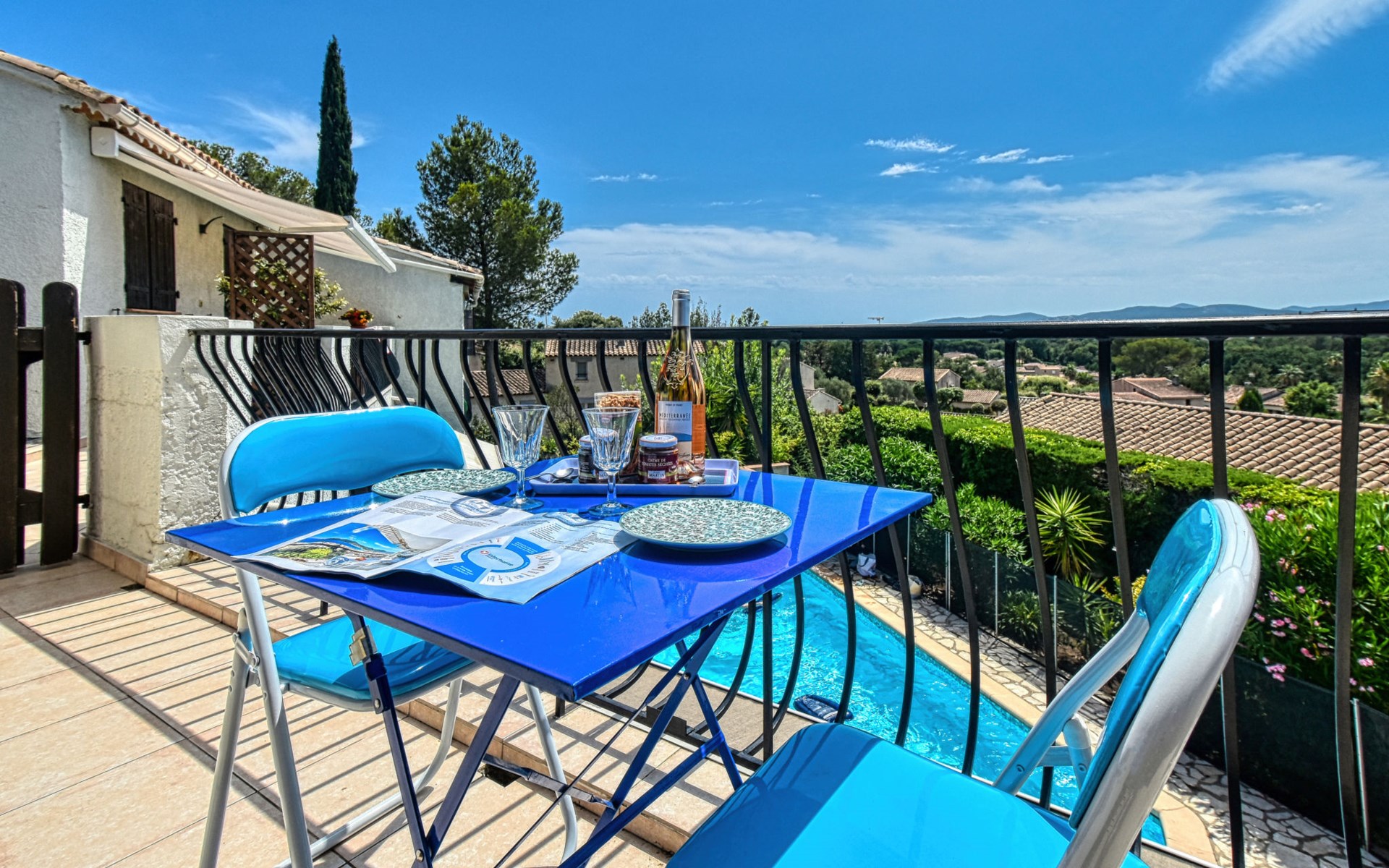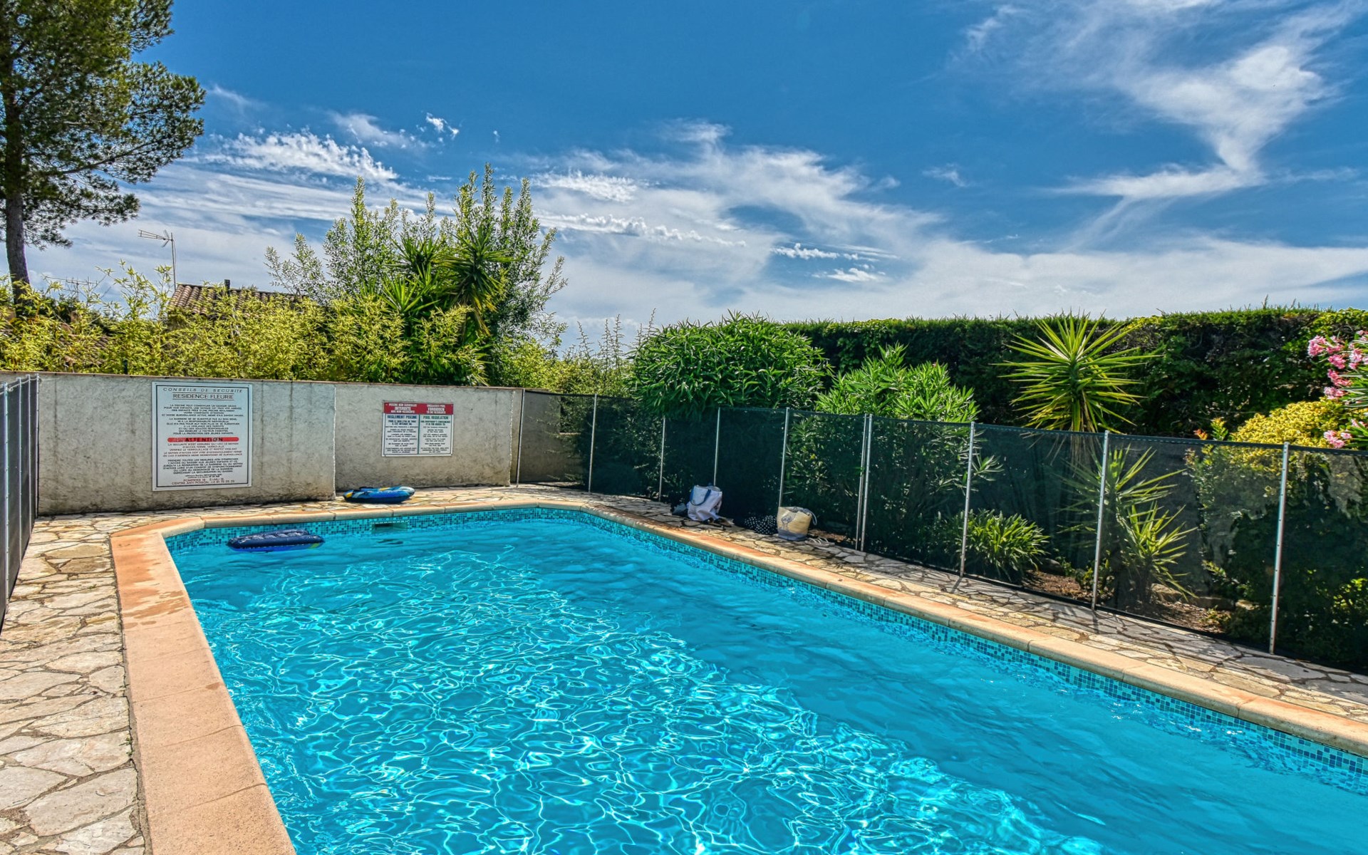 Kleine residentie "Fleurie", van 2 verdiepingen. In de wijk Tour de Mare, 4 km van zee. Voor medegebruik: openluchtzwembad hoekig (4 x 7 m, 60 - 180 cm diepte, seizoensgebonden beschikbaarheid: 15.Mei. - 15.Sep.) met trap. Supermarkt 2 km, winkelcentrum 2 km, bushalte "Vieille bergerie" 300 m, station "Saint Raphael" 5 km, zandstrand "Plage de Fréjus" 4 km. Jachthaven 4 km, golfterrein (18 holes) 3 km. Attracties in de buurt: Aqualand 4 km, Karting 4 km. Wandelgebied L'Estérel 7 km. Auto noodzakelijk, geen lift. Groepen jongeren uitsluitend op aanvraag. De sleuteloverdracht vindt plaats bij het agentschap INTERHOME in Port Fréjus, 4 km.