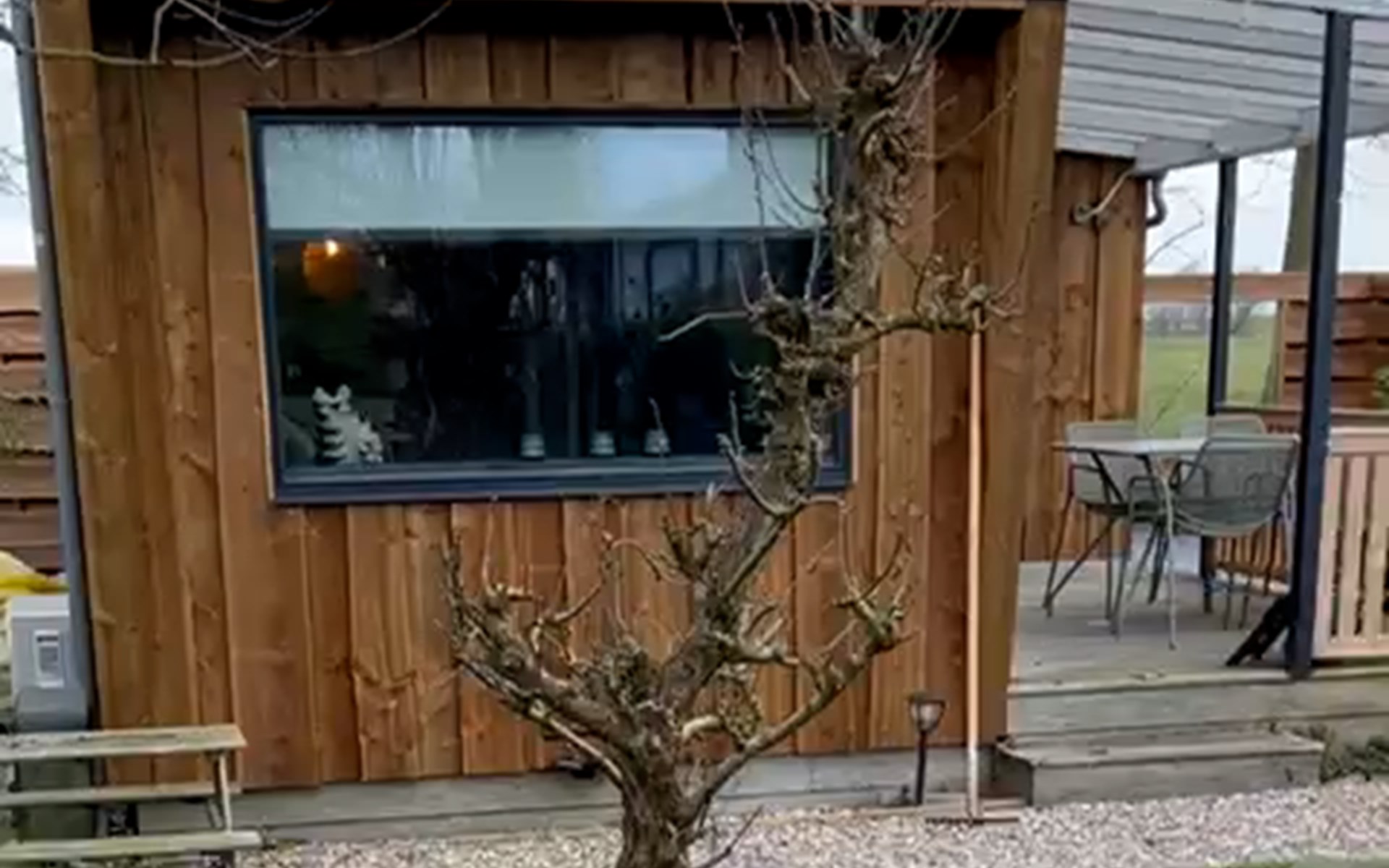 De volledig omheinde tuin maakt dit chalet extra geschikt voor gezinnen met kleine kinderen of gasten met honden. Iedereen kan hier veilig en zorgeloos rondlopen.