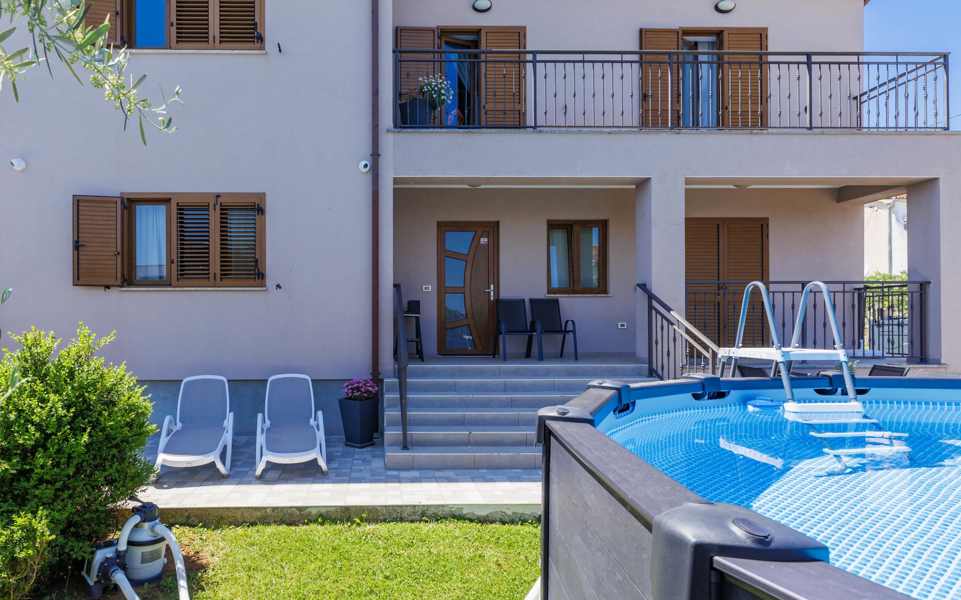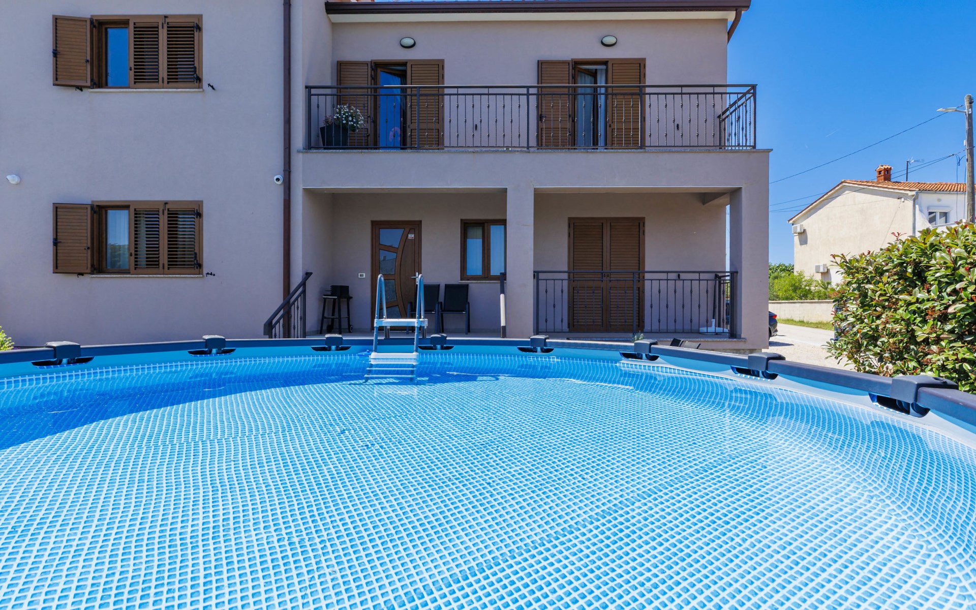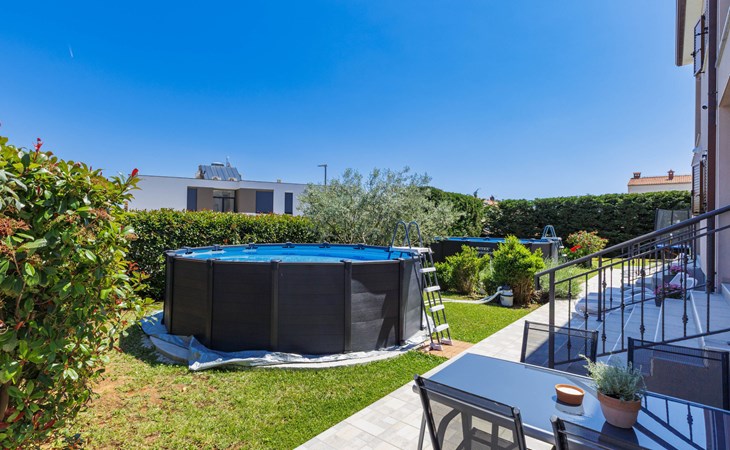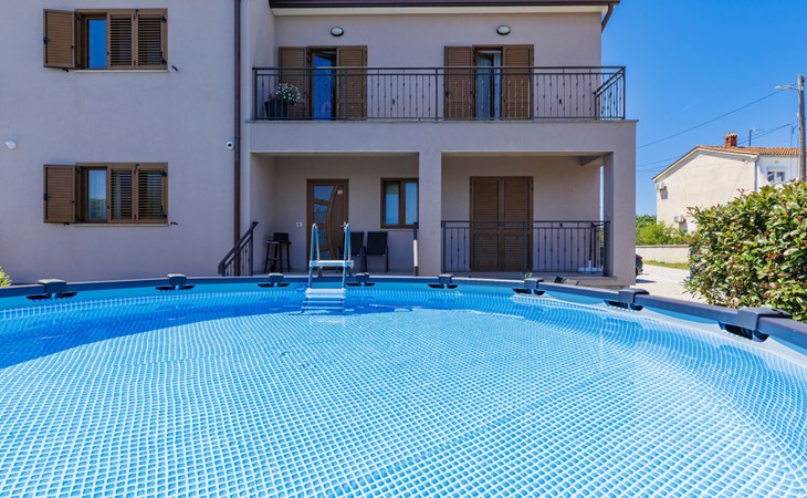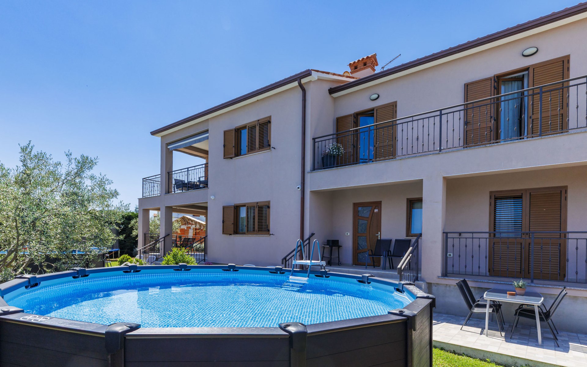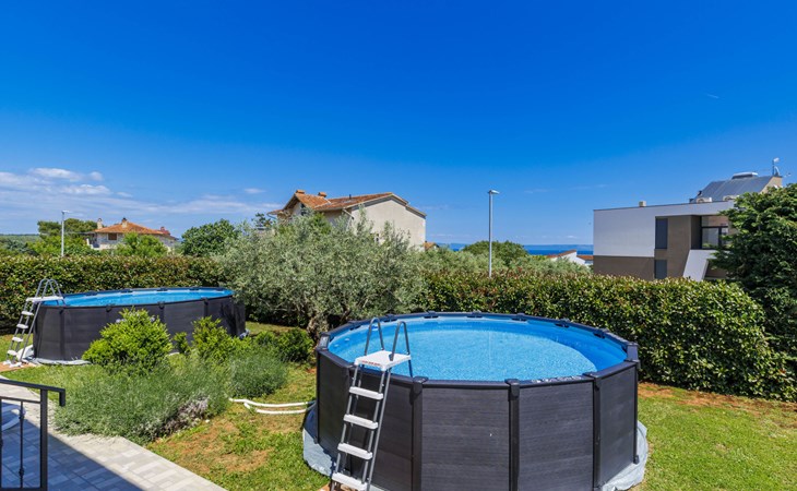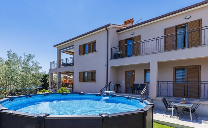 Ližnjan 2 km van Medulin: Huis met 3 woningen "Kika". 1 km van het centrum van Ližnjan, rustige, zonnige ligging, 1 km van zee, 1 km van het strand. Voor alleengebruik: terrein 200 m2 (omheind), tuin met gazon, openluchtzwembad (verhoogd) (5 m diameter, 125 cm diepte, seizoensgebonden beschikbaarheid: 27.Apr. - 12.Okt.). Barbecue, kinderspeelplaats (glijbaan), onderhoud zwembad door de eigenaar/tuinman. In het huis: internetaansluiting. Parkeerplaats bij het huis op het terrein. Winkel, restaurant 100 m, bushalte 1 km, zandstrand 2 km kiezelstrand 1 km, rotsstrand 1 km. Tennis 500 m, manege 2 km. Attracties in de buurt: Adrenalin park 5 km, Nature park Rt Kamenjak 10 km.
