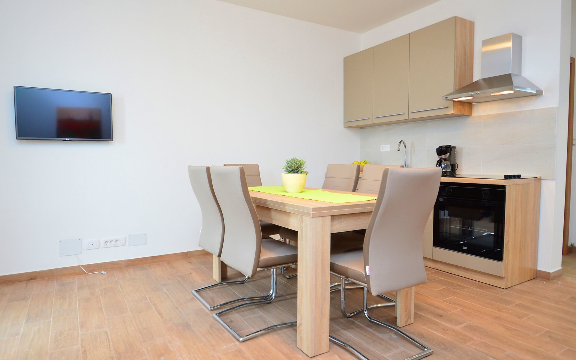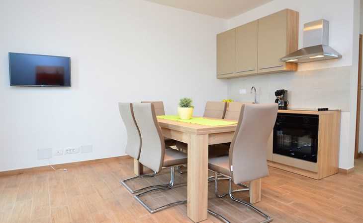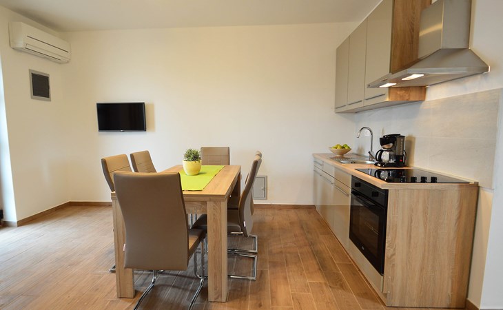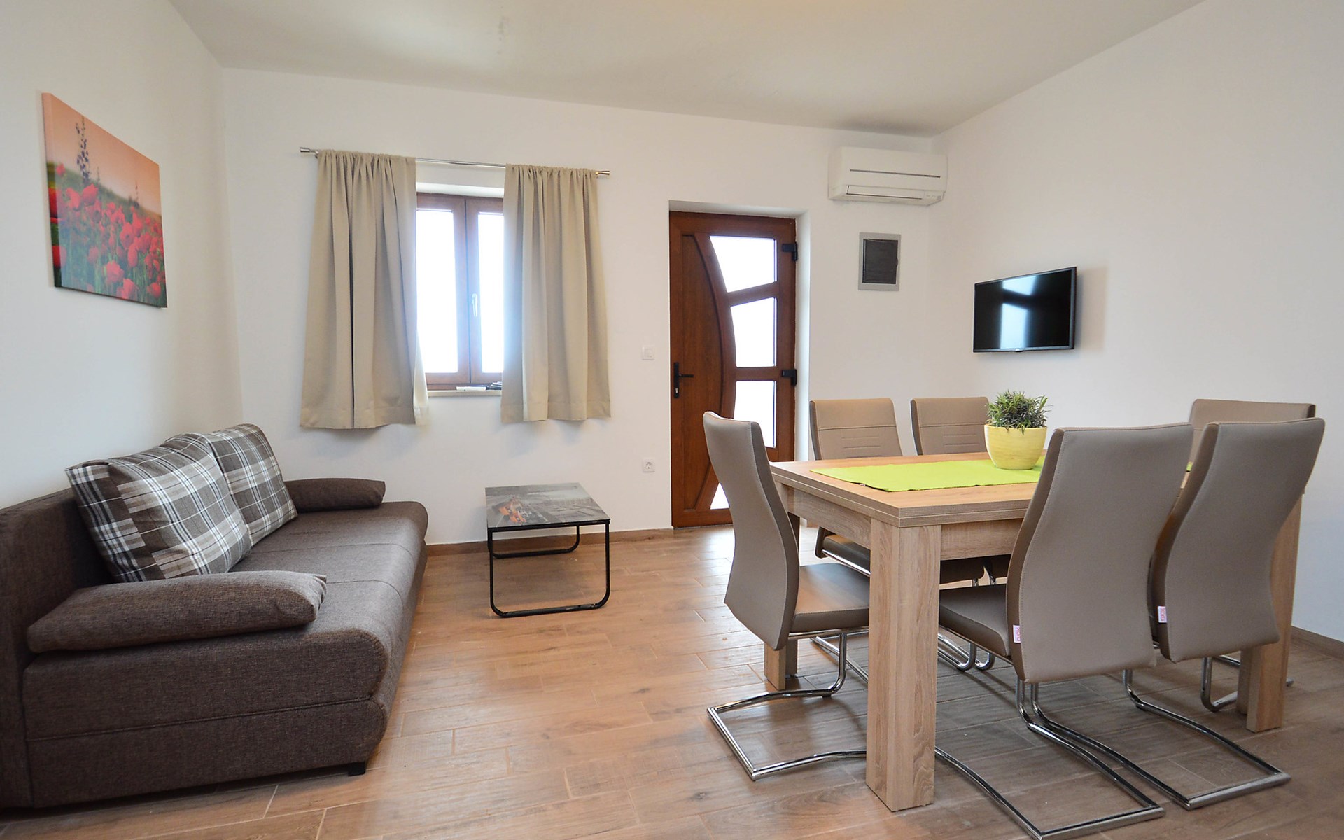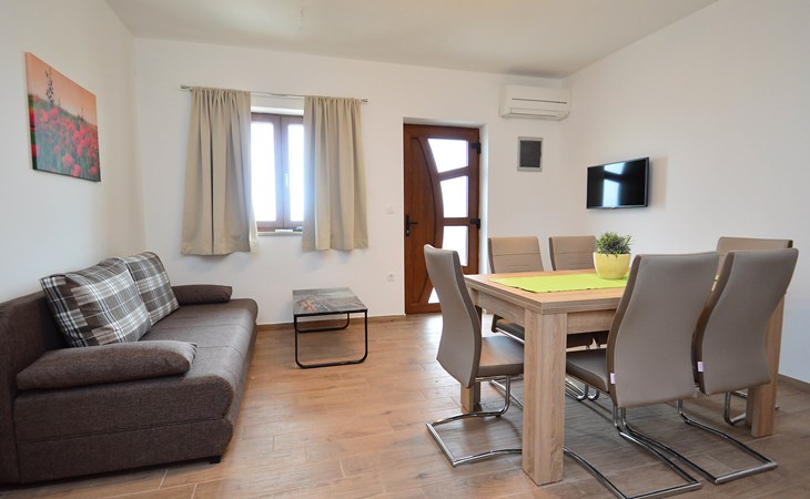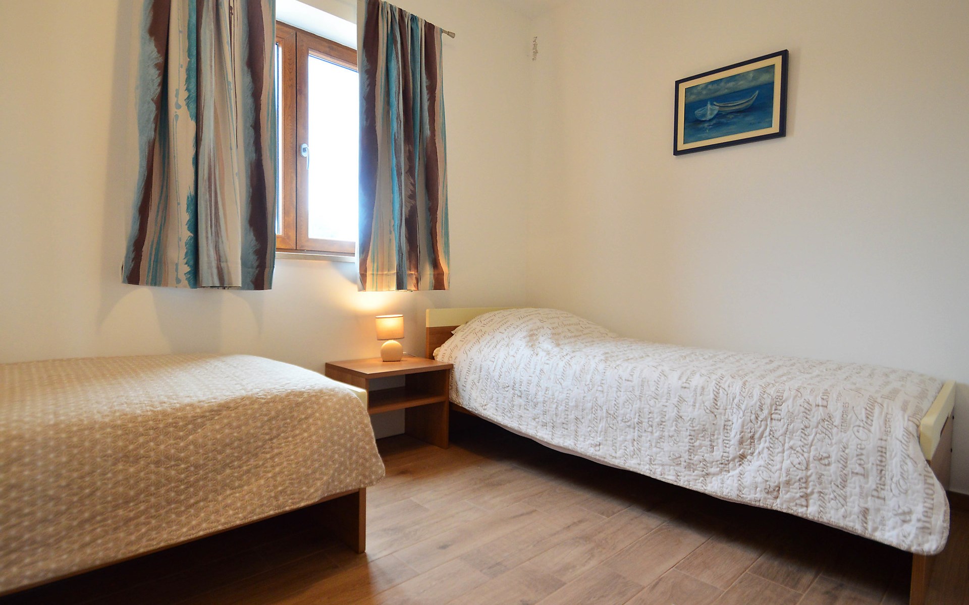 Ližnjan 2 km van Medulin: Huis met 3 woningen "Kika". 1 km van het centrum van Ližnjan, rustige, zonnige ligging, 1 km van zee, 1 km van het strand. Voor alleengebruik: terrein 200 m2 (omheind), tuin met gazon, openluchtzwembad (verhoogd) (5 m diameter, 125 cm diepte, seizoensgebonden beschikbaarheid: 27.Apr. - 12.Okt.). Barbecue, kinderspeelplaats (glijbaan), onderhoud zwembad door de eigenaar/tuinman. In het huis: internetaansluiting. Parkeerplaats bij het huis op het terrein. Winkel, restaurant 100 m, bushalte 1 km, zandstrand 2 km kiezelstrand 1 km, rotsstrand 1 km. Tennis 500 m, manege 2 km. Attracties in de buurt: Adrenalin park 5 km, Nature park Rt Kamenjak 10 km.