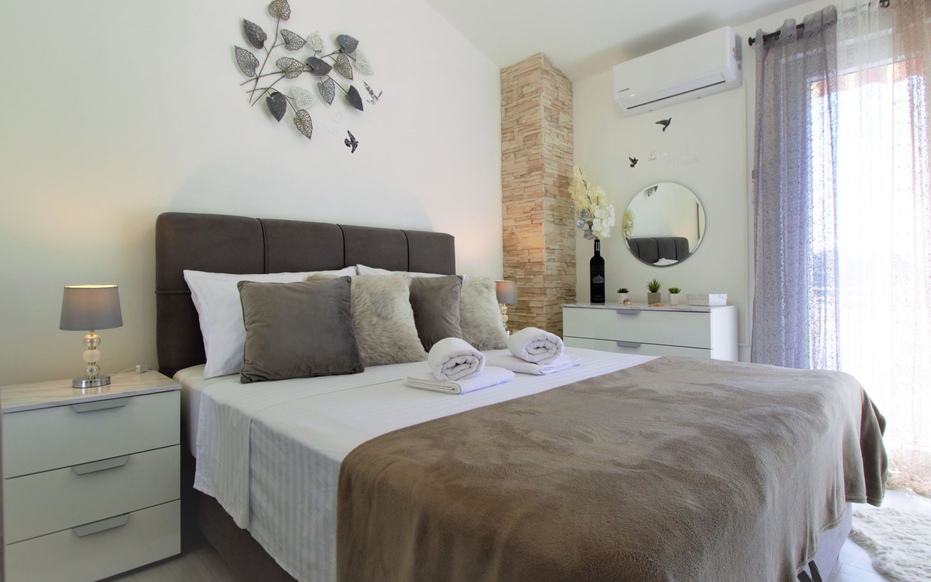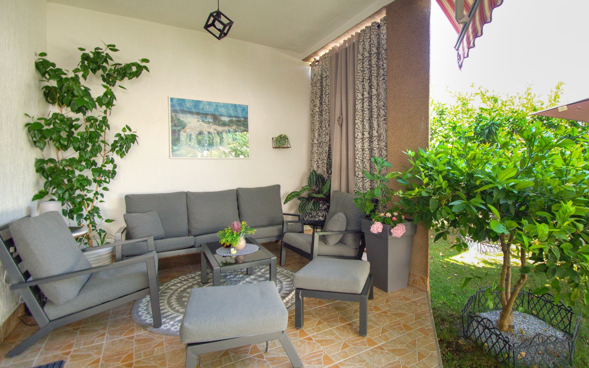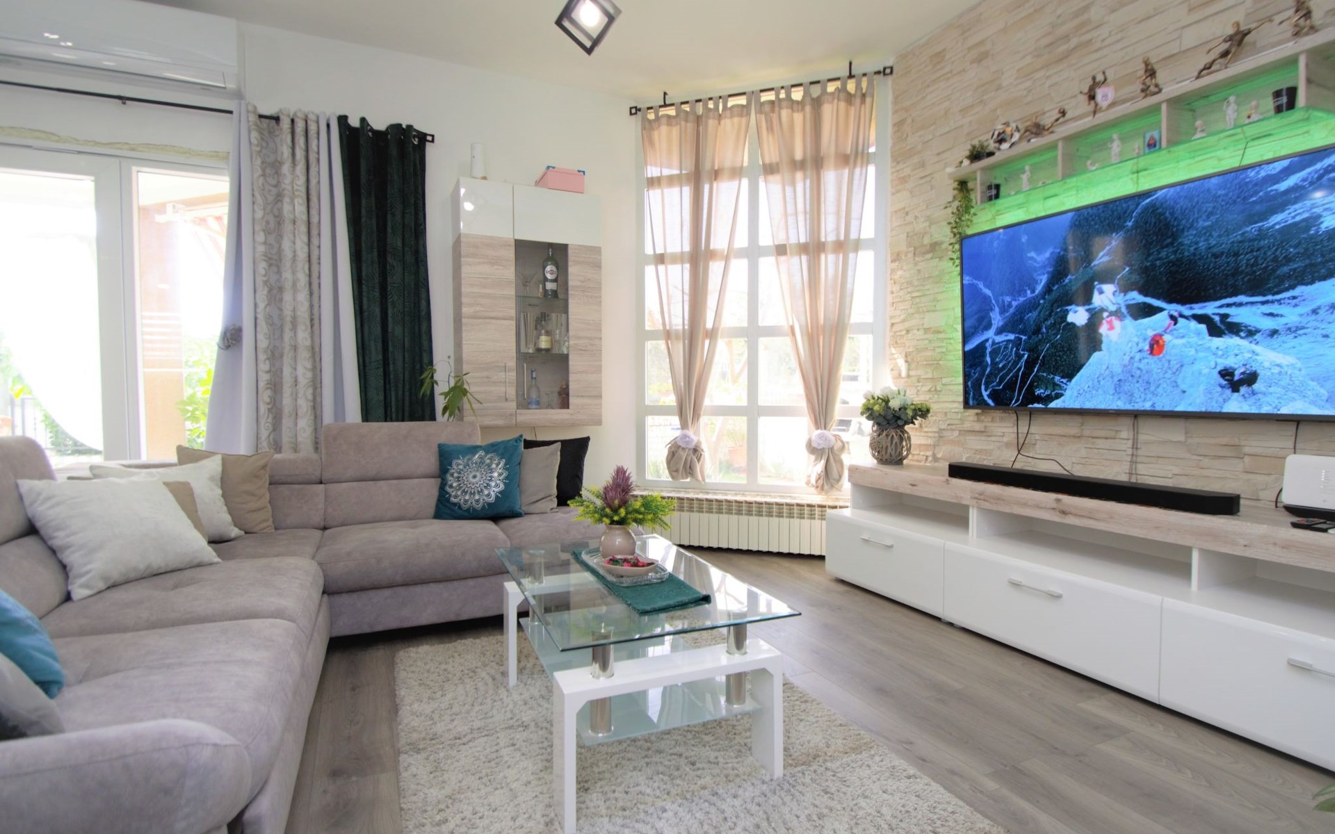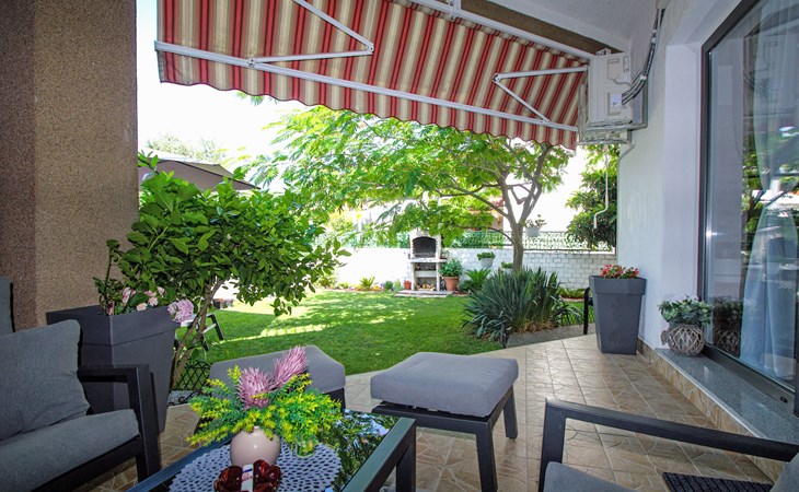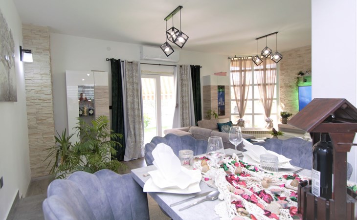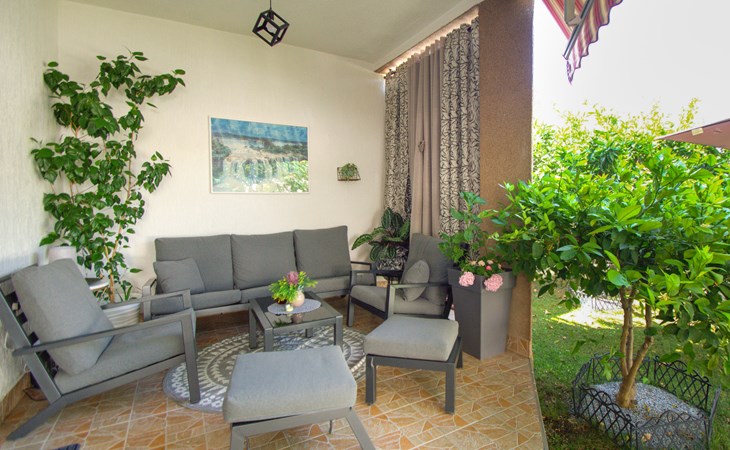 Twee onder één kap woning "Id&la", van 2 verdiepingen. Rustige, zonnige ligging, 300 m van zee, 300 m van het strand. Voor alleengebruik: terrein 243 m2 met gazon en bloemen. Terras (15 m2), tuinmeubelen, barbecue. In het huis: internetaansluiting, wasmachine. Parkeerplaats (voor 2 auto's) bij het huis op het terrein. Winkel 150 m, restaurant 300 m, bushalte 450 m, kiezelstrand 400 m, rotsstrand 300 m, strandbad 400 m, betonnen strand 300 m.
