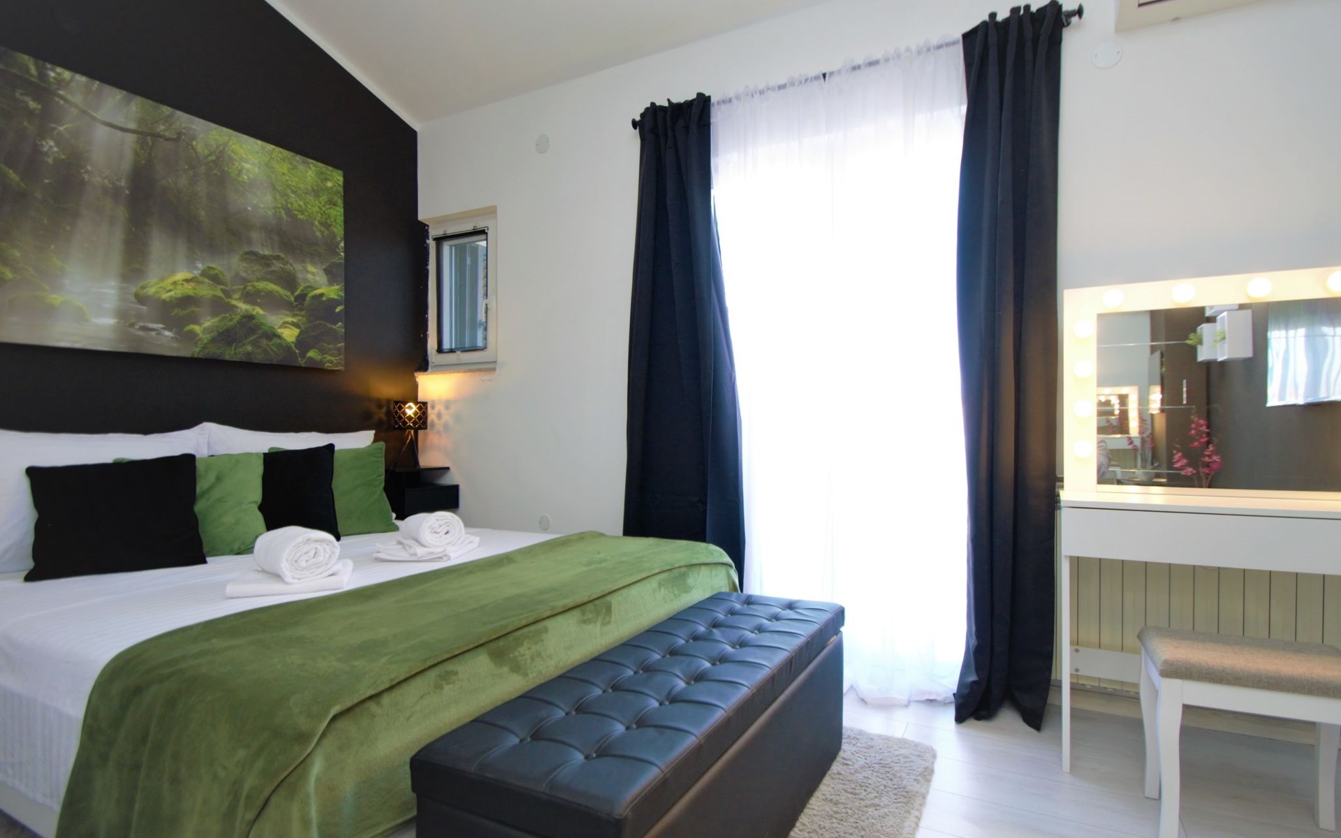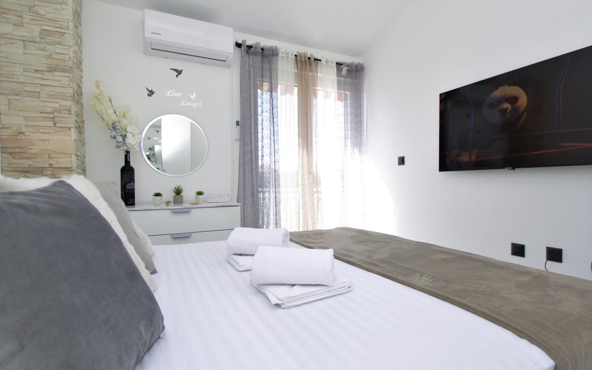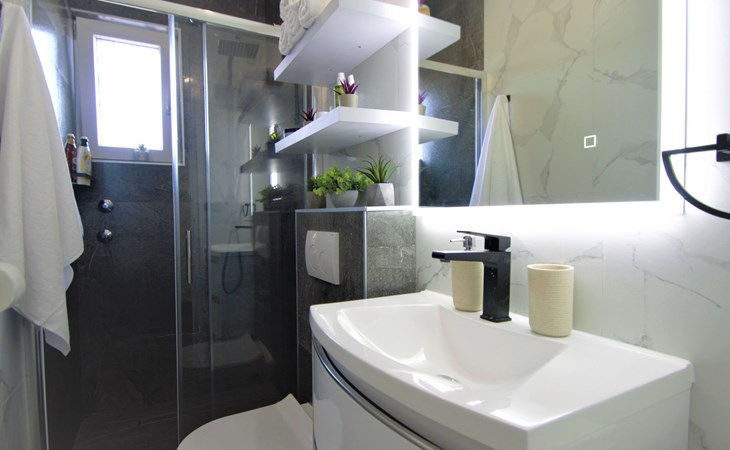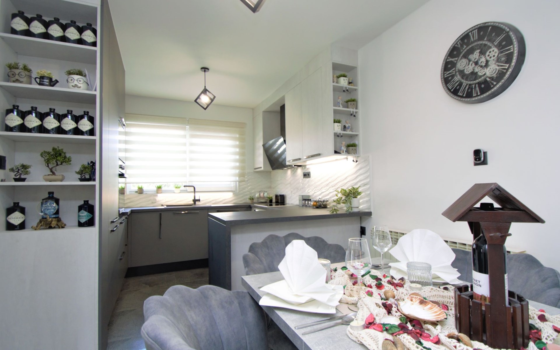 Twee onder één kap woning "Id&la", van 2 verdiepingen. Rustige, zonnige ligging, 300 m van zee, 300 m van het strand. Voor alleengebruik: terrein 243 m2 met gazon en bloemen. Terras (15 m2), tuinmeubelen, barbecue. In het huis: internetaansluiting, wasmachine. Parkeerplaats (voor 2 auto's) bij het huis op het terrein. Winkel 150 m, restaurant 300 m, bushalte 450 m, kiezelstrand 400 m, rotsstrand 300 m, strandbad 400 m, betonnen strand 300 m.