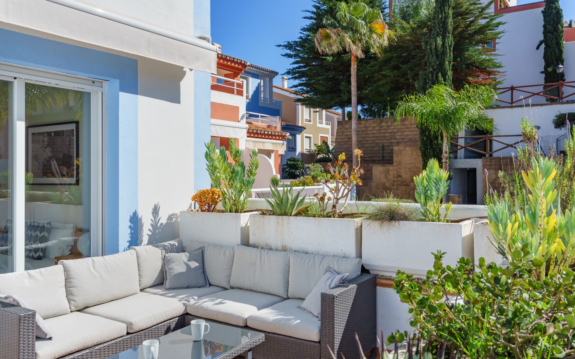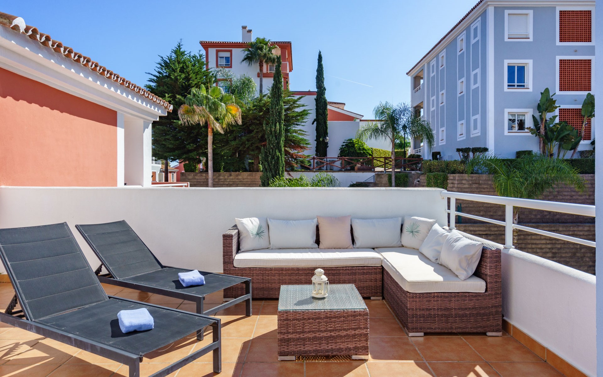 Zeer mooi, gezellig, zeer comfortabel vakantiecomplex "Cortijo del Mar", bouwjaar 2011, omgeven door bomen. 5 km van het centrum van San Pedro de Alcantara, 14 km van het centrum van Estepona, buiten de plaats, 16 km van het centrum van Marbella, in het district El Paraiso, rustige, zonnige ligging, gebied met weinig verkeer, 1.6 km van zee, 2.6 km van het strand. Voor medegebruik: tuin met gazon, wilde tuin, ligweide, openluchtzwembad niervormig (43 x 23 m, 100 - 210 cm diepte, seizoensgebonden beschikbaarheid: 01.Apr. - 15.Okt. openingstijden zwembad: 11:00-18:00 en 11:00-20:00). Douche/WC bij het zwembad, kinderzwembad, buitendouche. Winkel, supermarkt, restaurant 500 m, bushalte "El Pilar" 800 m, zandstrand "Playa Salduna" 2.6 km. Jachthaven 9 km, jachthaven 9 km, golfterrein (18 holes) 2.4 km. De eigenaar accepteert geen jeugdgroepen. Bewaakt vakantiecomplex. Vergelijkbare accommodaties kunnen worden geboekt.