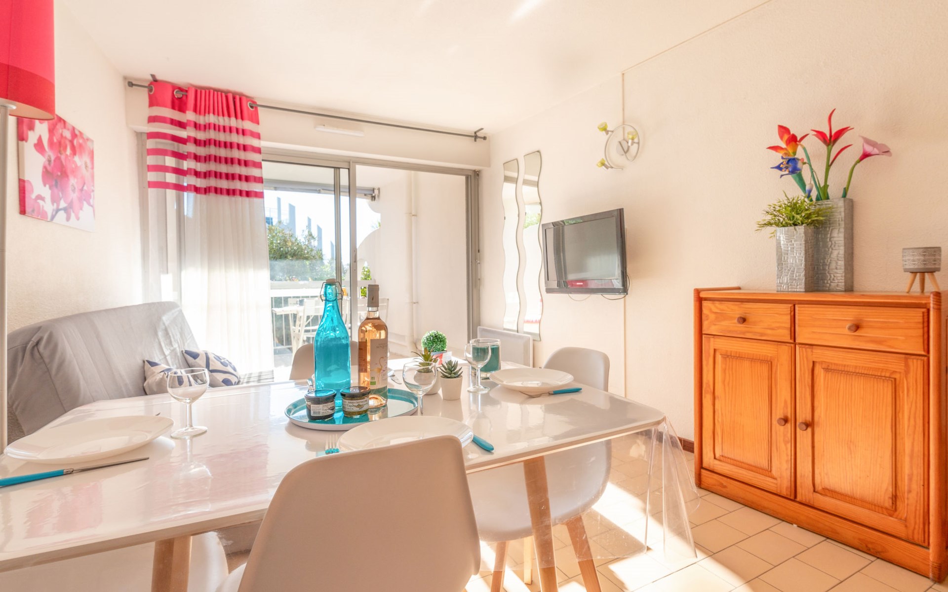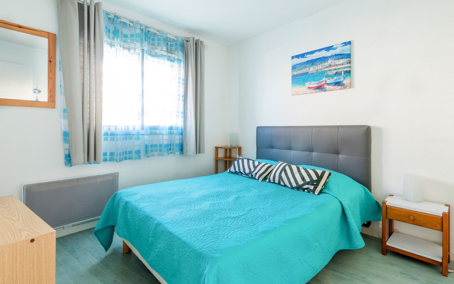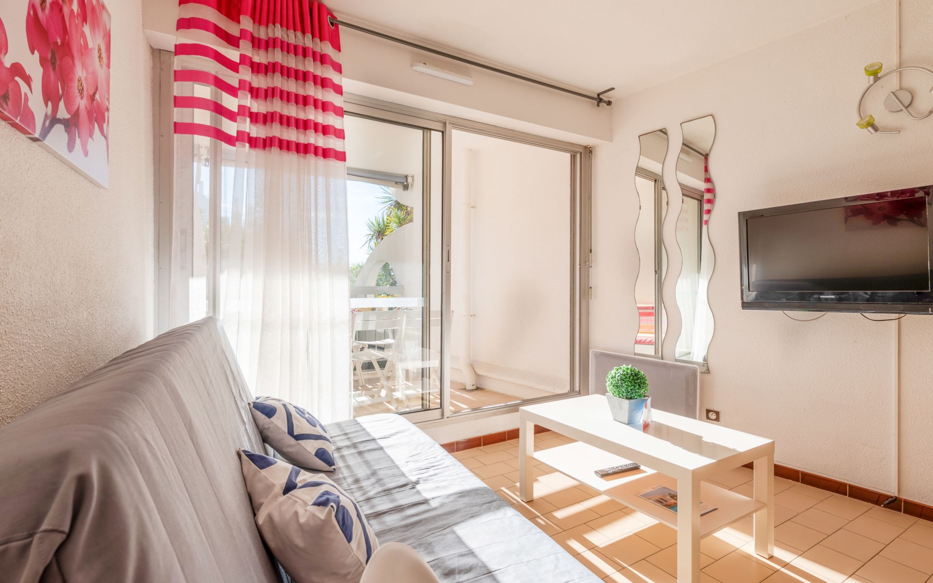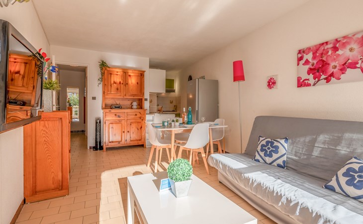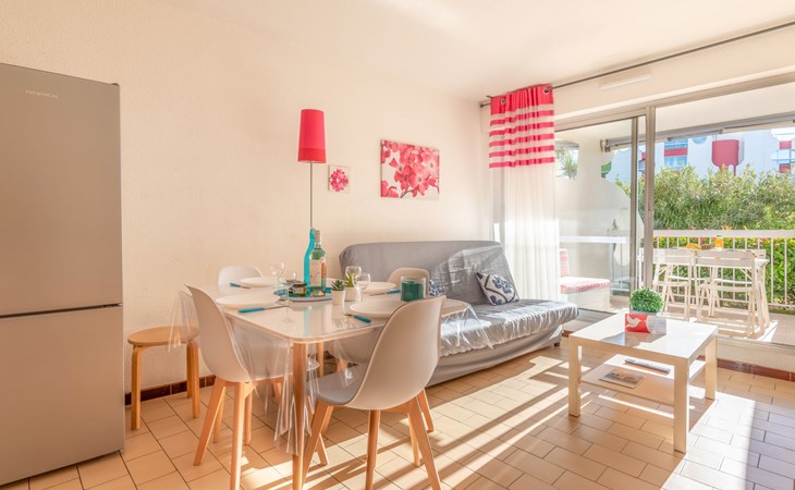 Mooi residentie "Ipanema". In de wijk La Motte du Couchant, 2 km van het centrum, 50 m van zee, directe toegang tot het strand. Bloemen en bomen, openbare parkeerplaatsen. Winkelcentrum 400 m, restaurant, bushalte 300 m, station "Montpellier" 25 km, zandstrand 50 m, overdekt zwembad 3 km, thermaalbad "thalasso SPA" 3 km. Jachthaven 1.3 km, golfterrein (18 holes) 3.6 km, zeilschool 1 km, tennis 3.3 km, manege 1.4 km. Attracties in de buurt: Les Remparts d'Aigues Mortes 12 km, Les Saintes Maries de la Mer 40 km. Vliegveld in de buurt 20 km van het huis.