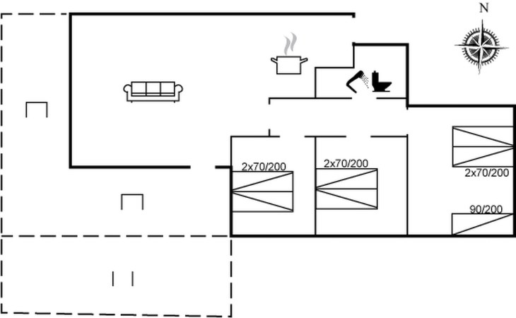 Eengezinswoning, bouwjaar 1974. 1.5 km van zee. Voor alleengebruik: wild terrein 1.697 m2. Terras (18 m2). In het huis: wasmachine. Parkeerplaats bij het huis. Levensmiddelenwinkel 500 m.