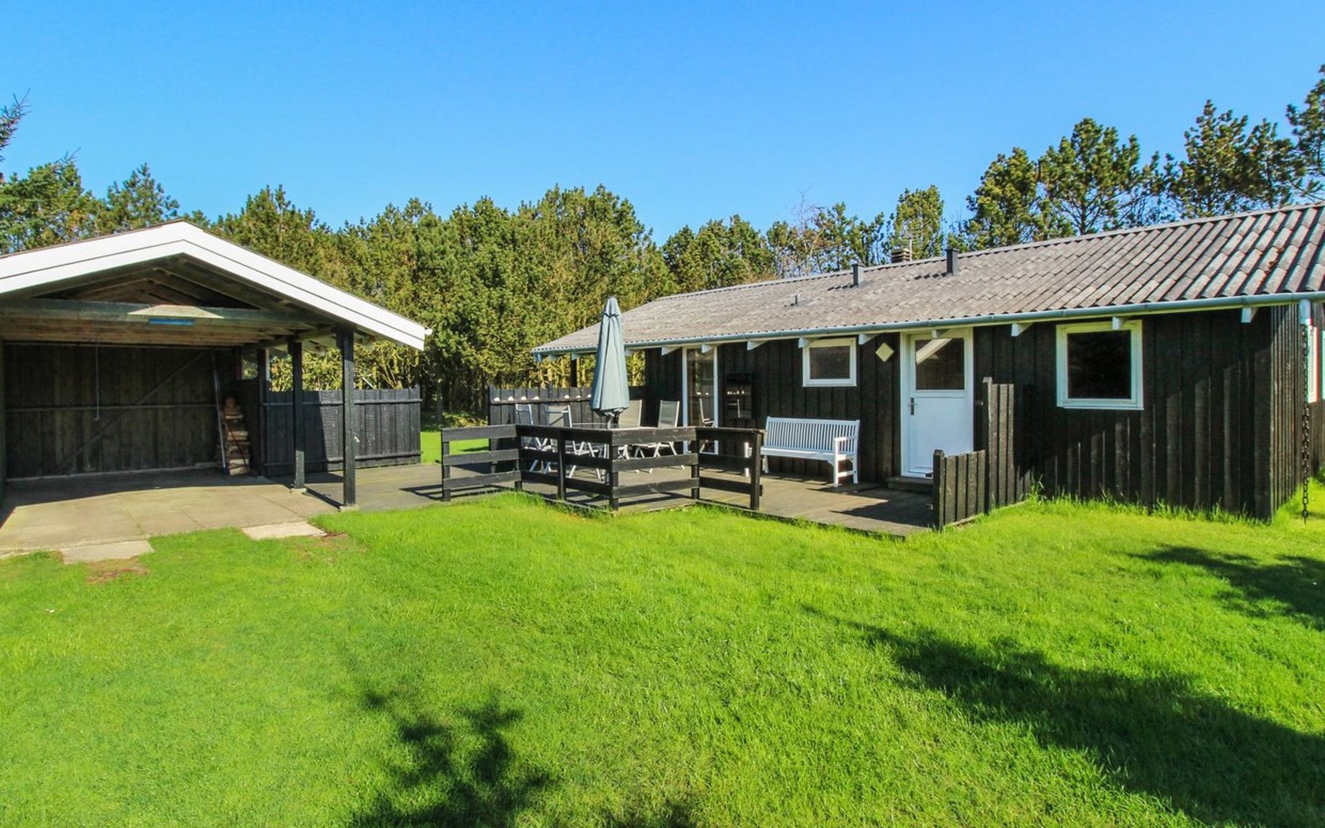 Eengezinswoning, bouwjaar 1981. 500 m van zee. Voor alleengebruik: wild terrein 1.250 m2. Terras (20 m2). Carport. Levensmiddelenwinkel 1.2 km. De eigenaar accepteert geen jeugdgroepen.