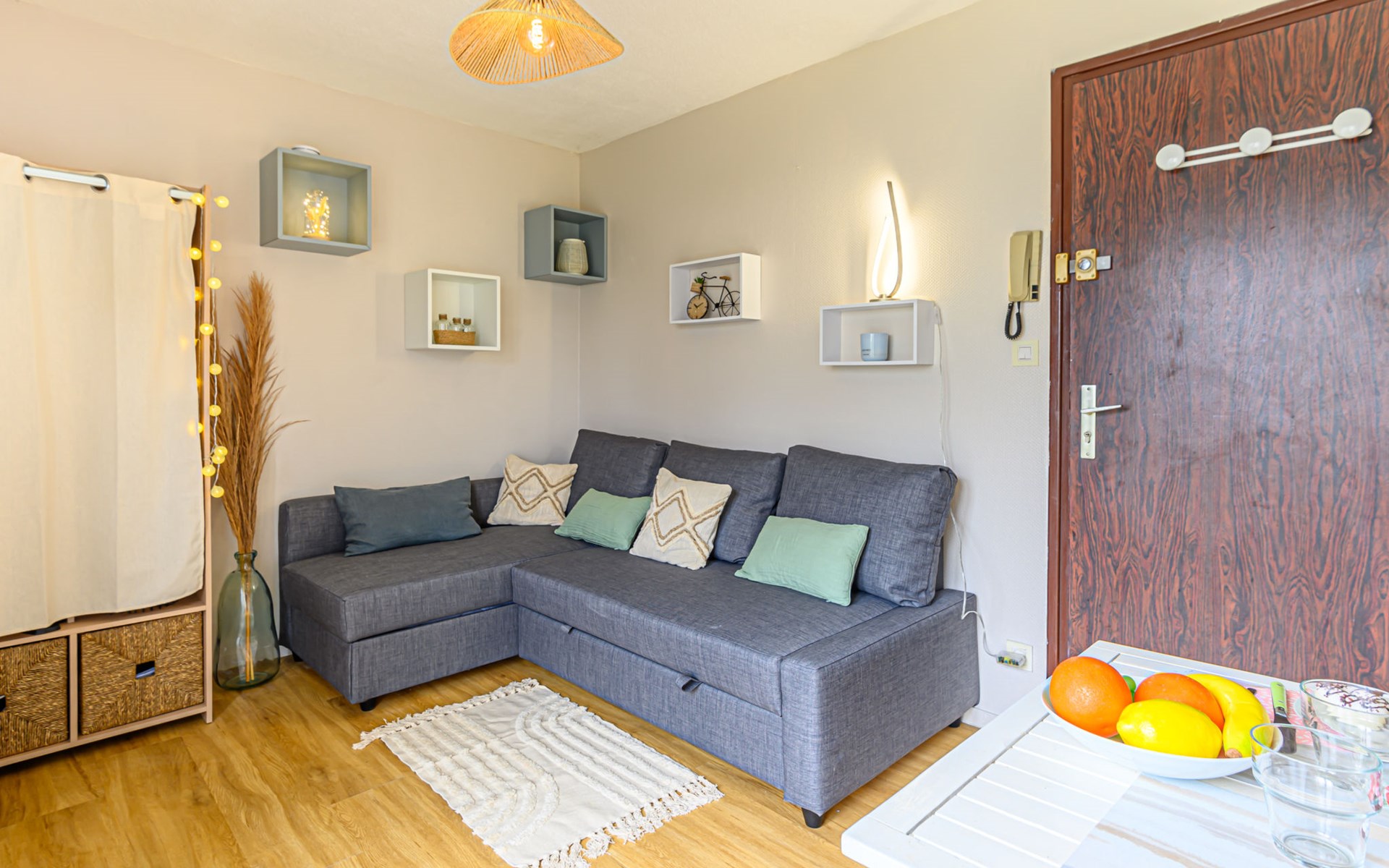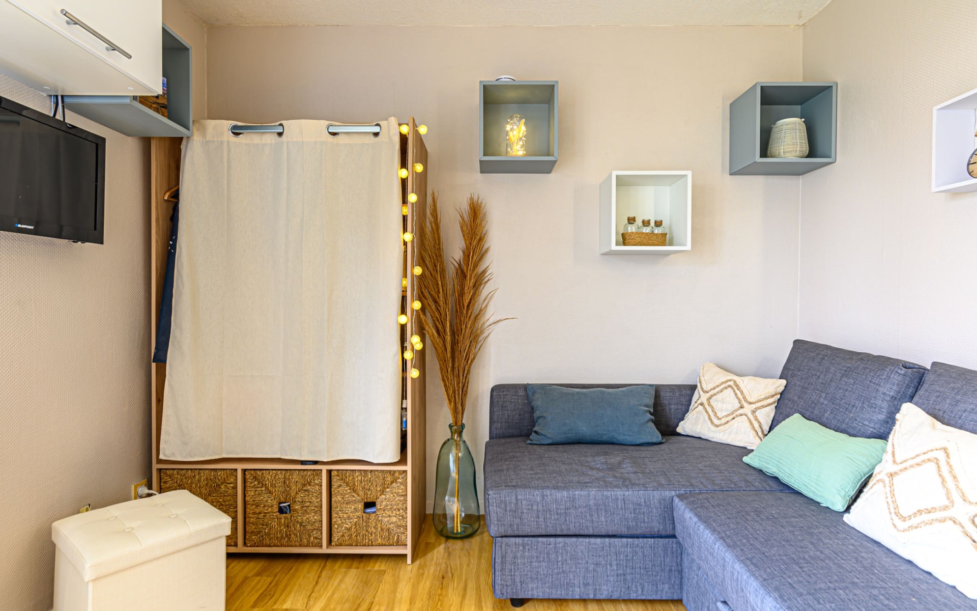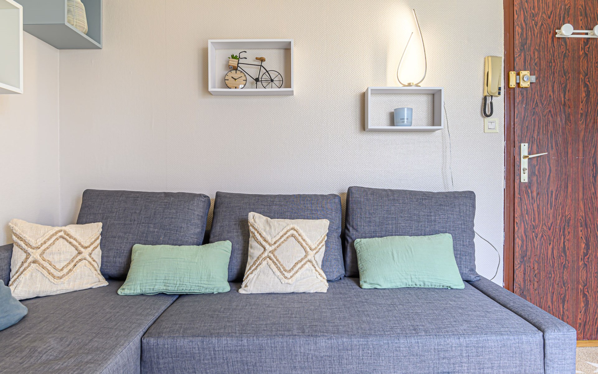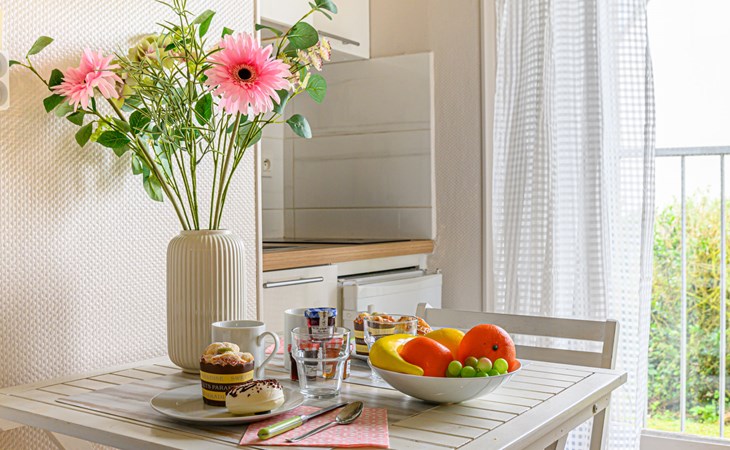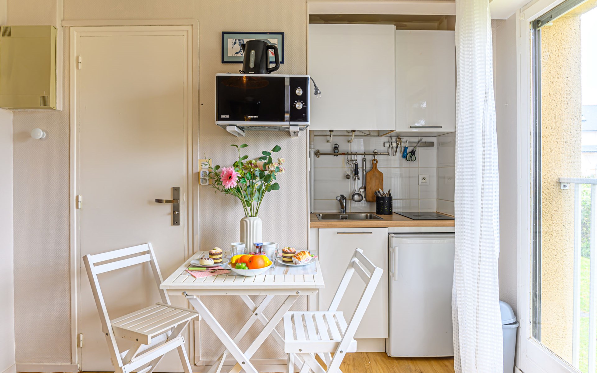 Flatgebouw "Rose des Vents". In de plaats, 1.5 km van het centrum, 500 m van zee, op het zuidoosten. Openbare parkeerplaatsen in de straat. Levensmiddelenwinkel 1.5 km, restaurant 1.5 km, station 1.5 km, thermaalbad "thalasso" 200 m. Jachthaven 1.8 km, golfterrein (9 holes) 1 km, tennis 100 m. Attracties in de buurt: Alignements de Carnac 21 km, La Trinité-sur-Mer 30 km, Vannes 47 km. De sleuteloverdracht vindt plaats bij het agentschap Interhome in Quiberon, 1 km.
