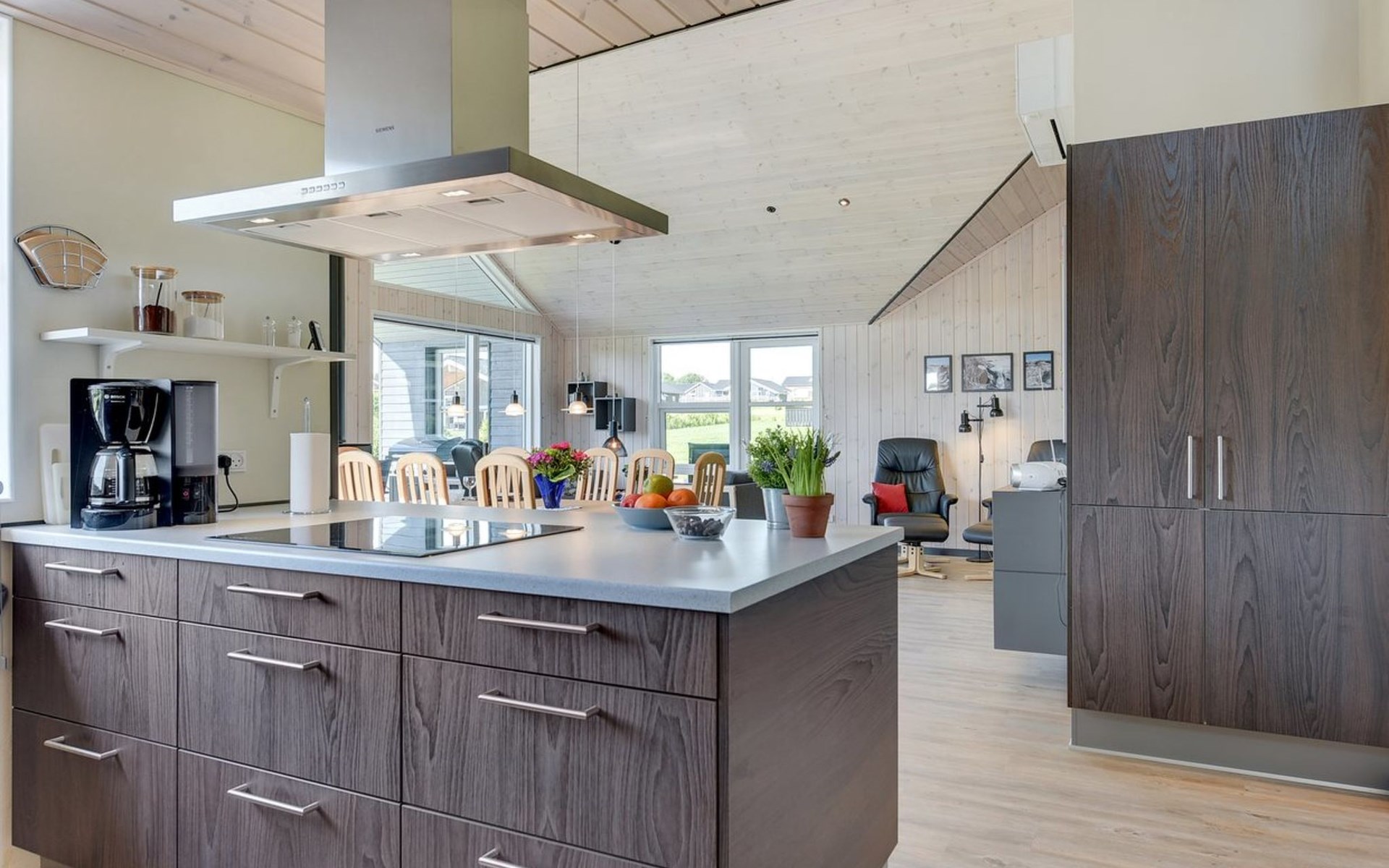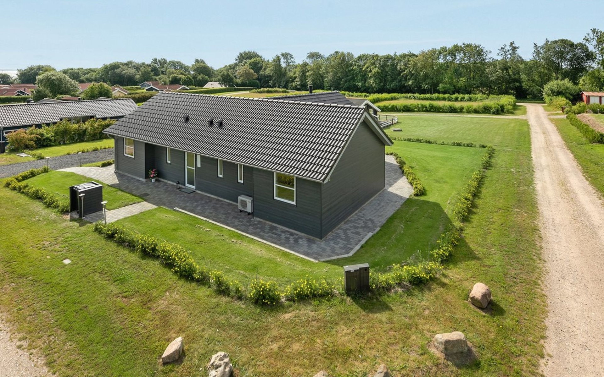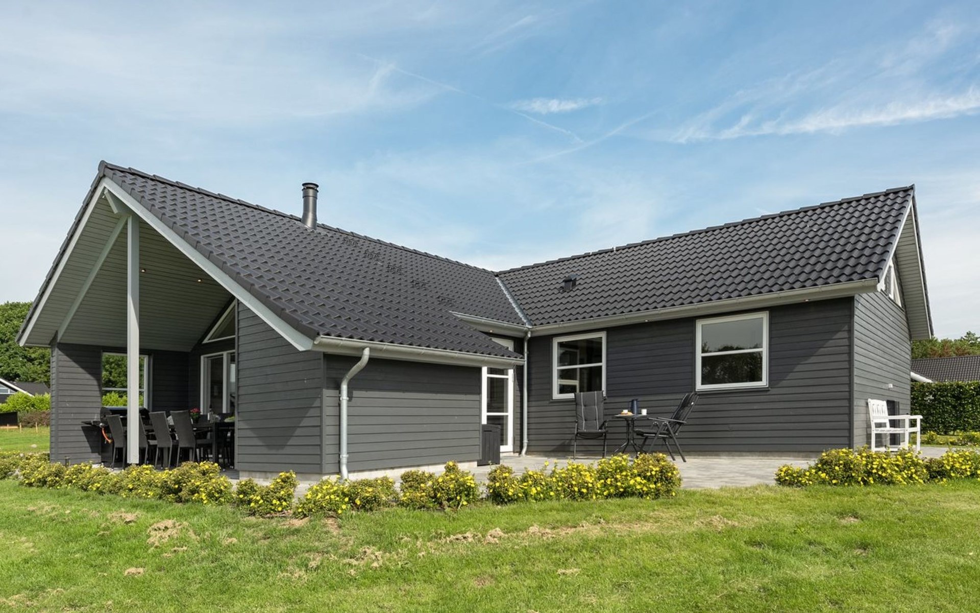 Eengezinswoning, bouwjaar 2019. 500 m van zee. Voor alleengebruik: terrein 1.069 m2, verzorgde tuin. Terras (140 m2), barbecue, kinderspeelplaats (glijbaan, schommel). In het huis: sauna, wasmachine, droger. Parkeerplaats bij het huis. Levensmiddelenwinkel 5 km. De eigenaar accepteert geen jeugdgroepen.