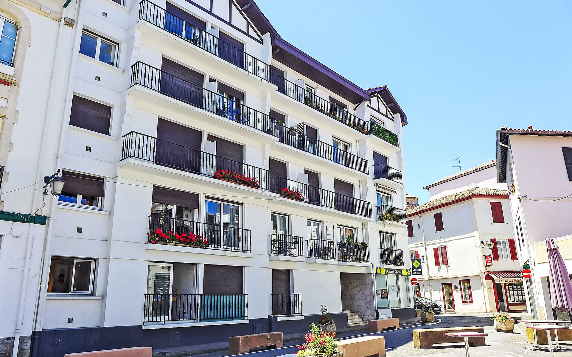 Residentie "Résidence de France". Centrale, drukke ligging, 200 m van zee, 200 m van het strand. Winkel, levensmiddelenwinkel 100 m, winkelcentrum 1.5 km, restaurant 50 m, bakkerij 50 m, café 100 m, voetgangersgebied 50 m, fietsverhuur 300 m, centrum te voet bereikbaar in 1 minuten, station 400 m, zandstrand "St Jean de Luz" 200 m, thermaalbad "Thalazur" 400 m. Jachthaven 200 m. Attracties in de buurt: Marché Halles de St Jean de Luz 100 m. De sleuteloverdracht vindt plaats bij het agentschap Interhome à 16h, à 1 km.