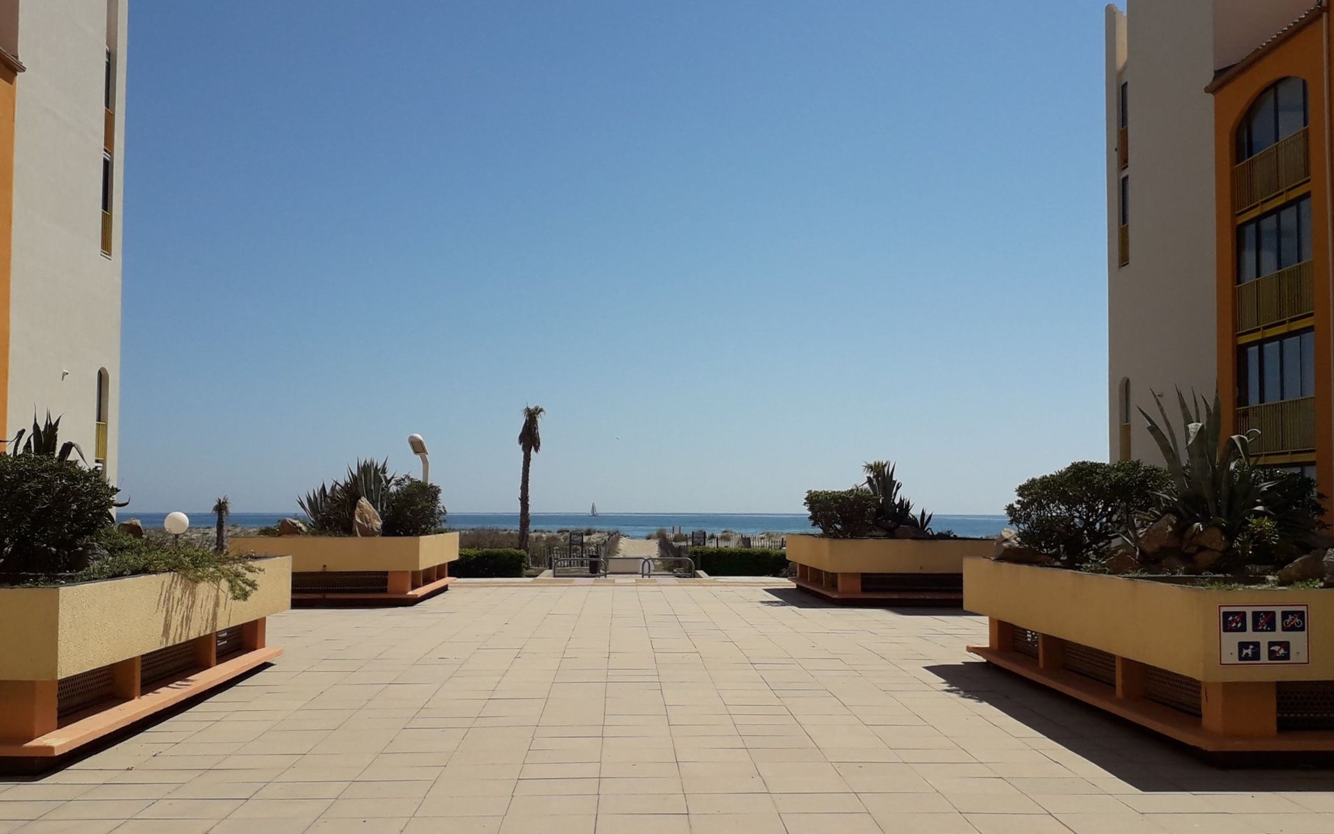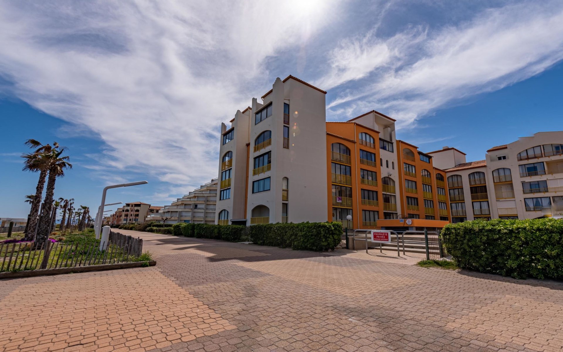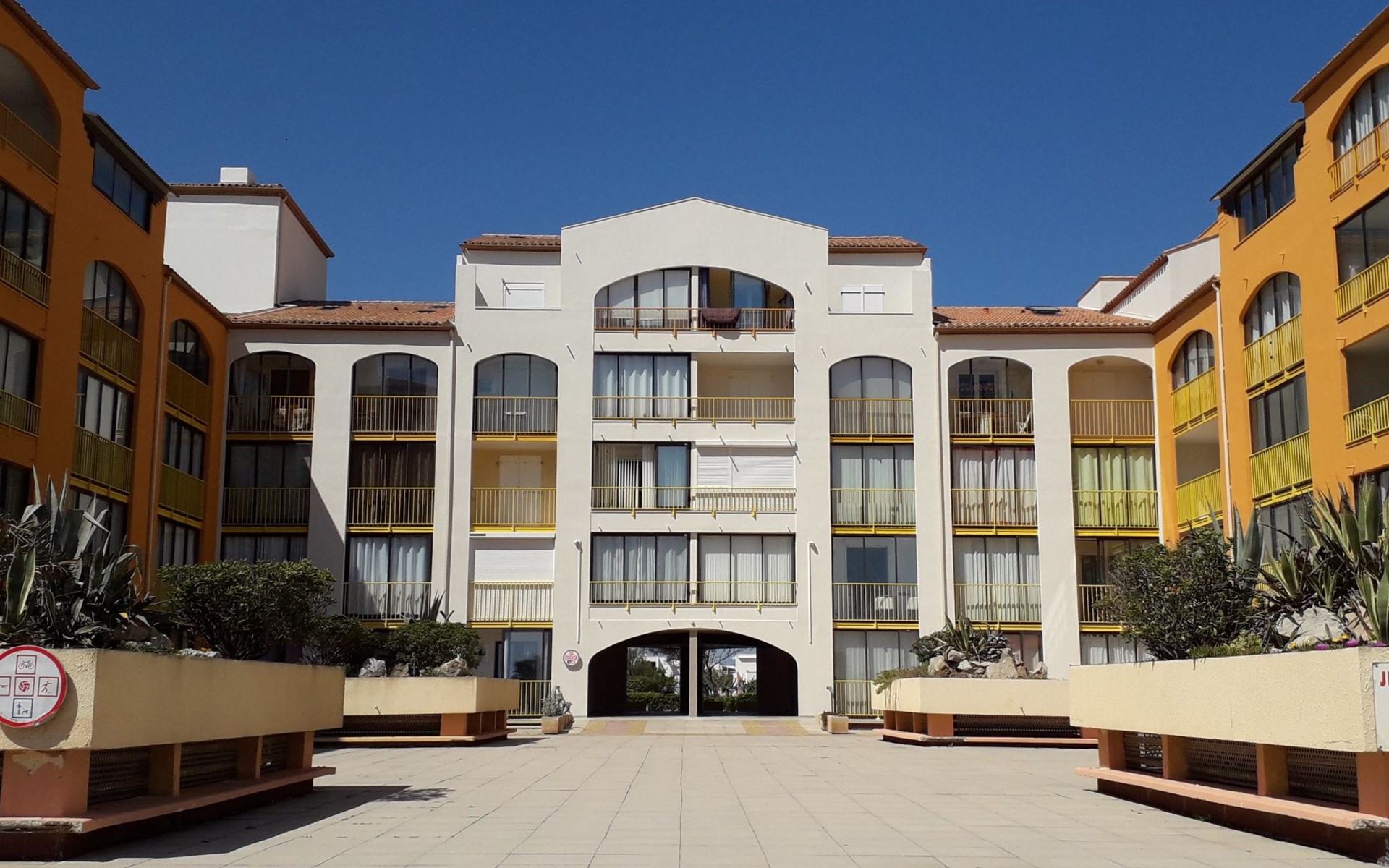 Residentie "Palm Beach", van 3 verdiepingen. 300 appartementen in de woning. In de wijk La Grande Plage, 100 m van zee, 100 m van het strand. Openbare parkeerplaatsen 150 m. Winkel, levensmiddelenwinkel, winkelcentrum, restaurant, bar, café, fietsverhuur 150 m, bushalte "Les Marines" 650 m, station "de la Franqui" 15 km. Jachthaven 4 km. Attracties in de buurt: Aqualand Port Leucate 2 km, Réserve Africaine de Sigean 41 km, site des dosses 4 km, téléski nautique 5 km. Bekende meren kunnen gemakkelijk worden bereikt: Etang de Leucate ou salses 8 km, Lac de Villeneuve de la Raho 28 km. Wandelgebied Sentier du guetteur 8 km, la forteresse de salses 15 km, Sentier du littoral Collioure 40 km. Vergelijkbare accommodaties kunnen worden geboekt.