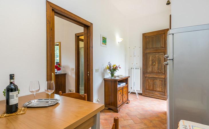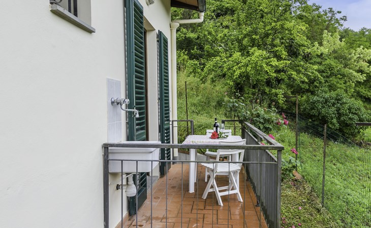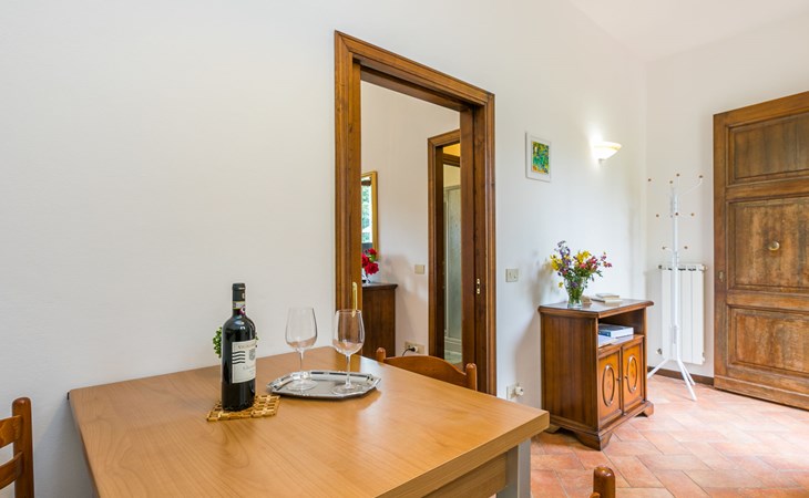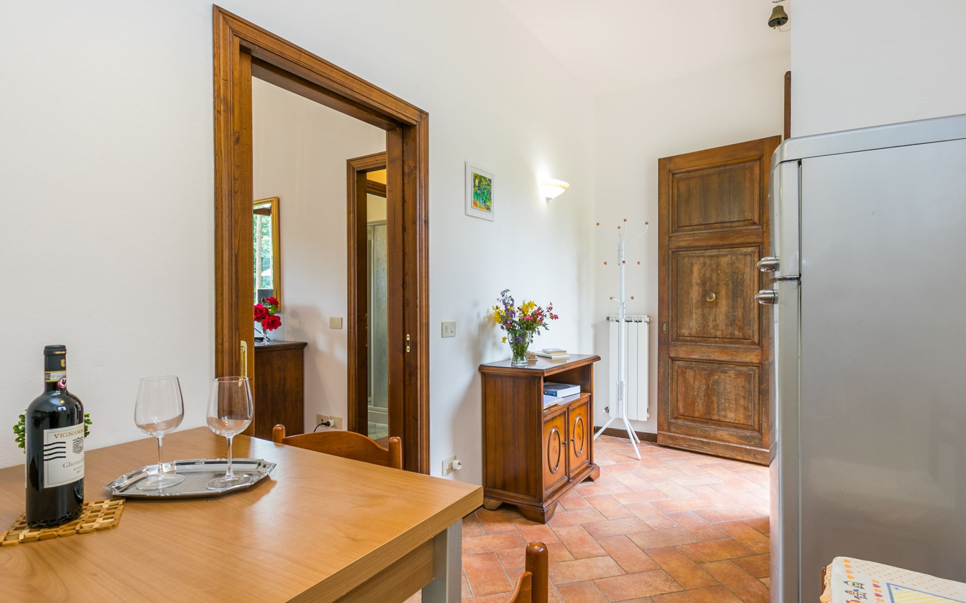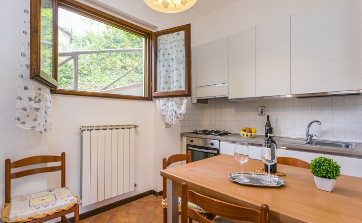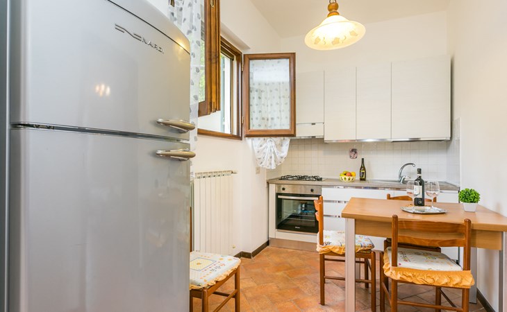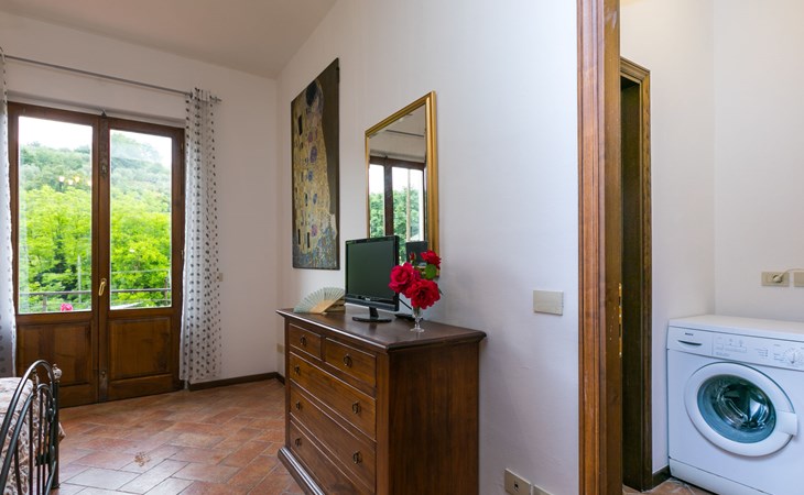 Greve in Chianti: Klein Huis met 2 woningen "La Casina di Luca", omgeven door bomen en weiden. Aan de rand van de plaats, 150 m van het centrum van Greve in Chianti, rustige ligging tegen een helling, te midden van groen. Voor alleengebruik: kleine tuin op verschillende niveaus (omheind), openbare parkeerplaatsen in de straat. Winkel 200 m, levensmiddelenwinkel, supermarkt 600 m, restaurant 200 m, bar, bakkerij 200 m, café, voetgangersgebied, fietsverhuur 500 m, centrum te voet bereikbaar in 3 minuten, bushalte 400 m, openluchtzwembad 2 km. Tennis 2 km. Attracties in de buurt: Firenze 29 km, Radda in Chianti 19 km, Gaiole in Chianti 30 km, Siena 45 km. Baby uitrusting (incl.). Laden en lossen van de baggage is mogelijk bij het huis.