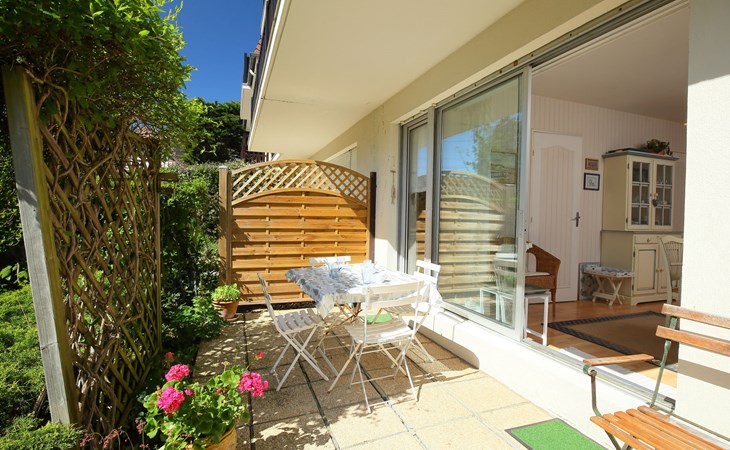 Residentie "Jardins du Casino". In het centrum van Cabourg, in de plaats, 100 m van zee, 100 m van het strand. In het complex: lift. Openbare parkeerplaatsen in de straat. Winkel 150 m, supermarkt 1.7 km, restaurant 150 m, bushalte "Hôtel de Ville" 900 m, overdekt zwembad 150 m, thermaalbad "Thalazur" 900 m. Golfterrein (9 holes) 1.8 km.