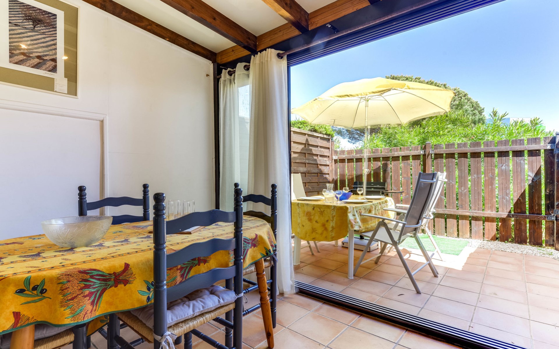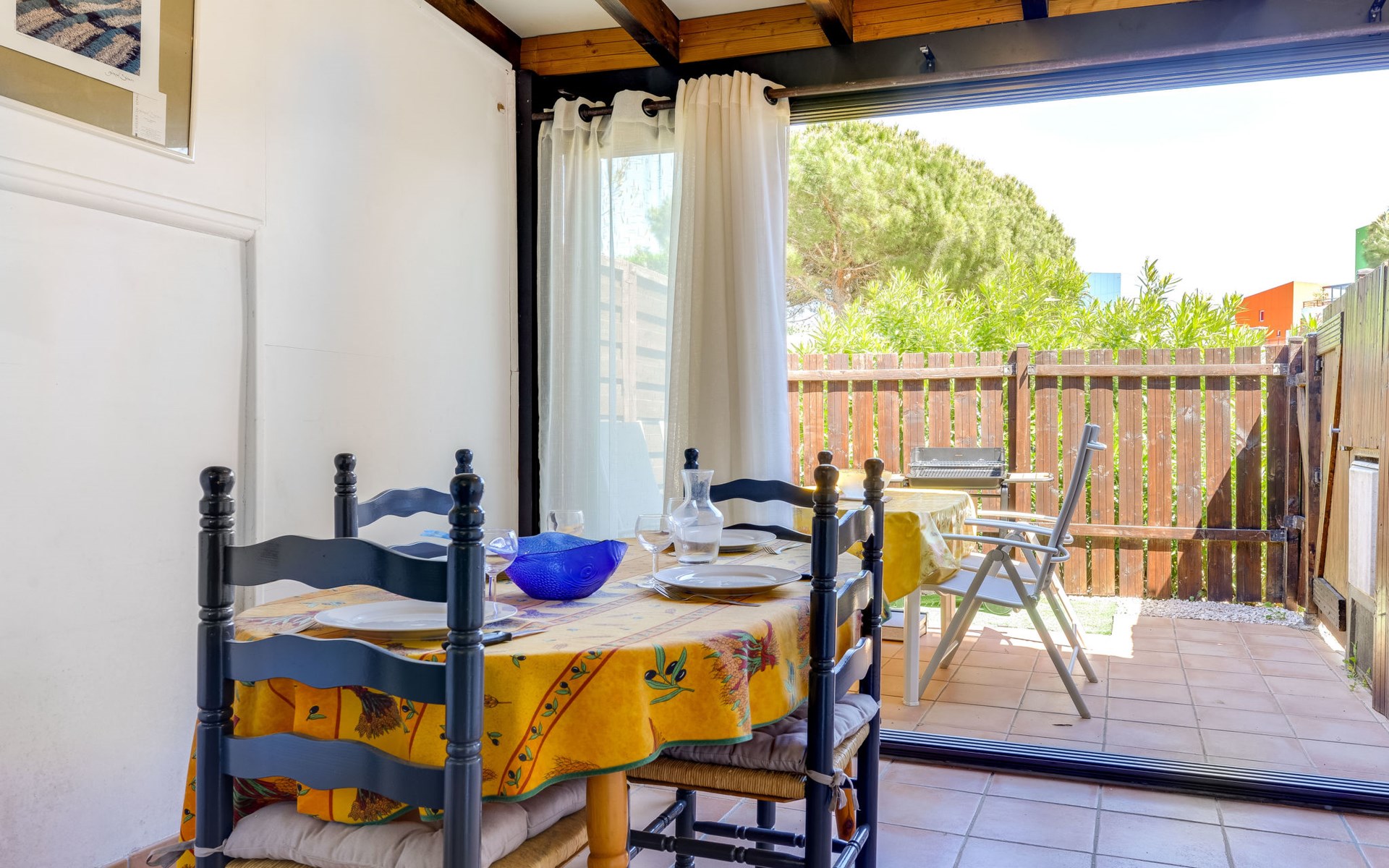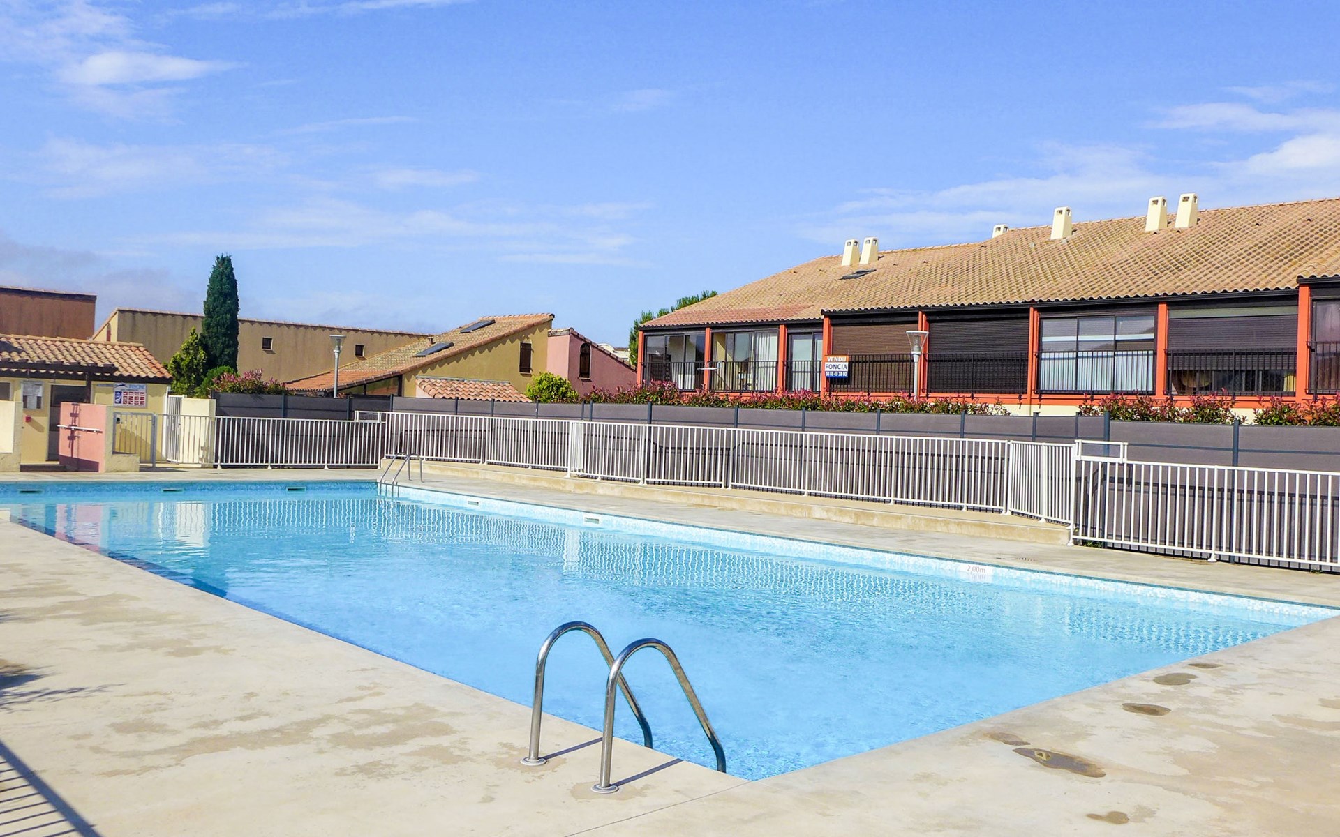 Residentie "Les Amandines". In de plaats, 1 km van het centrum, 2 km van zee. Voor medegebruik: openluchtzwembad (9 x 19 m, 100 - 200 cm diepte, seizoensgebonden beschikbaarheid: 01.Jun. - 30.Sep.). Parkeerplaats. Winkel 100 m, supermarkt 500 m, restaurant, bar 100 m, bushalte 50 m, zandstrand "du Grazel", strandbad 200 m. Tennis 800 m. Attracties in de buurt: Réserve Africaine de Sigean 29 km. De sleuteloverdracht vindt plaats bij het agentschap Interhome in Narbonne Plage, 10 km. De afgebeelde foto is slechts een voorbeeld.