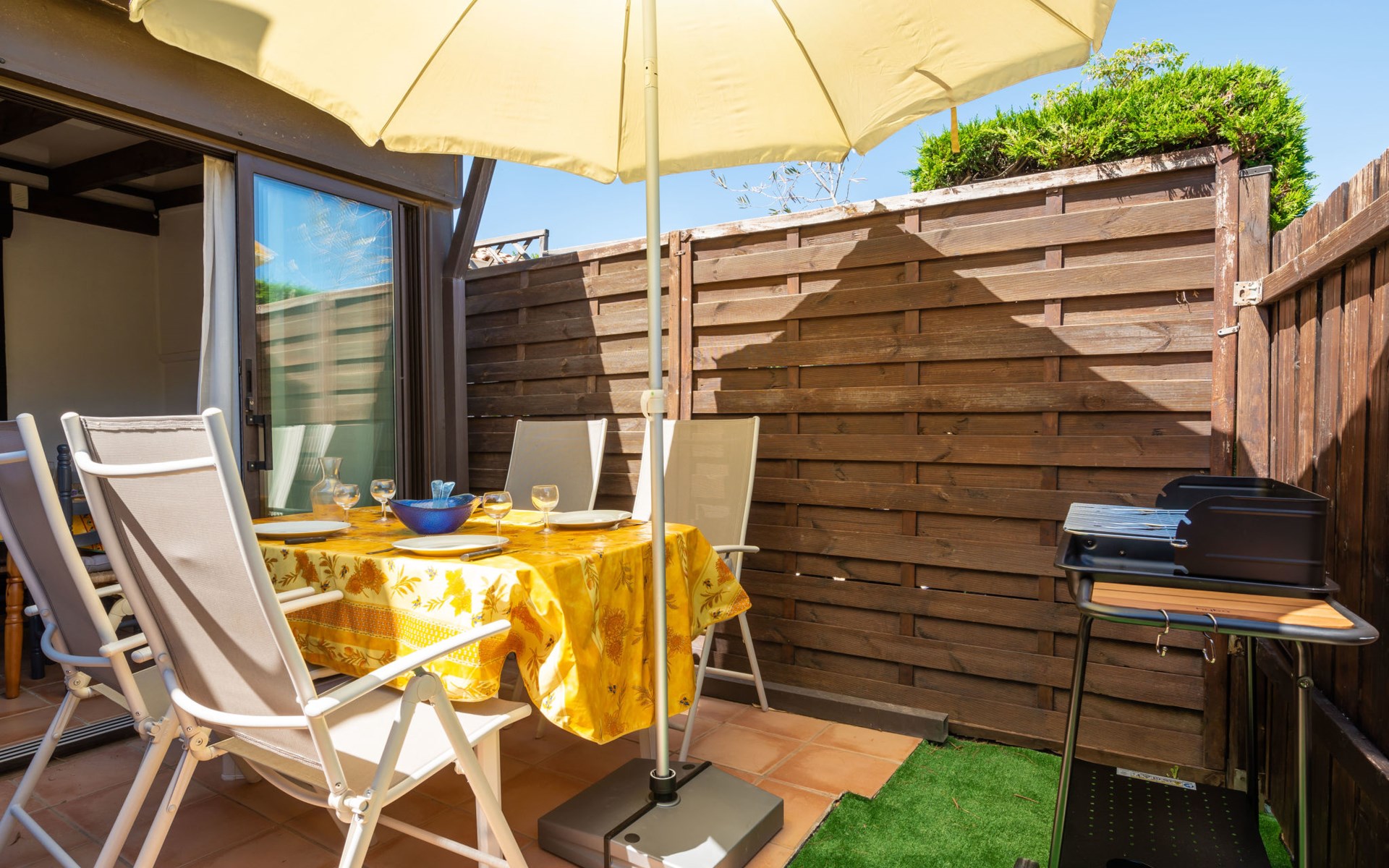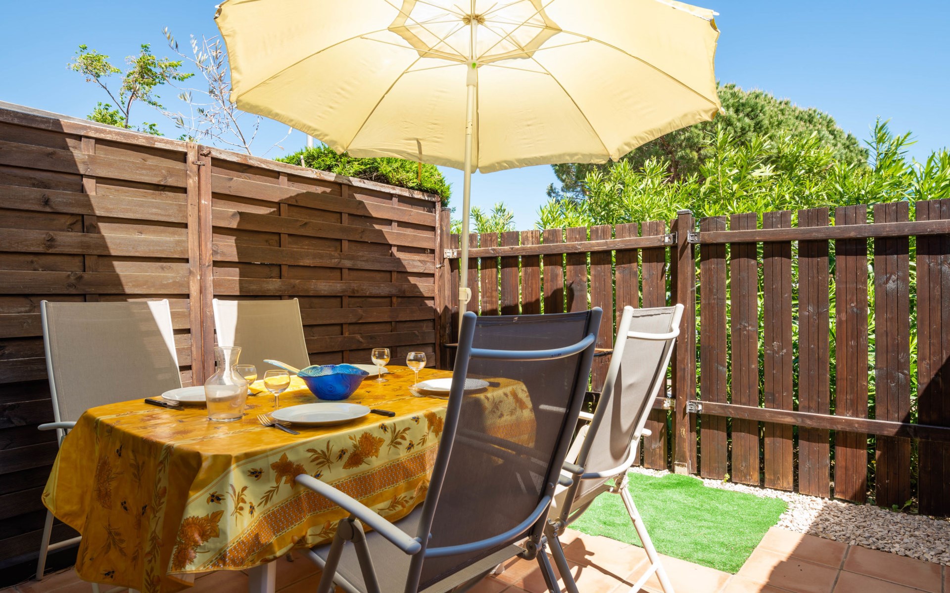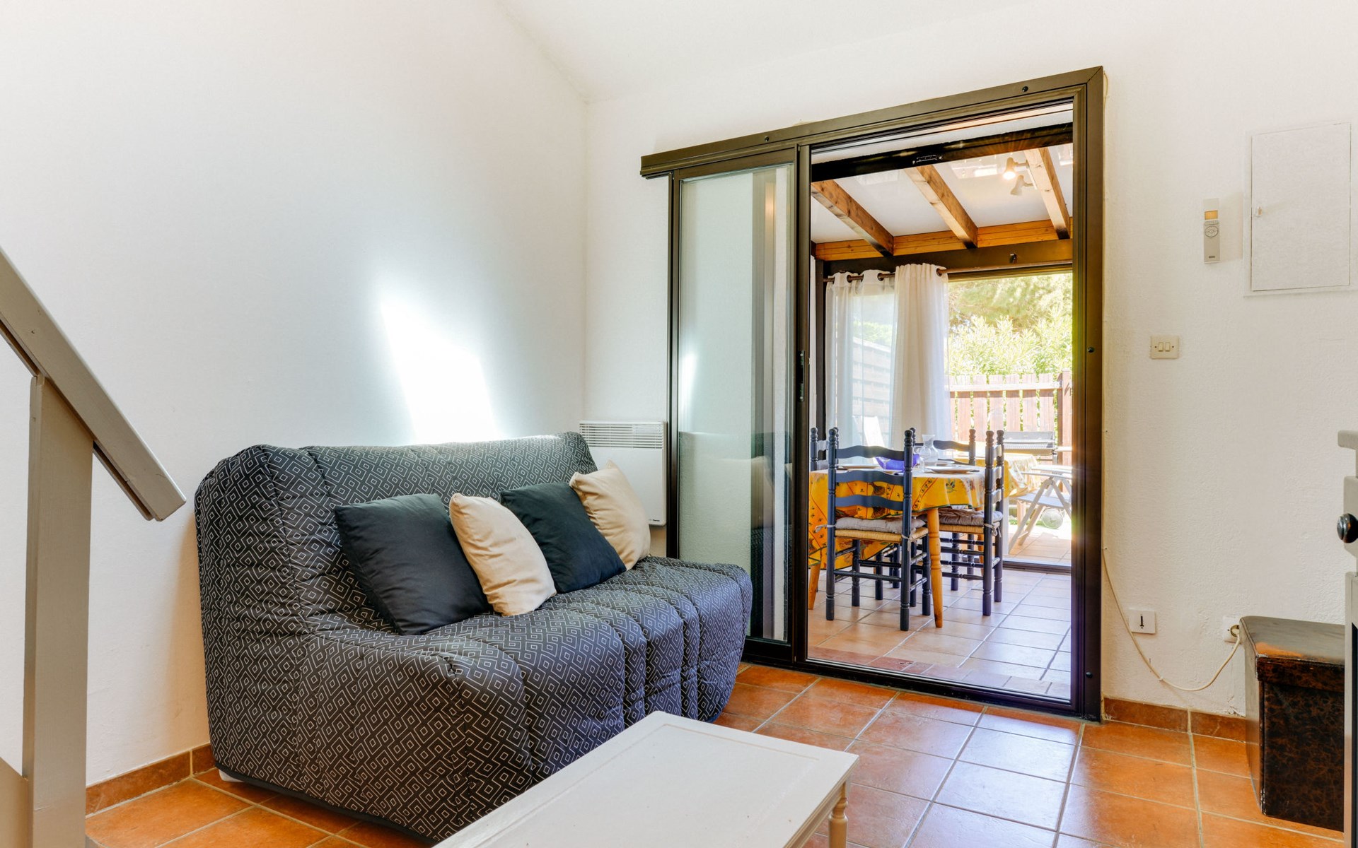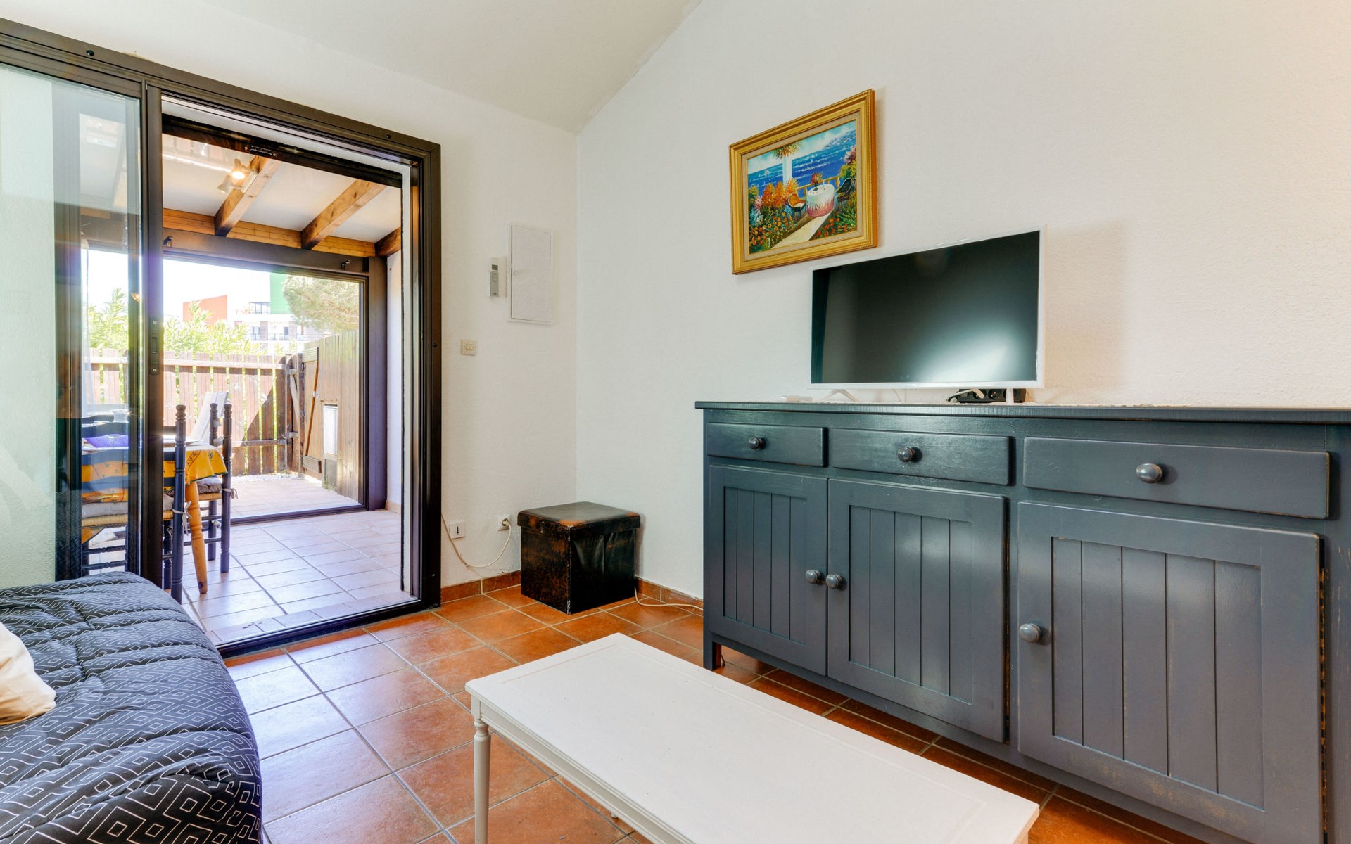 Residentie "Les Amandines". In de plaats, 1 km van het centrum, 2 km van zee. Voor medegebruik: openluchtzwembad (9 x 19 m, 100 - 200 cm diepte, seizoensgebonden beschikbaarheid: 01.Jun. - 30.Sep.). Parkeerplaats. Winkel 100 m, supermarkt 500 m, restaurant, bar 100 m, bushalte 50 m, zandstrand "du Grazel", strandbad 200 m. Tennis 800 m. Attracties in de buurt: Réserve Africaine de Sigean 29 km. De sleuteloverdracht vindt plaats bij het agentschap Interhome in Narbonne Plage, 10 km. De afgebeelde foto is slechts een voorbeeld.