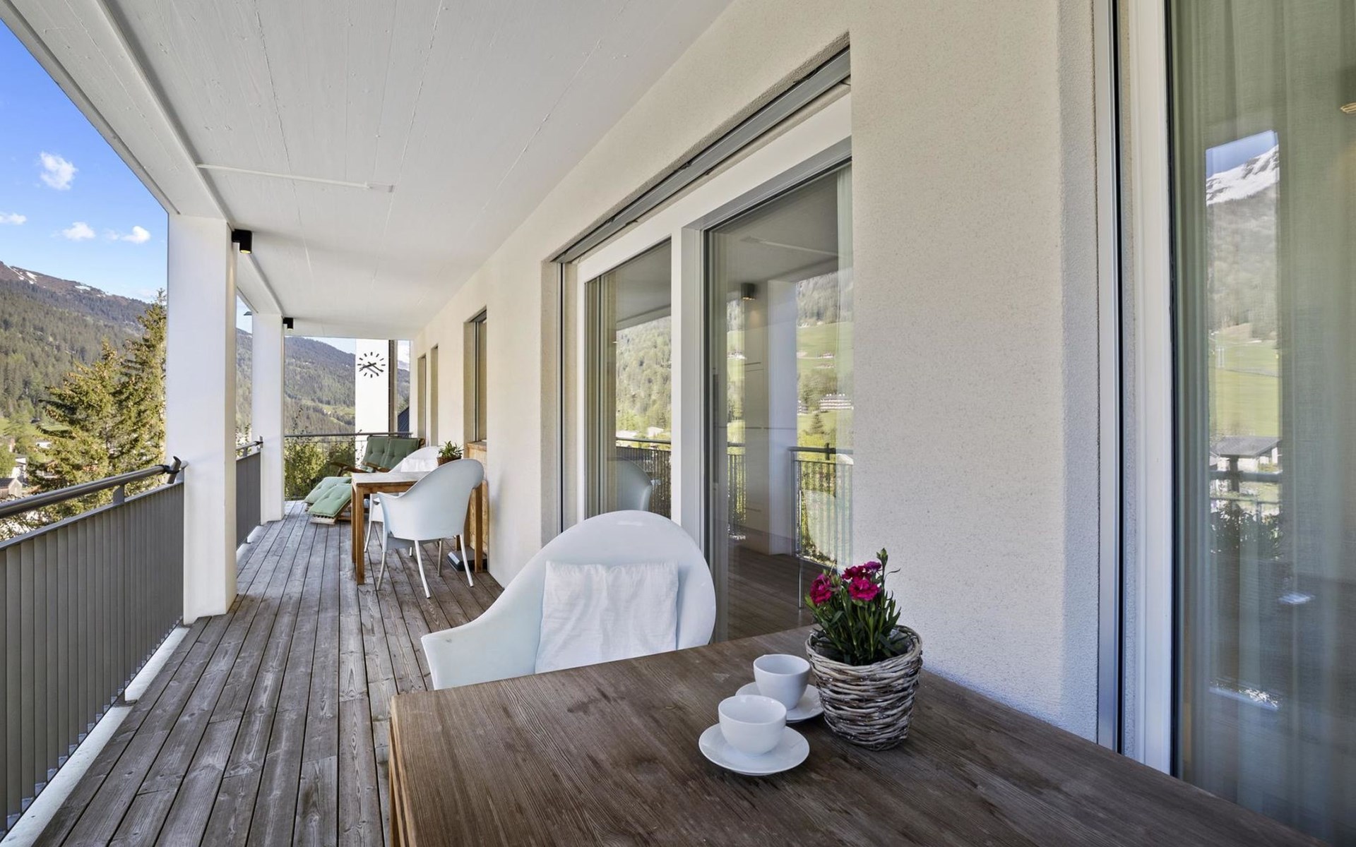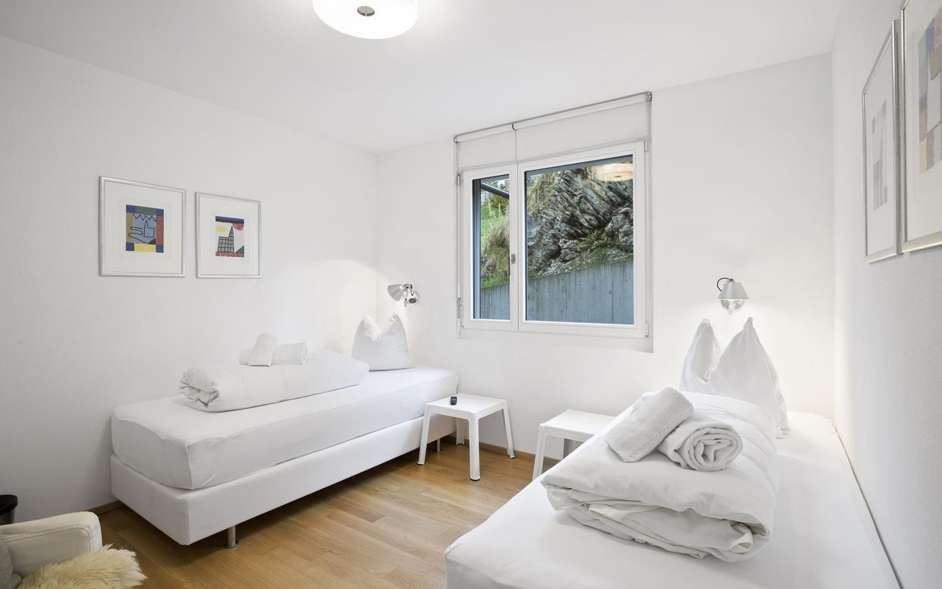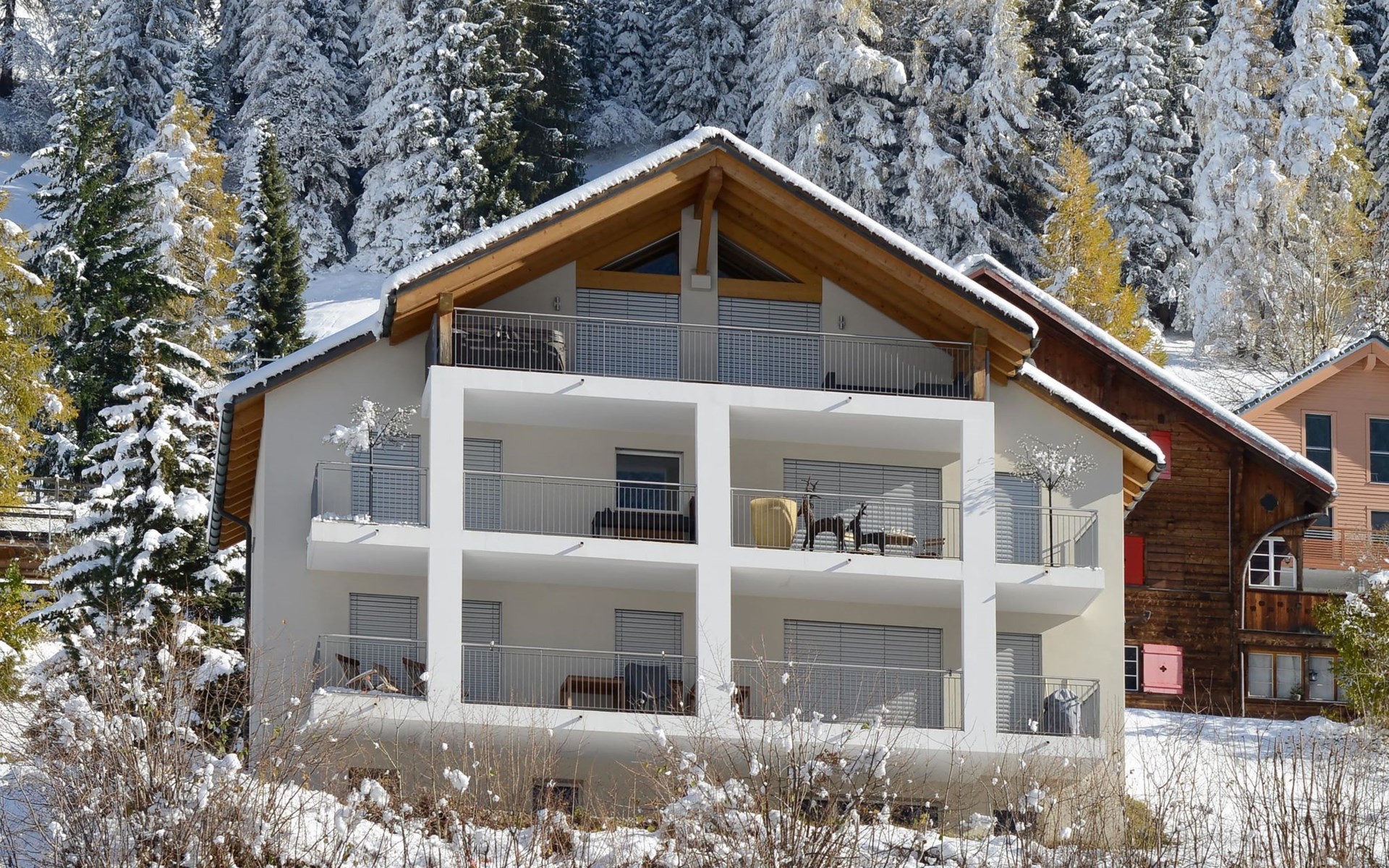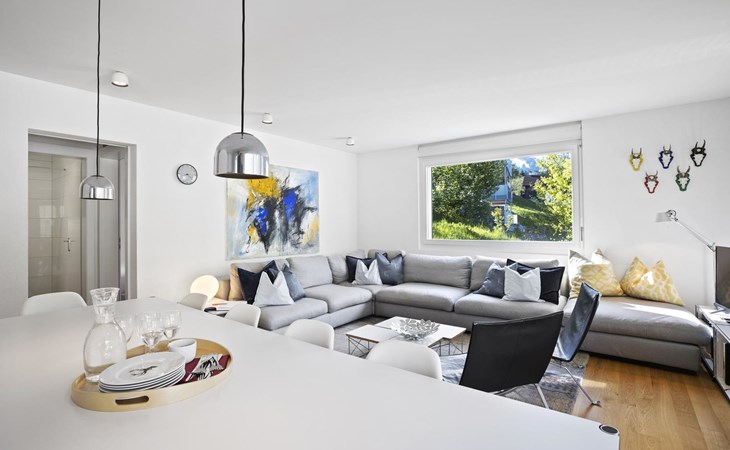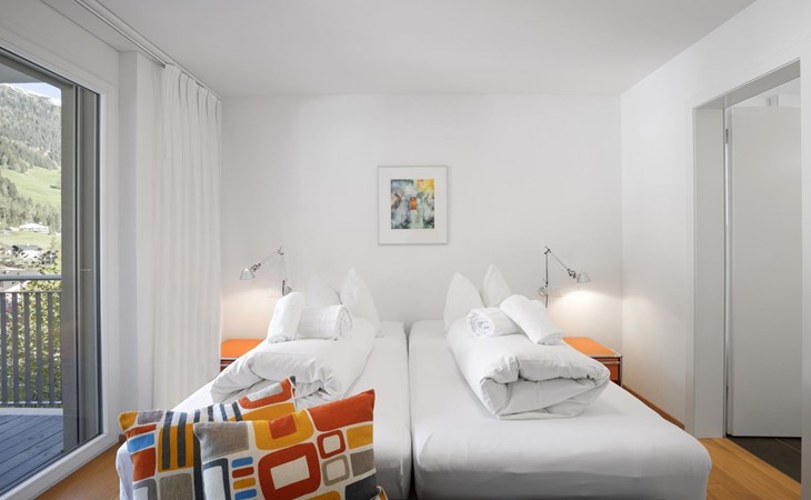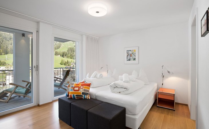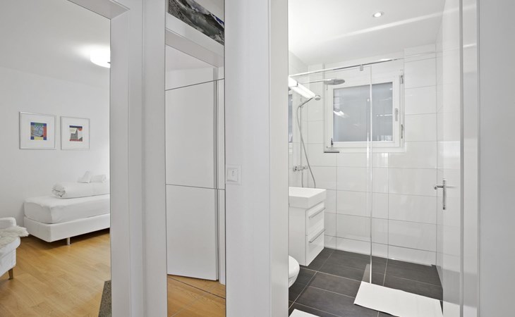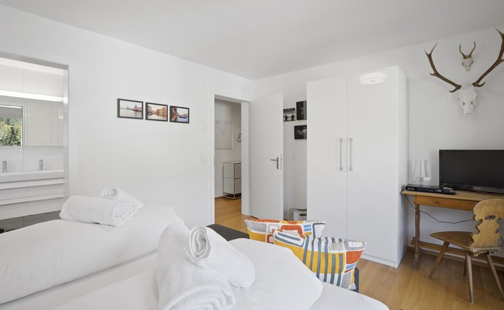 1st floor / no lift / Wifi yes / 1 room with double beds and bathroom en suite / 2 rooms with 2 single beds / 1 bathroom with WC, shower and bathtub / 1 bathroom with WC and shower. You can reach everything in a few minutes on foot, such as the shopping facilities Coop, Migros, as well as the lift stations. In summer, the heated outdoor swimming pool, the tennis courts as well as the toboggan run and zipline are within walking distance.
