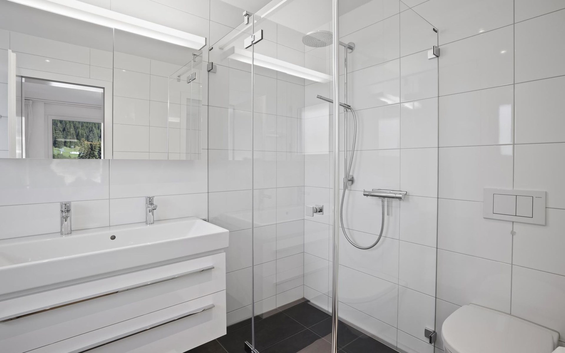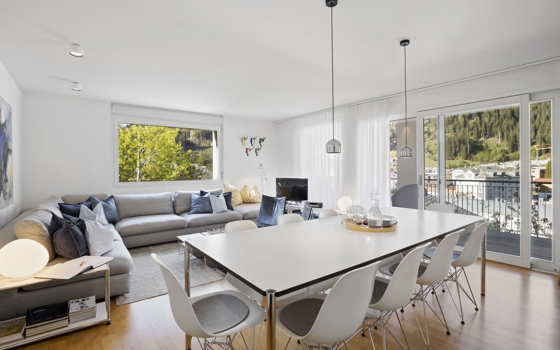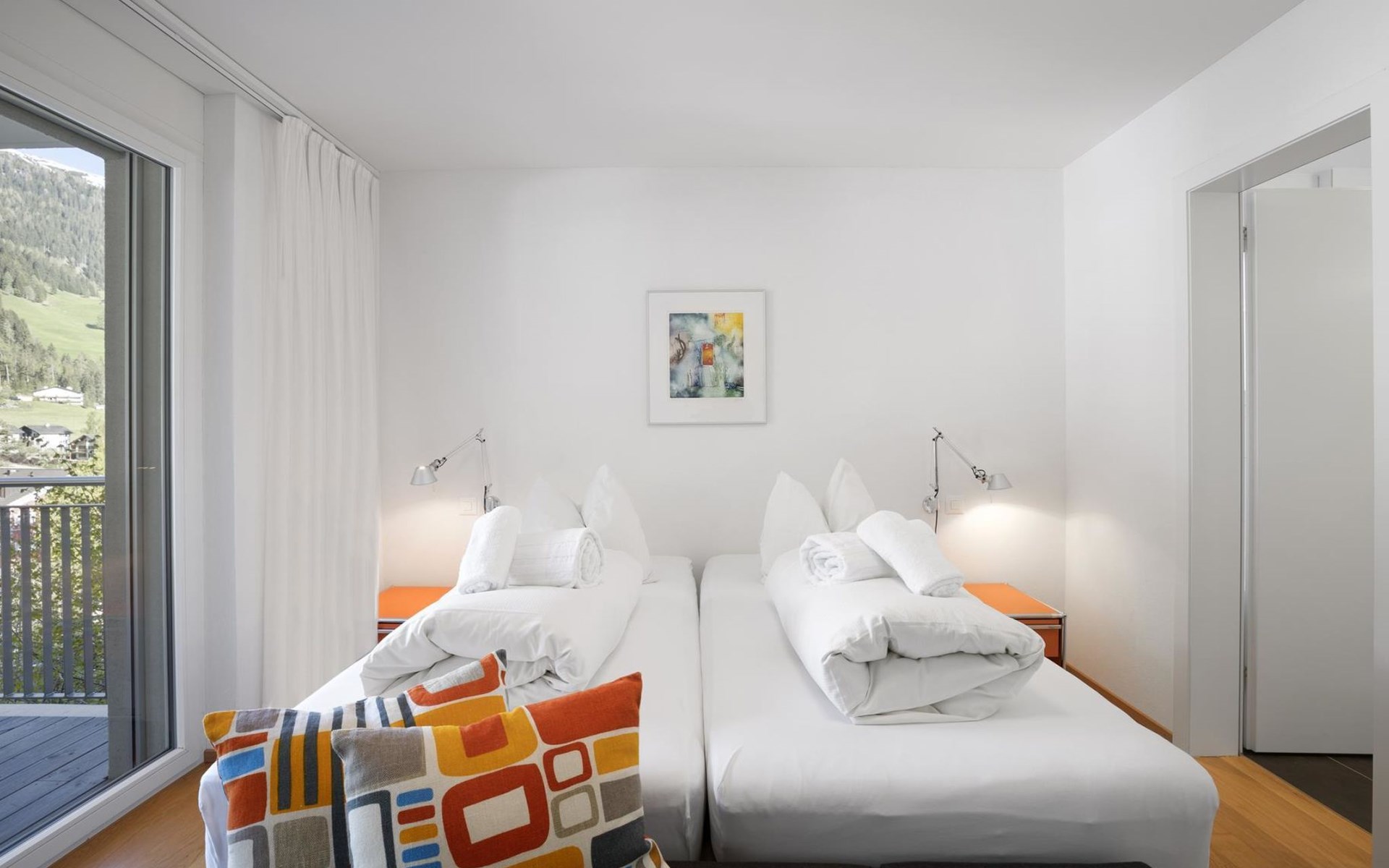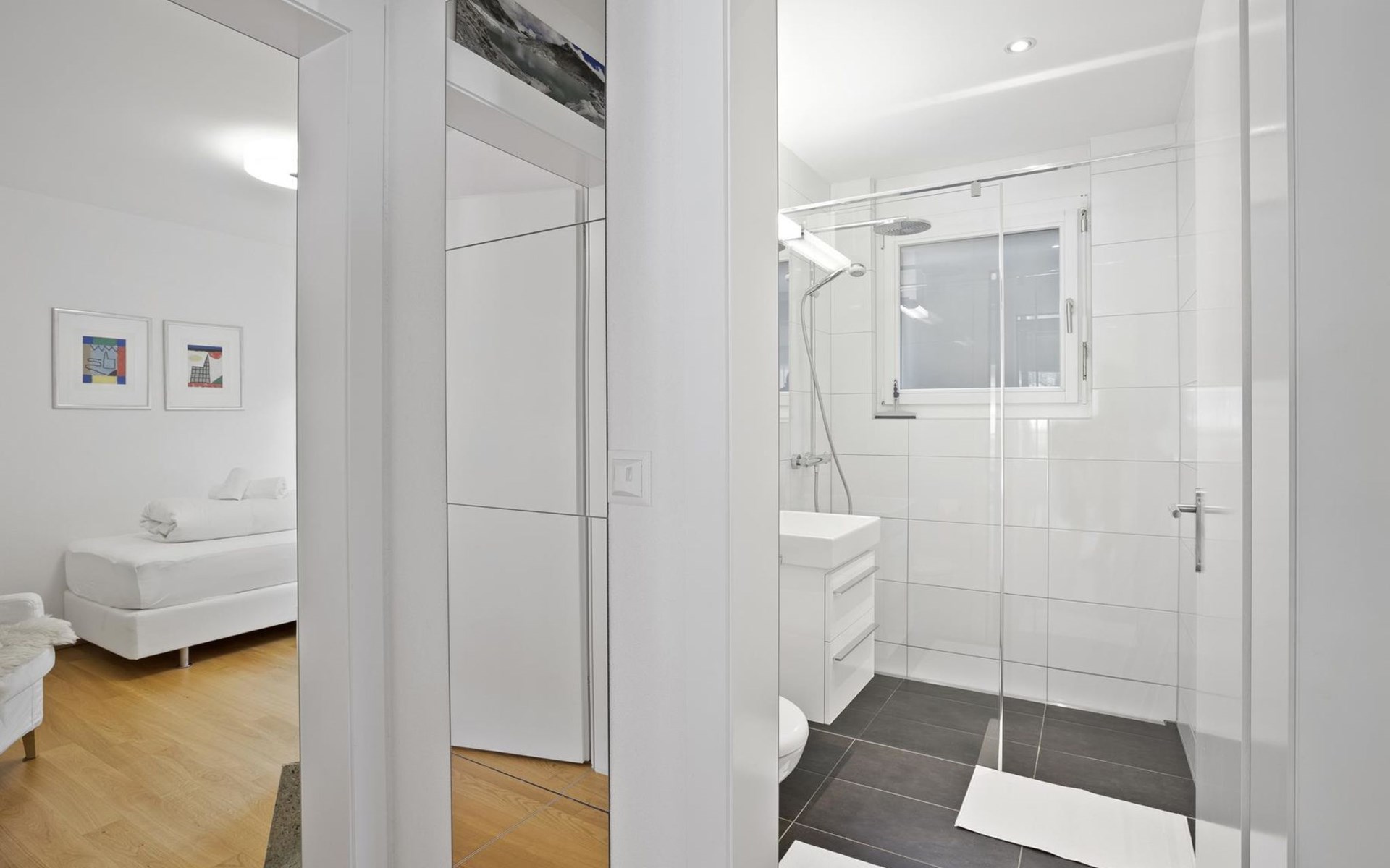 1st floor / no lift / Wifi yes / 1 room with double beds and bathroom en suite / 2 rooms with 2 single beds / 1 bathroom with WC, shower and bathtub / 1 bathroom with WC and shower. You can reach everything in a few minutes on foot, such as the shopping facilities Coop, Migros, as well as the lift stations. In summer, the heated outdoor swimming pool, the tennis courts as well as the toboggan run and zipline are within walking distance.