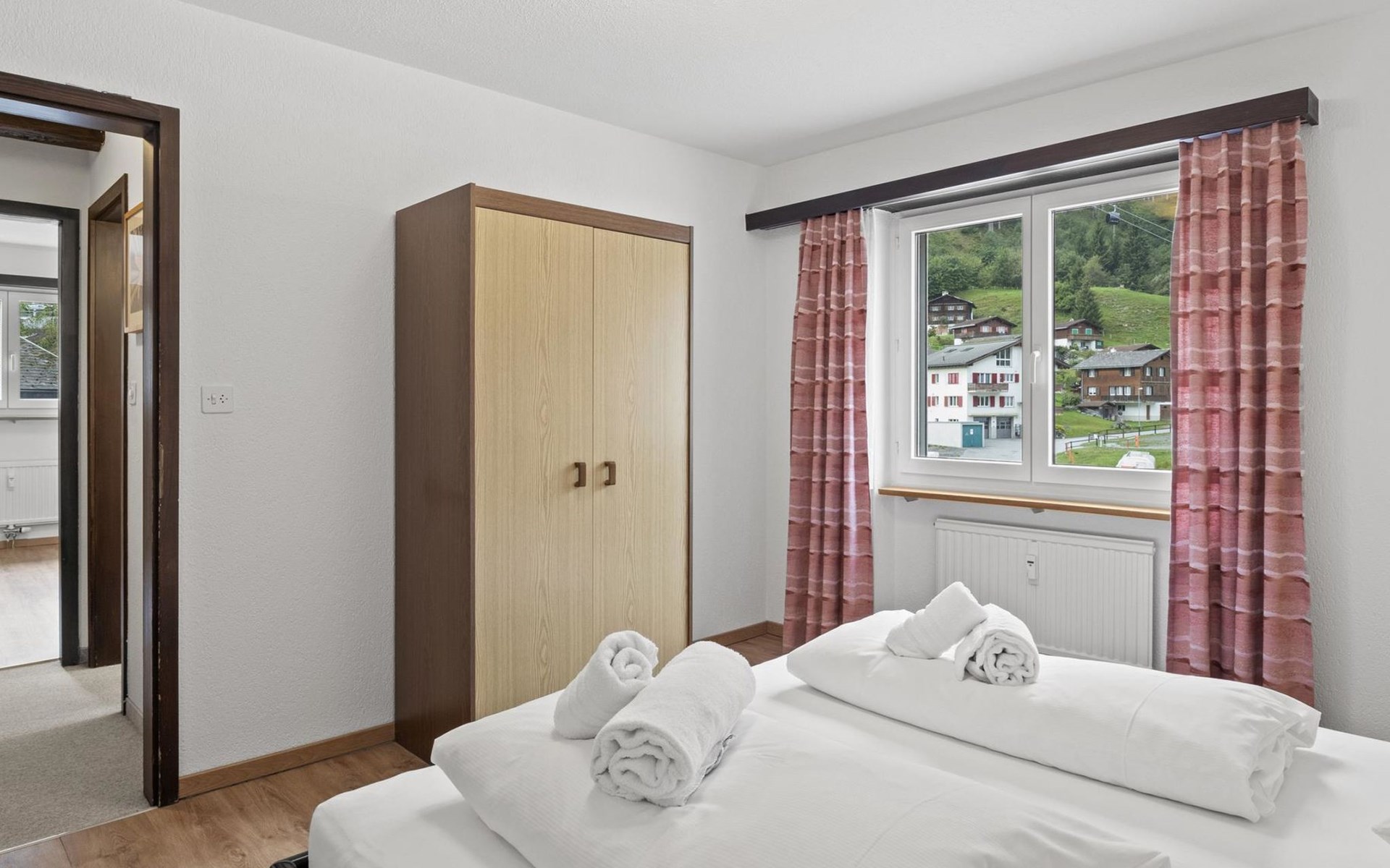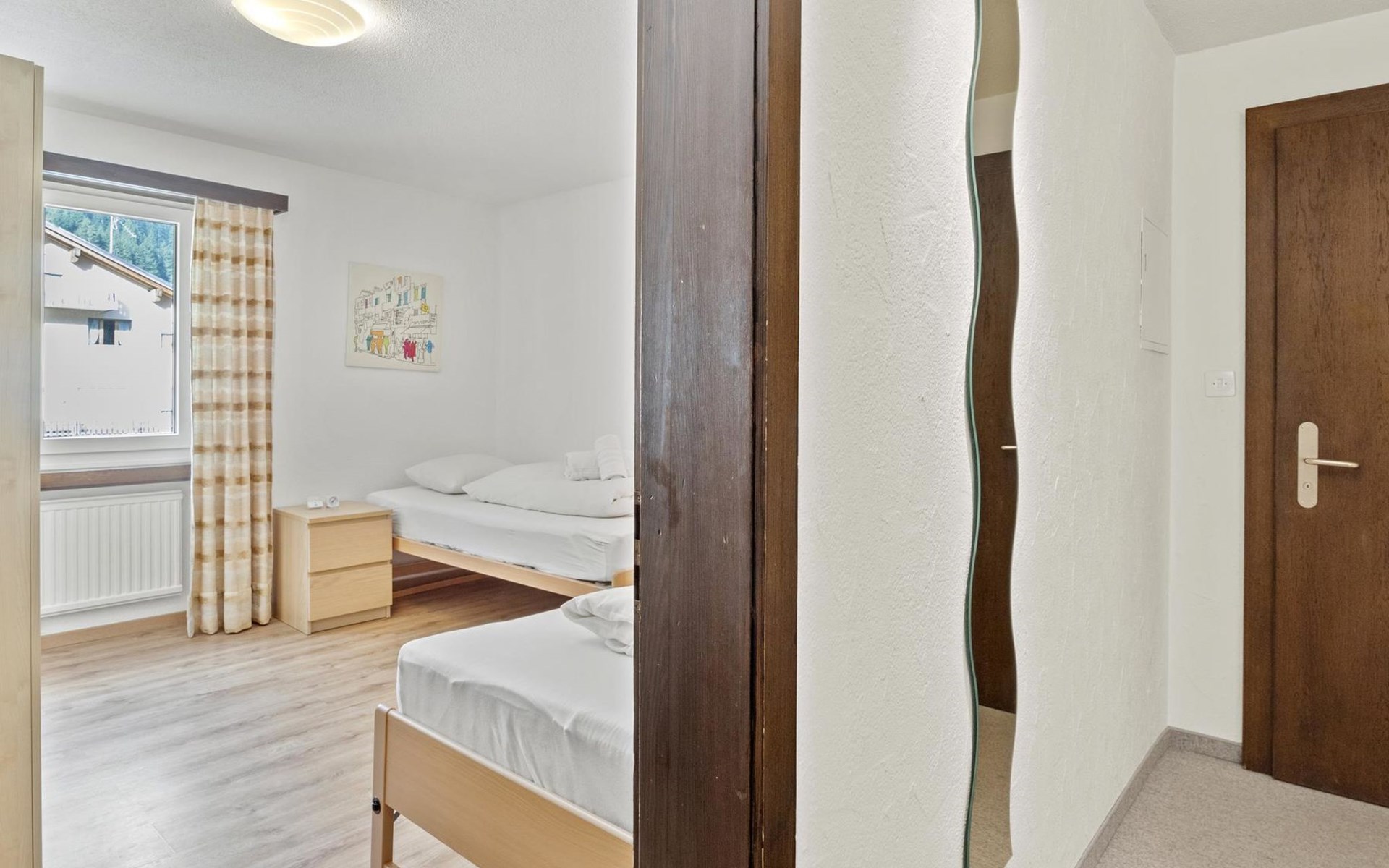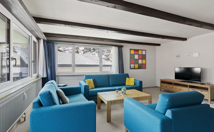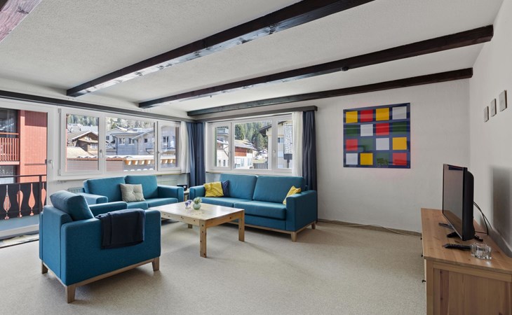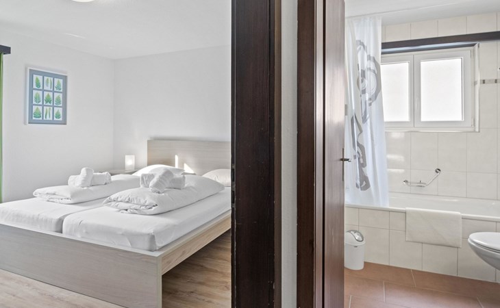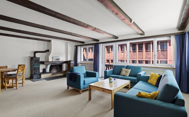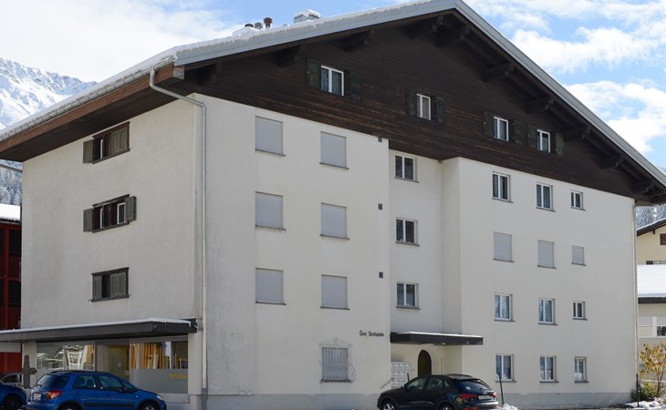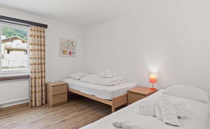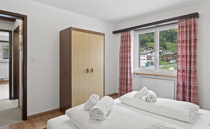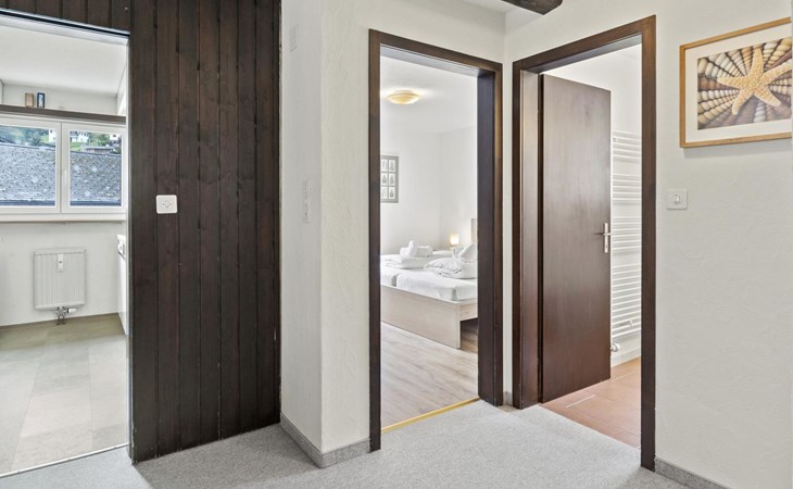 2nd floor / Lift / Wifi yes / 2 rooms with double beds / 1 room with two single beds / 1 bathroom with WC and shower / 1 bathroom with WC and bathtub.The shopping facilities Coop and Migros, as well as the sports shop and the mountain railways are in the immediate vicinity. In summer, the heated outdoor swimming pool is only a few steps away from the house. (In the same house as the holiday flats Zondler and Lang)