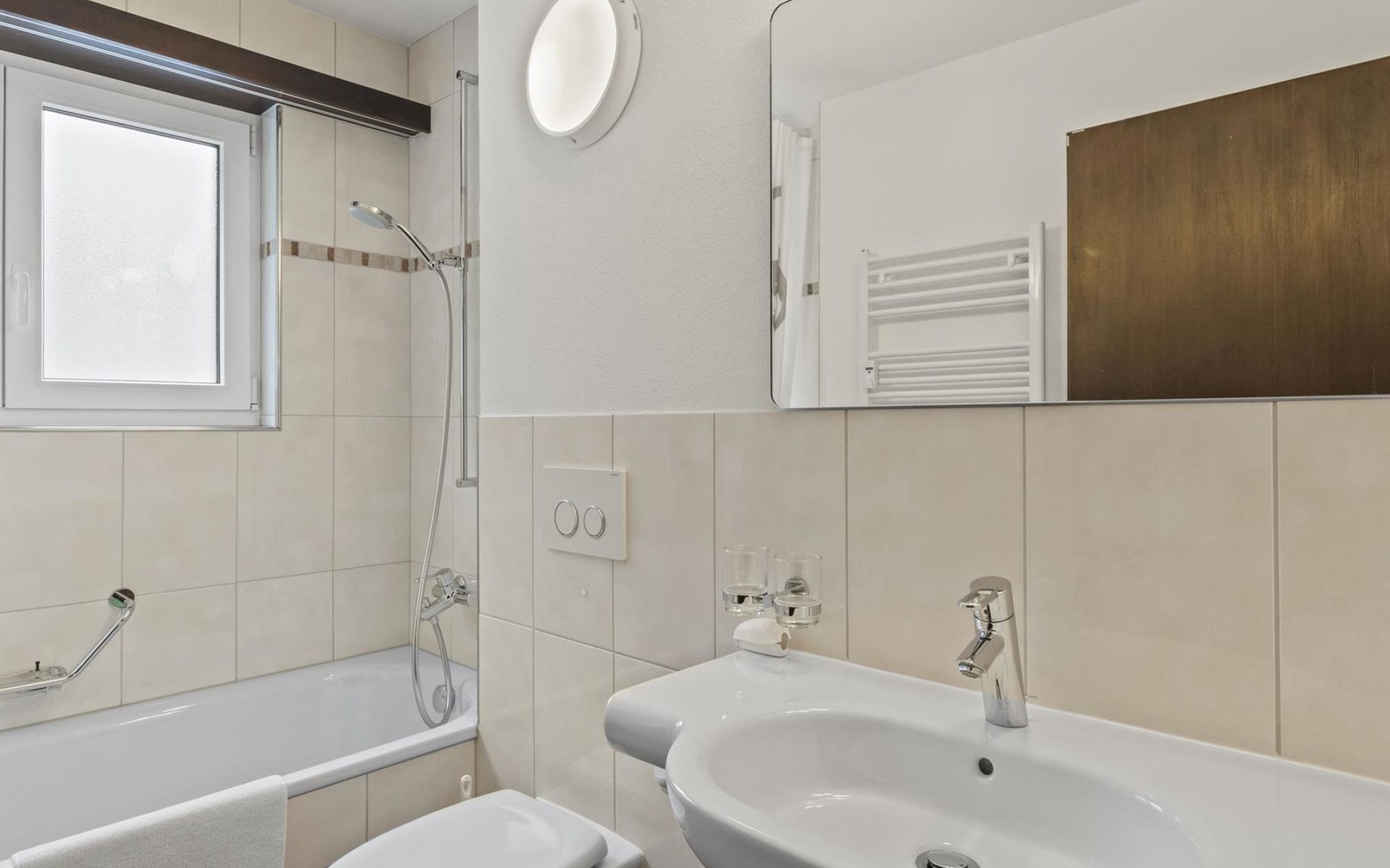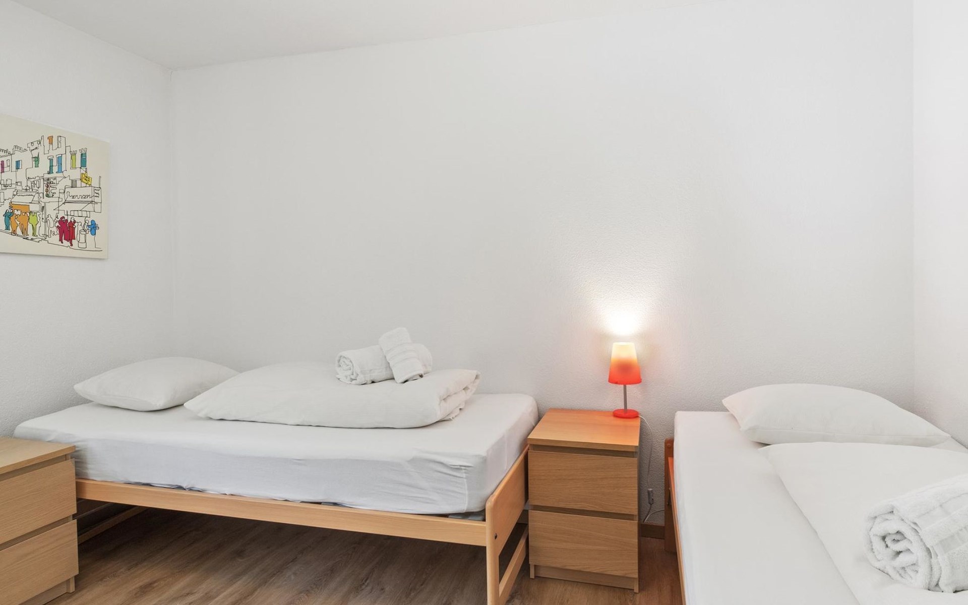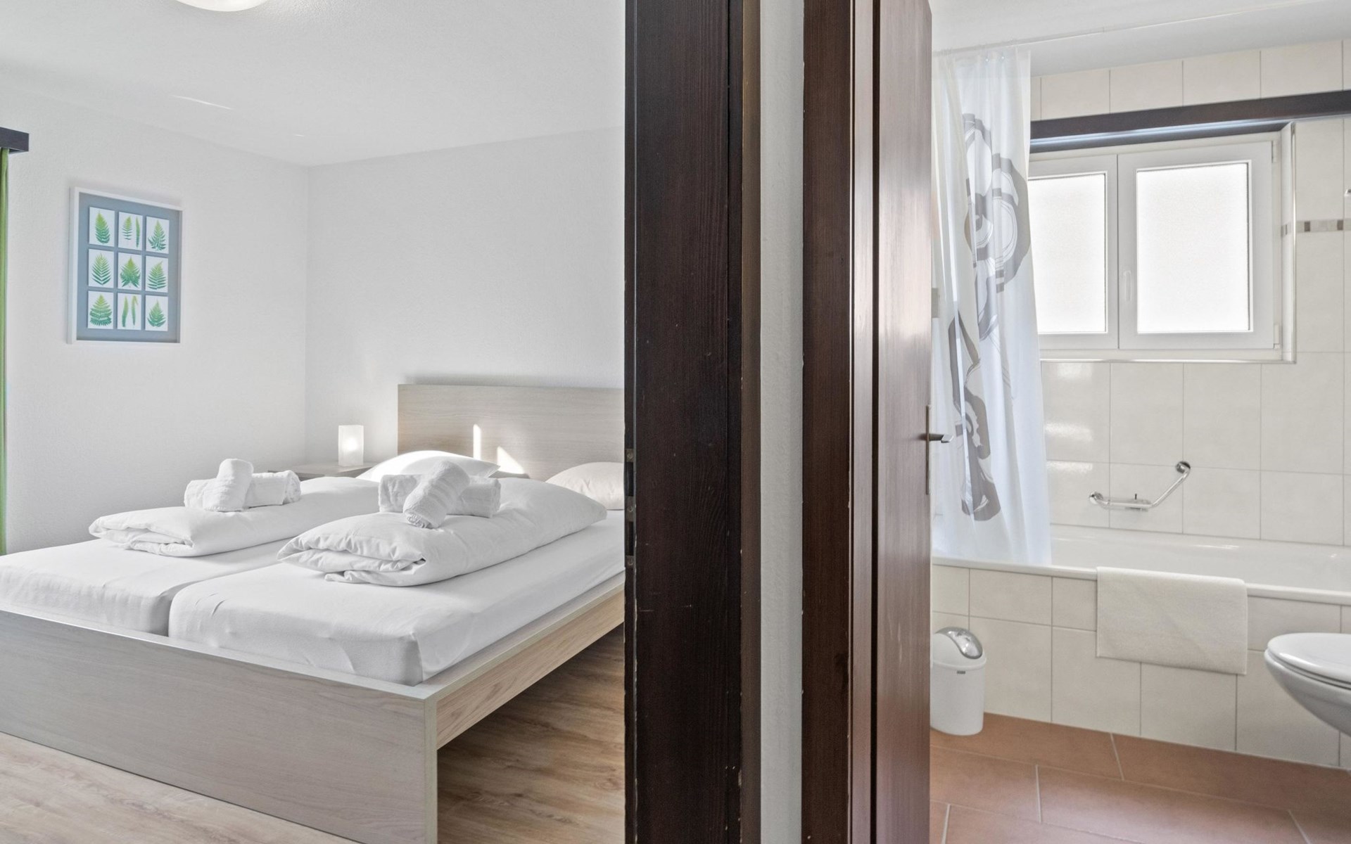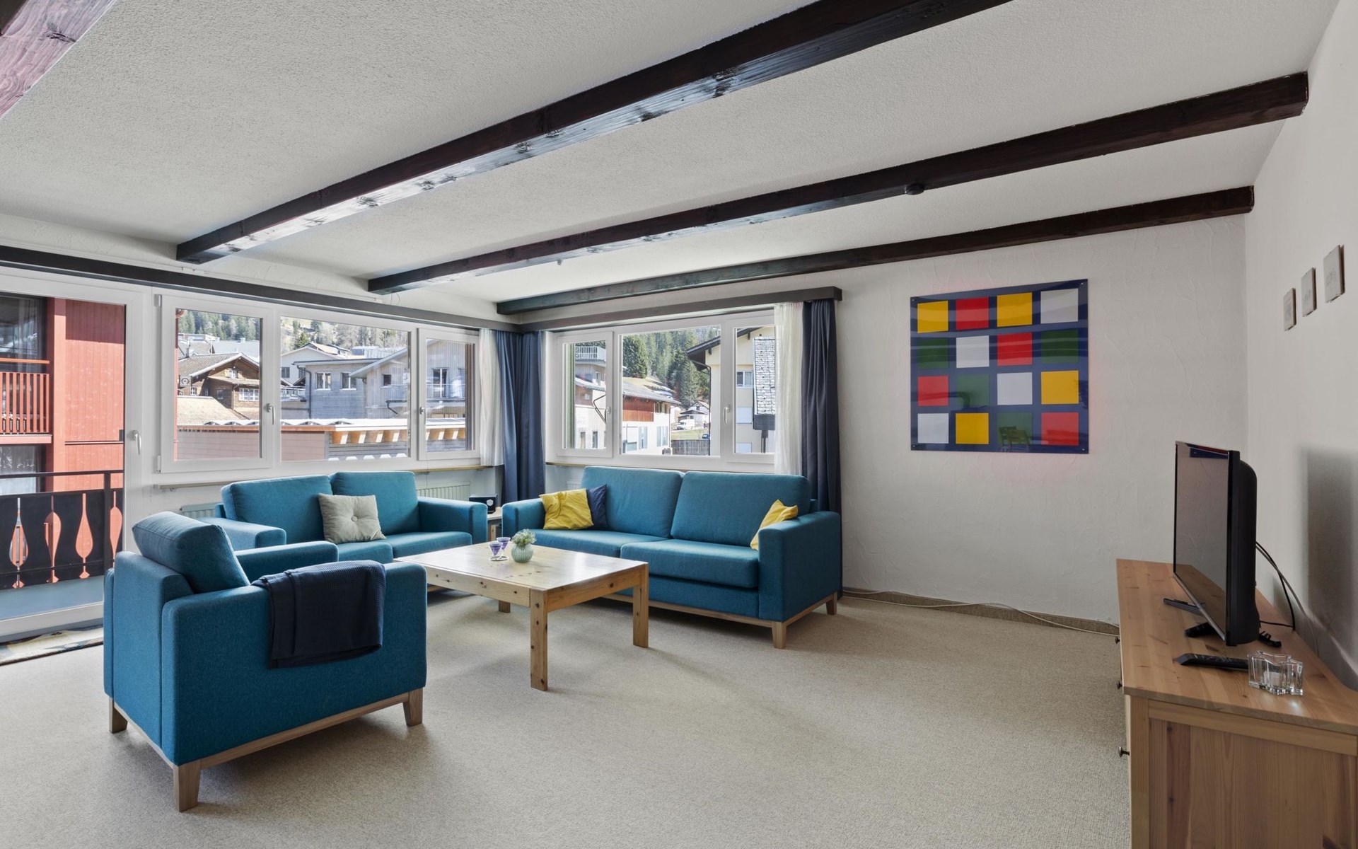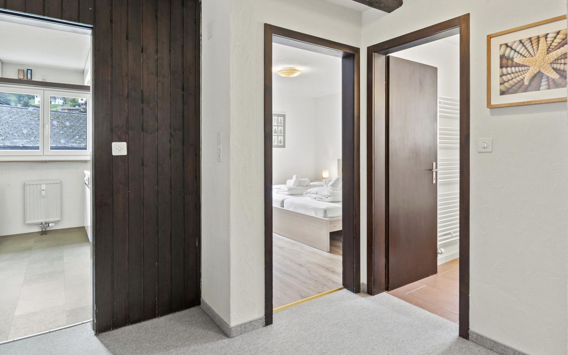 2nd floor / Lift / Wifi yes / 2 rooms with double beds / 1 room with two single beds / 1 bathroom with WC and shower / 1 bathroom with WC and bathtub.The shopping facilities Coop and Migros, as well as the sports shop and the mountain railways are in the immediate vicinity. In summer, the heated outdoor swimming pool is only a few steps away from the house. (In the same house as the holiday flats Zondler and Lang)