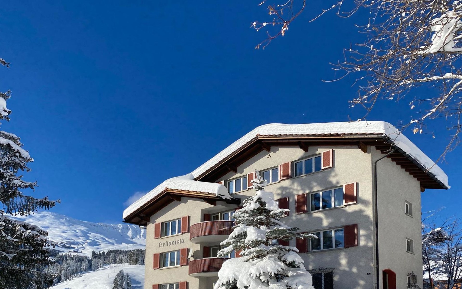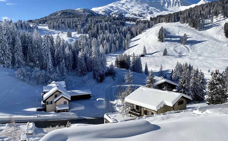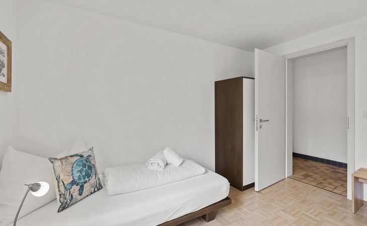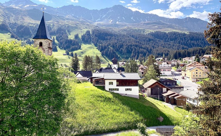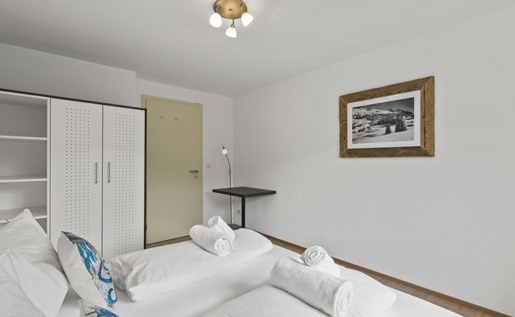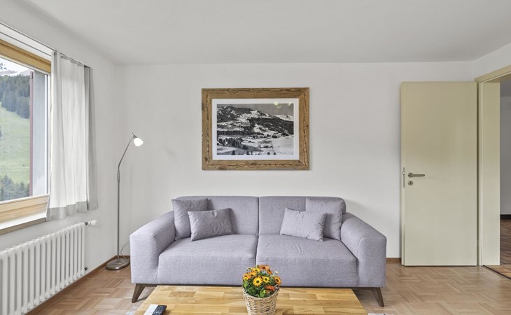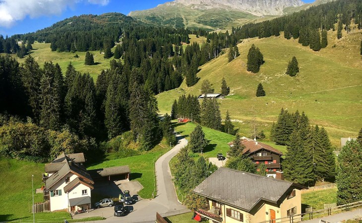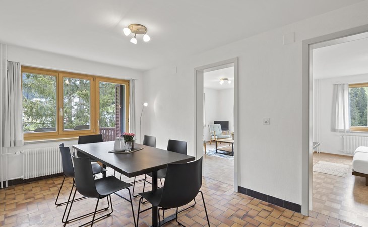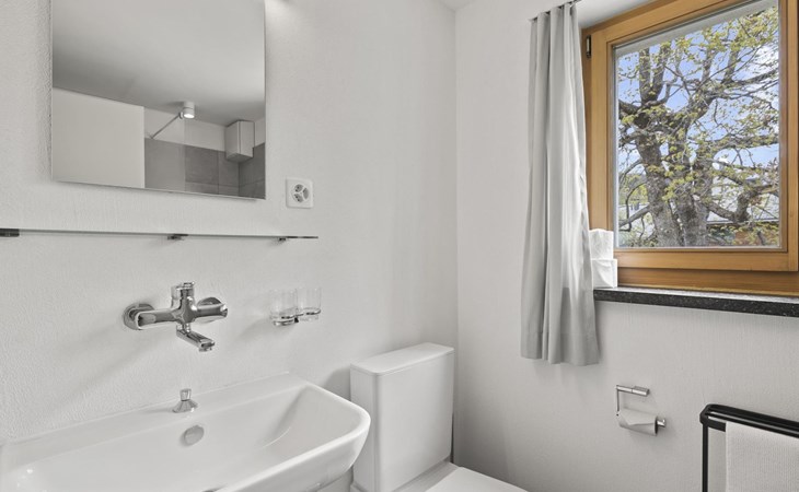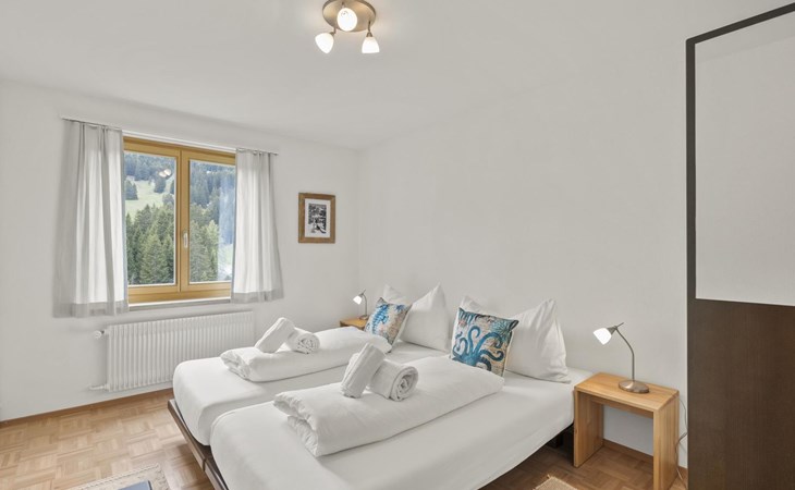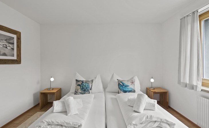 1 upper floor / no lift / Wifi yes / 2 bedrooms with double beds / 1 bedroom with two single beds / 1 bathroom with WC and shower. The flat is located in the village centre near the church. Also, a good starting point for hikes or bike tours and in winter for the skiing area of Lenzerheide. (The Bellavista 4 holiday flat is in the same house).