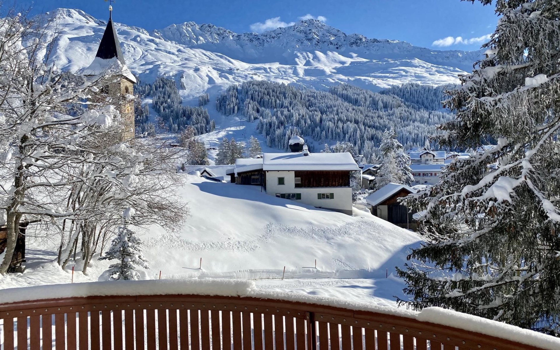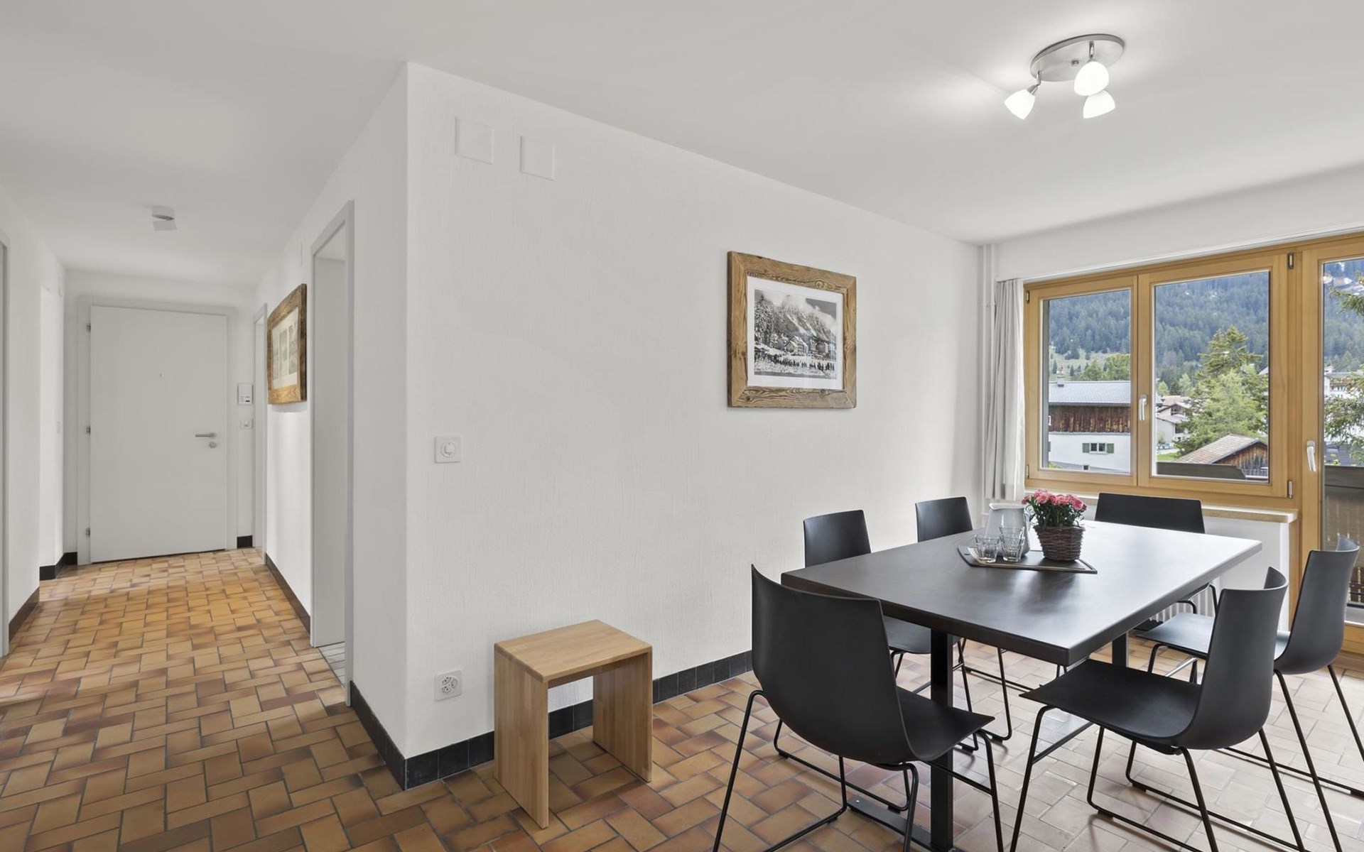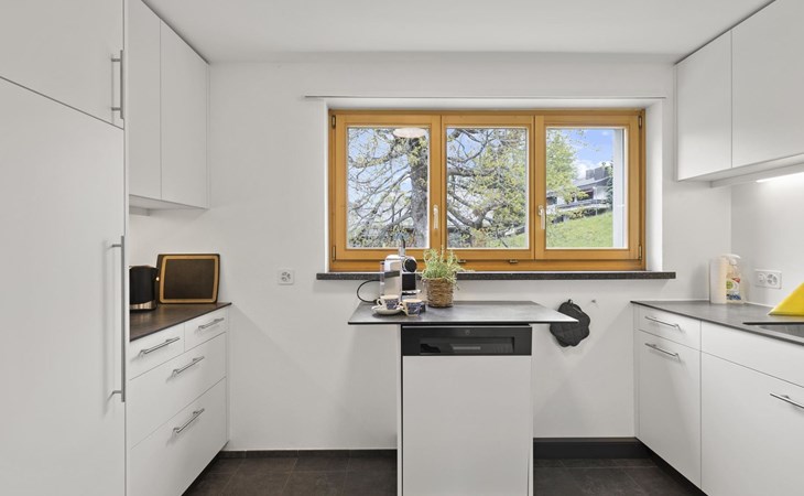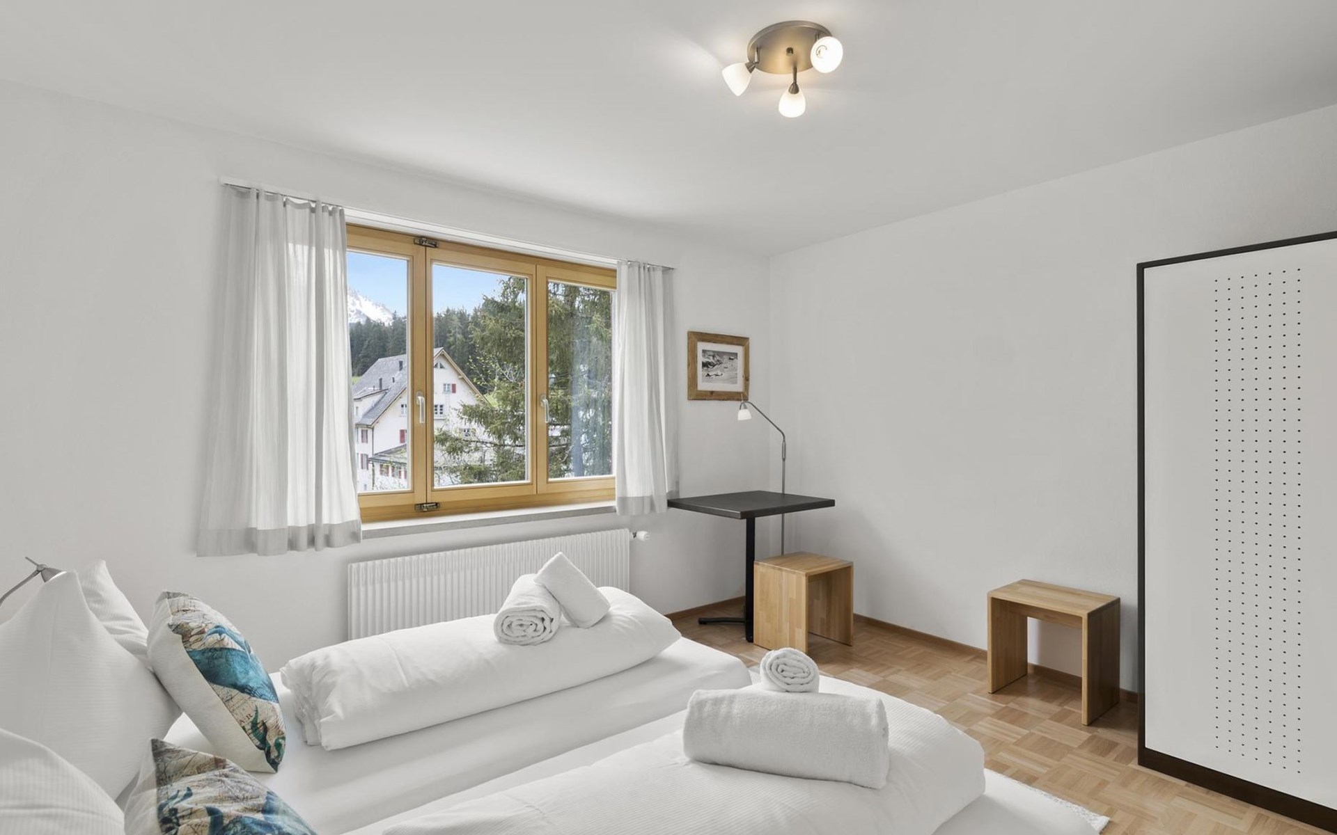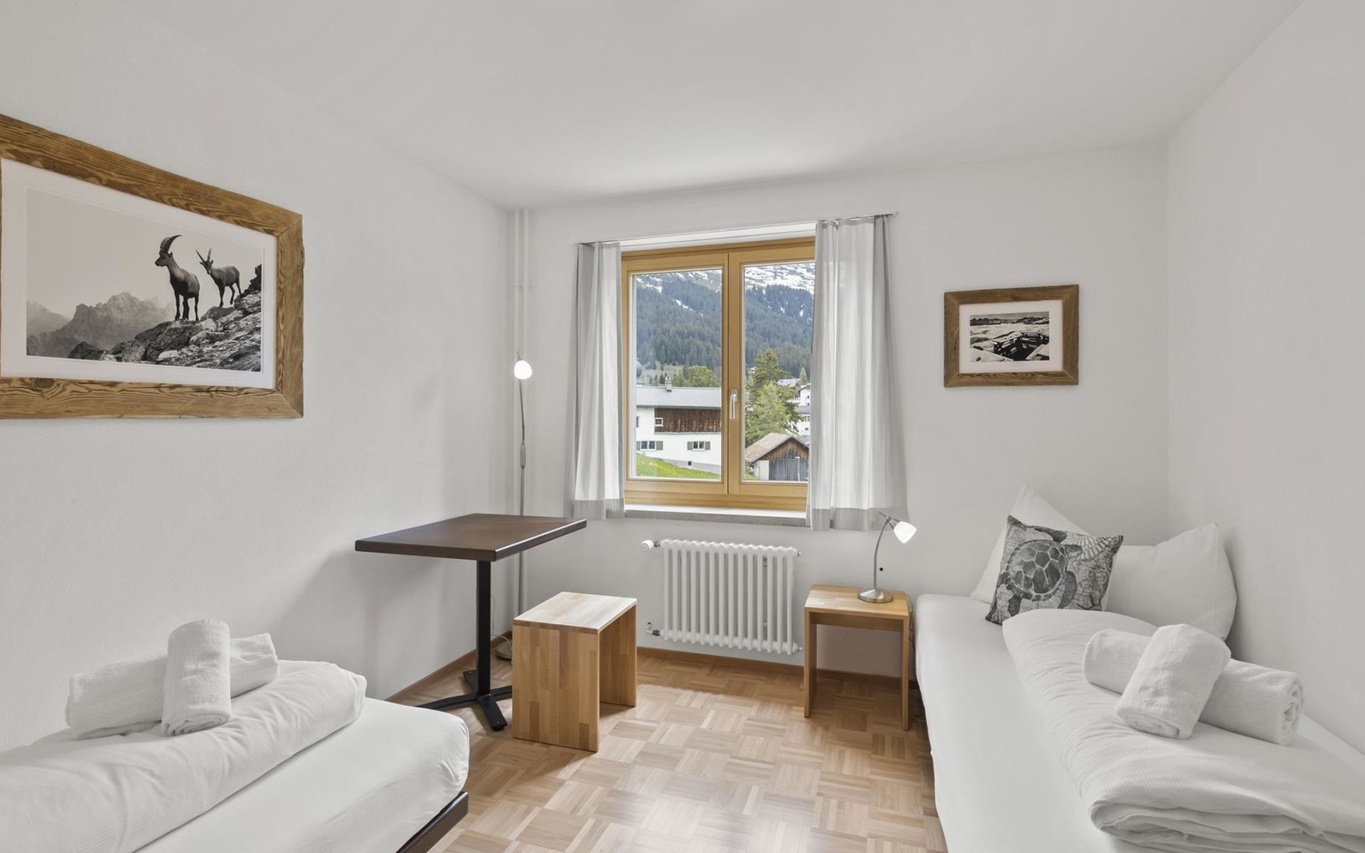 1 upper floor / no lift / Wifi yes / 2 bedrooms with double beds / 1 bedroom with two single beds / 1 bathroom with WC and shower. The flat is located in the village centre near the church. Also, a good starting point for hikes or bike tours and in winter for the skiing area of Lenzerheide. (The Bellavista 4 holiday flat is in the same house).