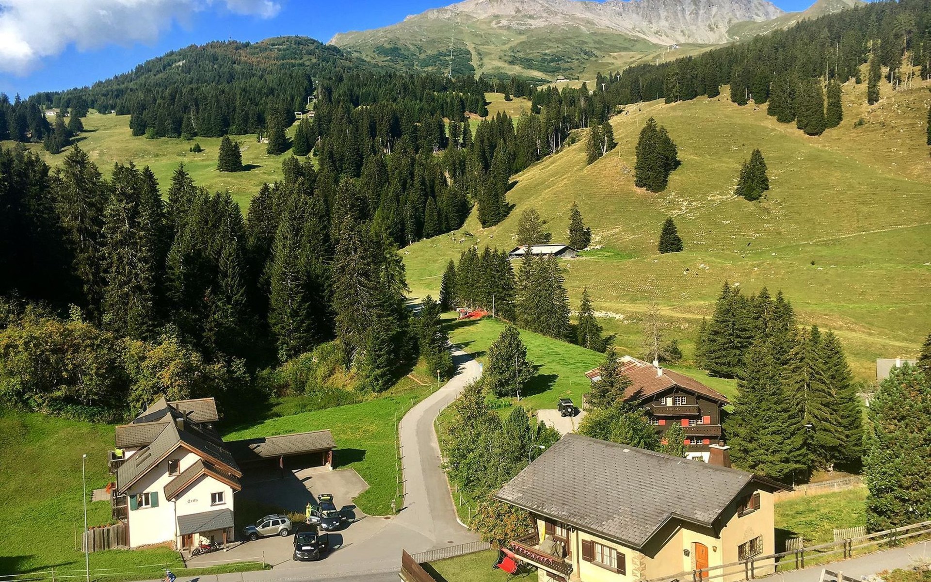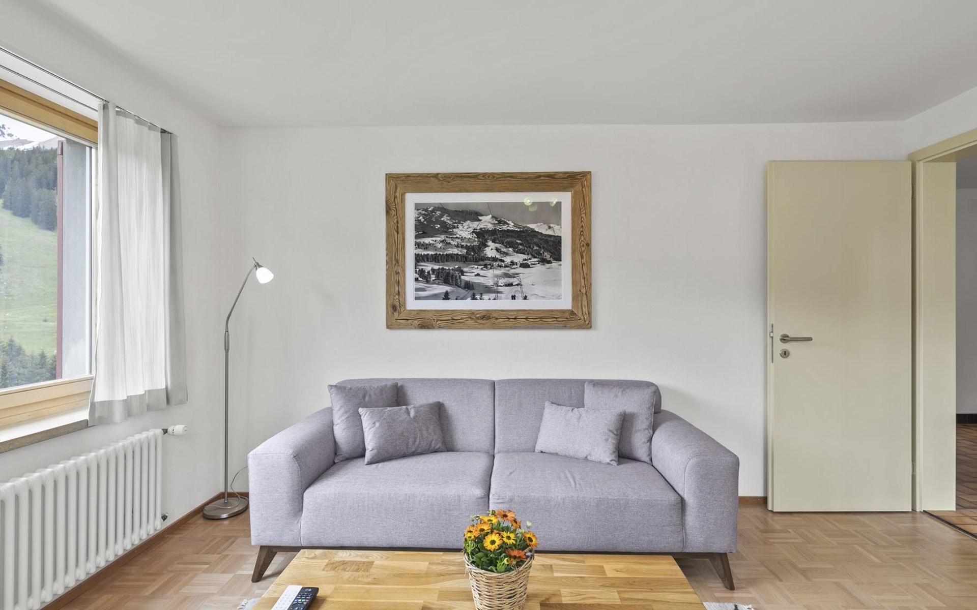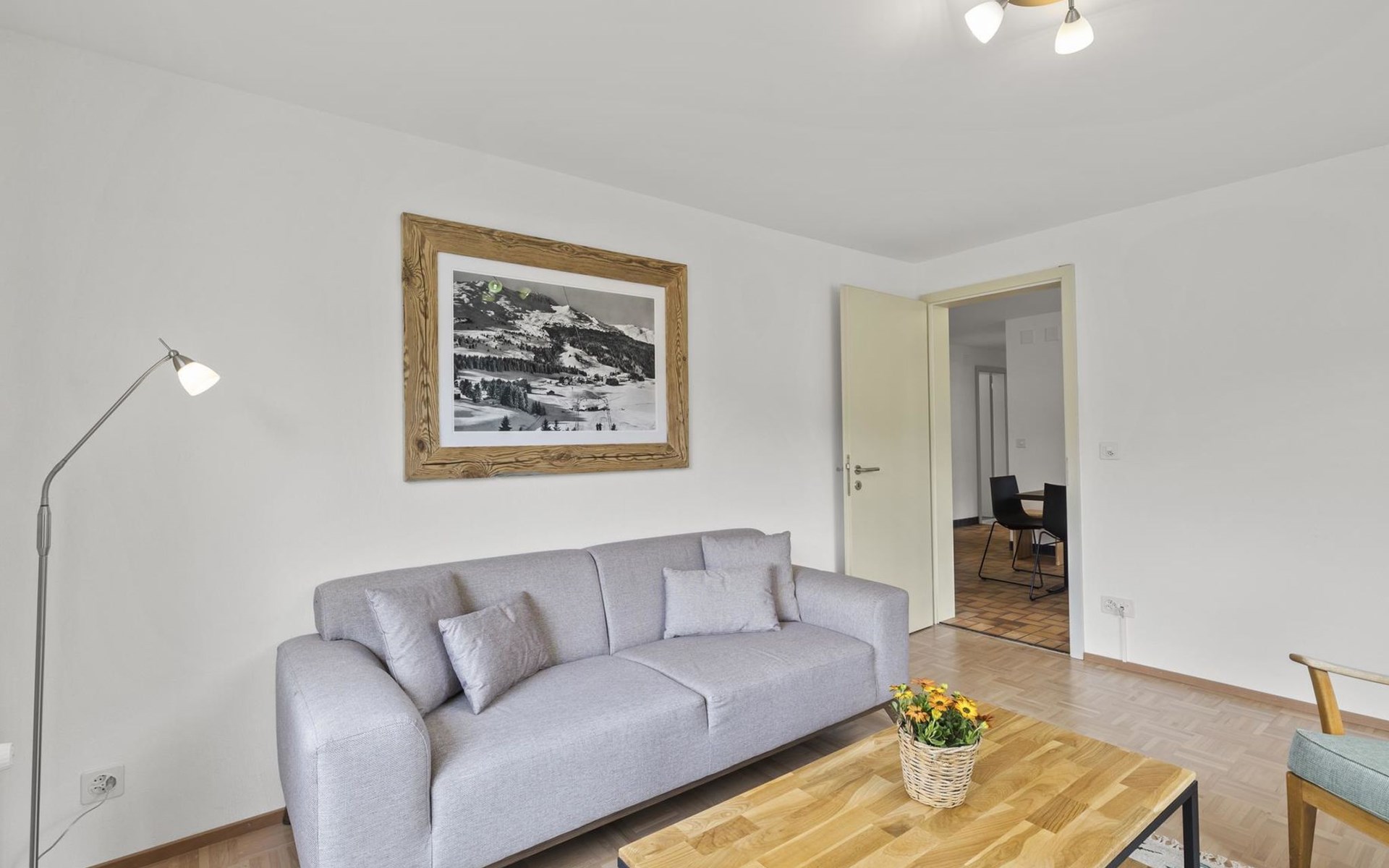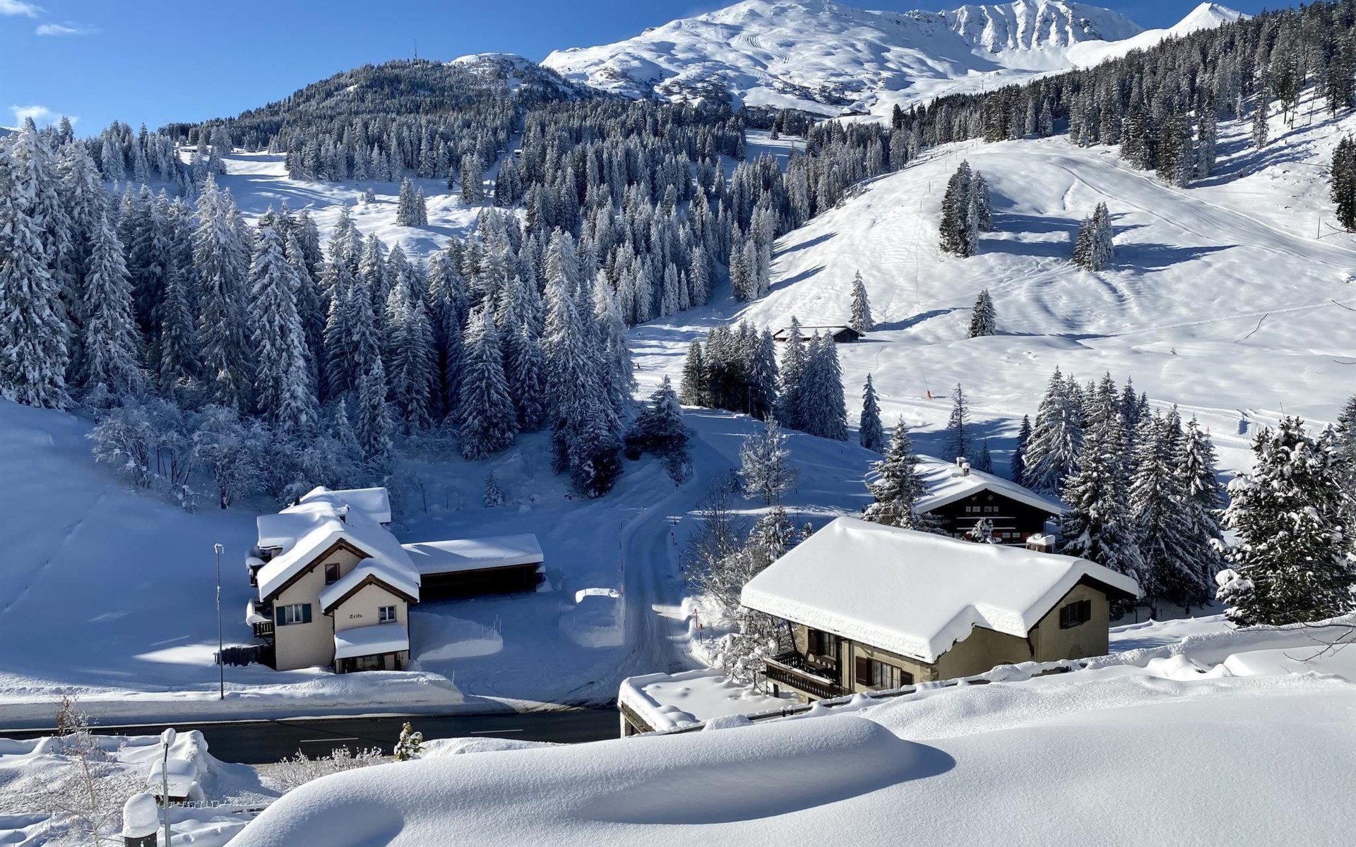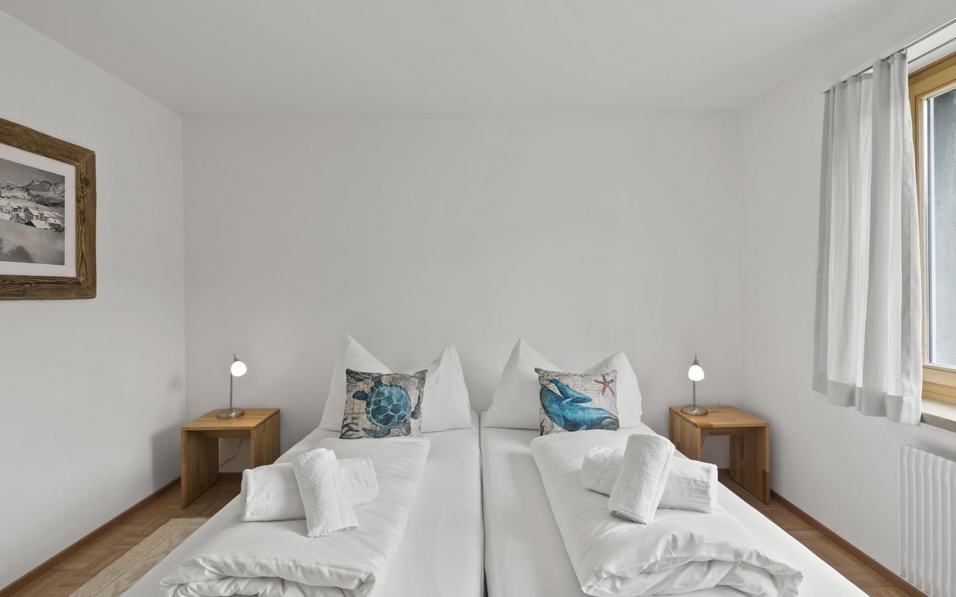 1 upper floor / no lift / Wifi yes / 2 bedrooms with double beds / 1 bedroom with two single beds / 1 bathroom with WC and shower. The flat is located in the village centre near the church. Also, a good starting point for hikes or bike tours and in winter for the skiing area of Lenzerheide. (The Bellavista 4 holiday flat is in the same house).