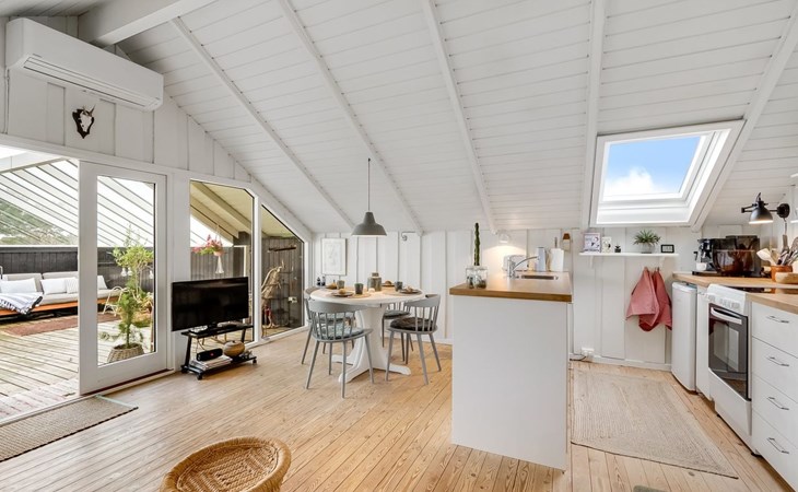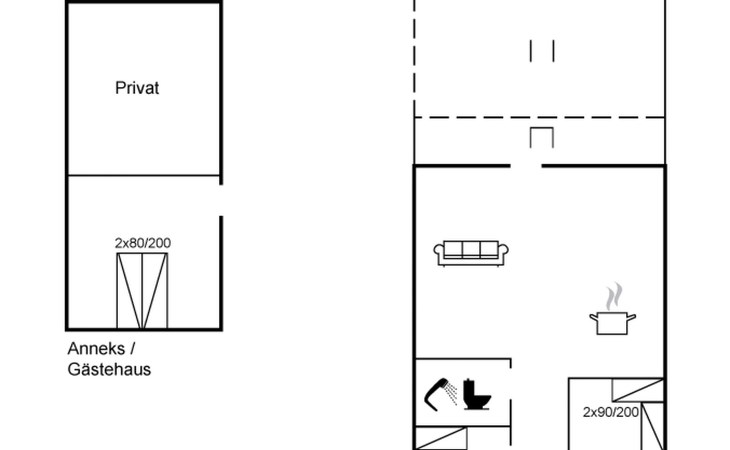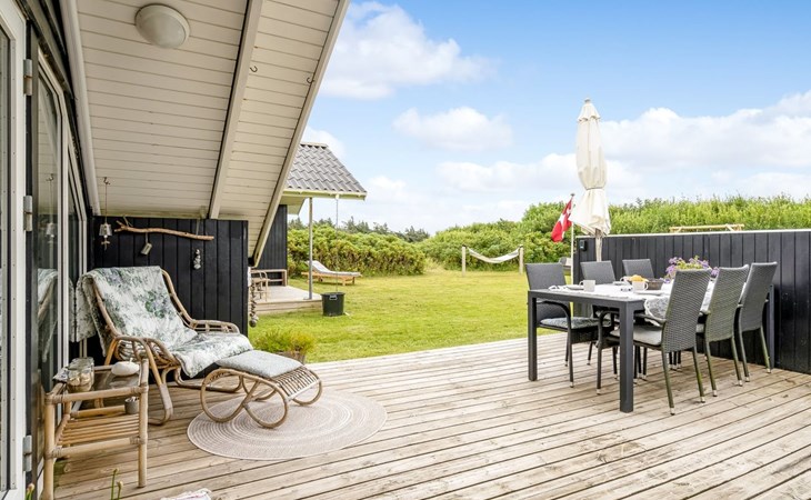 Eengezinswoning, bouwjaar 1979. 400 m van zee. Voor alleengebruik: wild terrein 2.597 m2. Buitendouche, terras (20 m2), barbecue, kinderspeelplaats (schommel). In het huis: wasmachine. Parkeerplaats bij het huis. Levensmiddelenwinkel 800 m. De eigenaar accepteert geen jeugdgroepen.