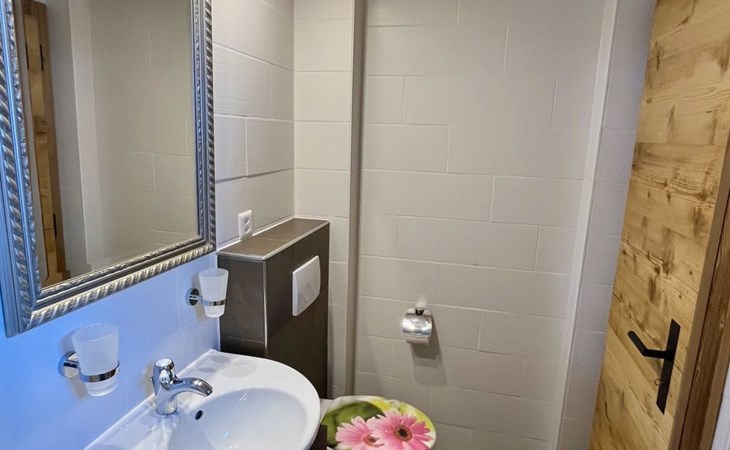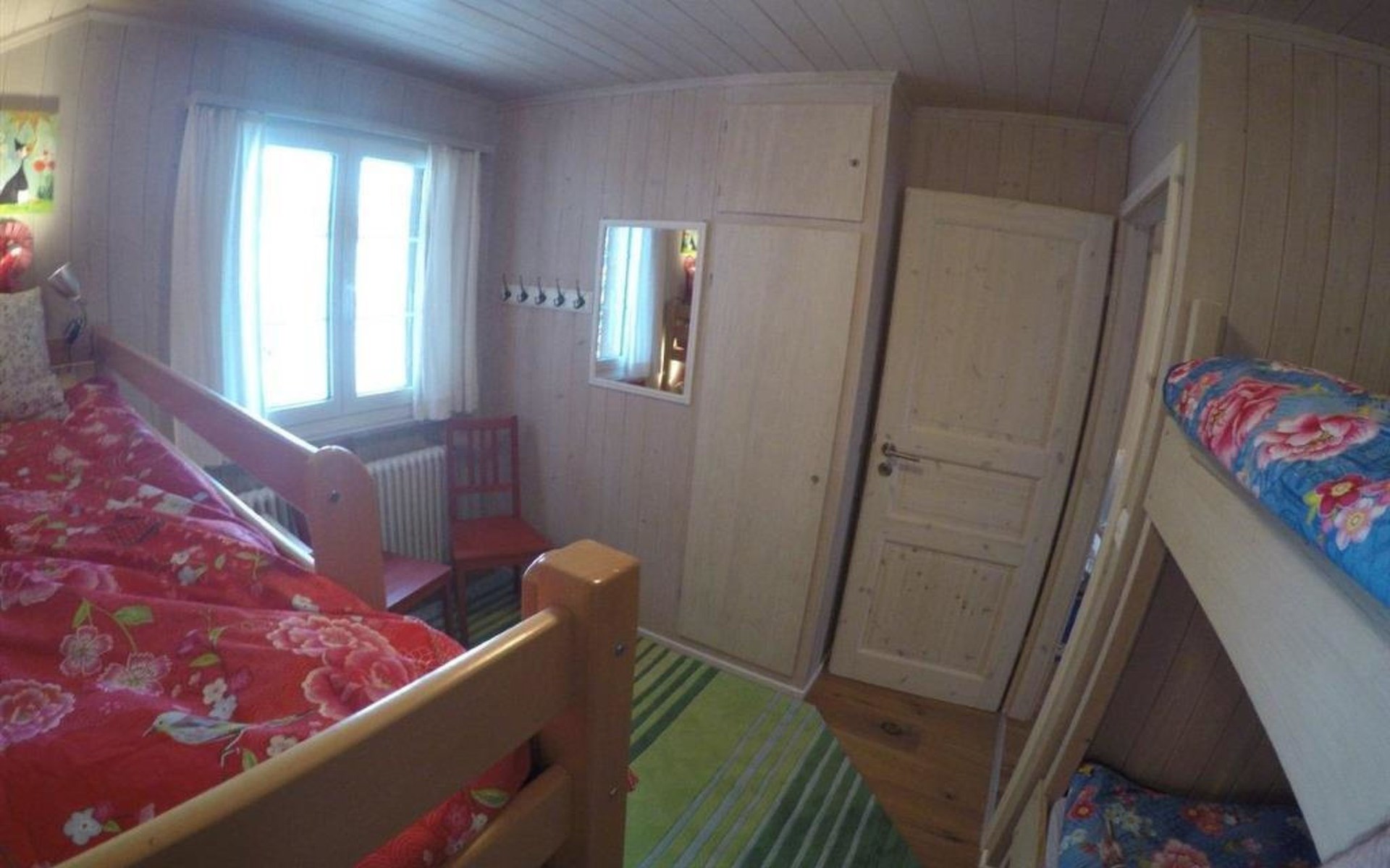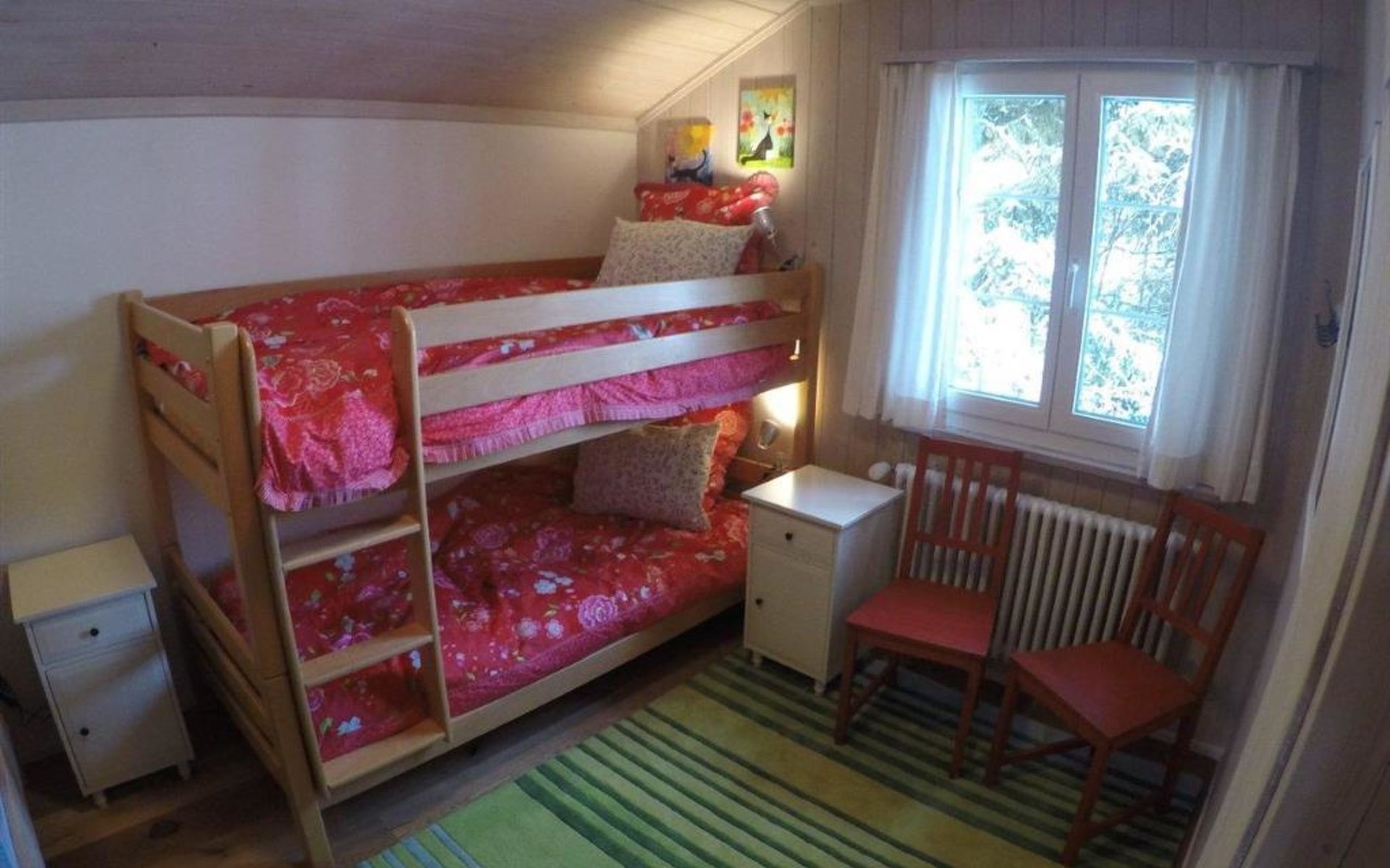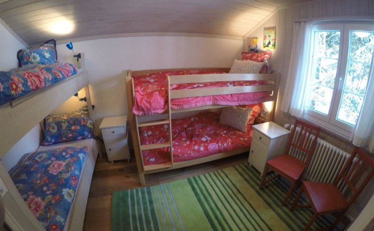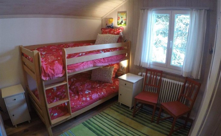 Important note: Only bookable for max. 4 adults and up to 4 children (max. 8 person). Ground floor: heated store room for skis, wardrobe, shower. 1st floor: Living-/dining room with chimney (without wood), satellite TV, modern kitchen among other things furnished with induction stove, microwave oven, coffee machine with capsules (Delizio), fondue-raclette-set. 1 bathroom with bathtub/toilet, individually adjustable floor heating. 2nd floor: 2 bedrooms with double bed (180x200cm) and a piano, 1 bedroom with 2 bunk beds only suitable for kids (1x 90x180cm, 1x 90x200cm). 1 separate toilet. Baby cot (80x140cm, excl. bed linen) available. WiFi.