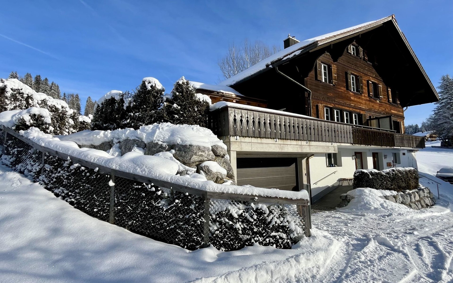 INLCUSIVE: Electricity, heating, hot water, firewood, double garage, WiFi, capsules for the Delizio coffee machine (initial supply), bed linen, wasching machine, bathroom and kitchen towels (initial supply), final cleaning and visitor's tax. EXCLUSIVE: Baby cot (80x140cm, excl. bed linen) à CHF 20.00 per stay. ***There is a deposit fee of CHF/EUR 200.00 to pay directly in cash to the keyholder at the arrival*** ***Pets not allowed***.