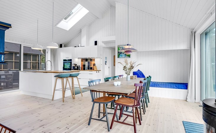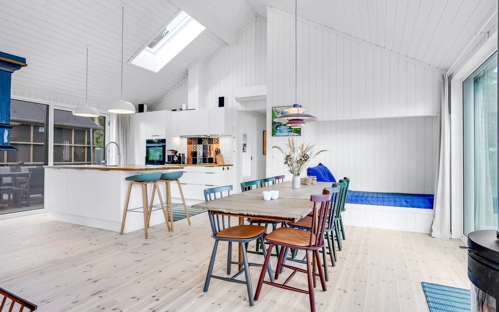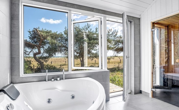 Eengezinswoning, bouwjaar 2024. 50 m van zee. Voor alleengebruik: wild terrein 1.203 m2. Buitendouche, barbecue. In het huis: sauna, trampoline, wasmachine, droger. Parkeerplaats bij het huis. Levensmiddelenwinkel 3 km. Golfterrein 6 km. De eigenaar accepteert geen jeugdgroepen.